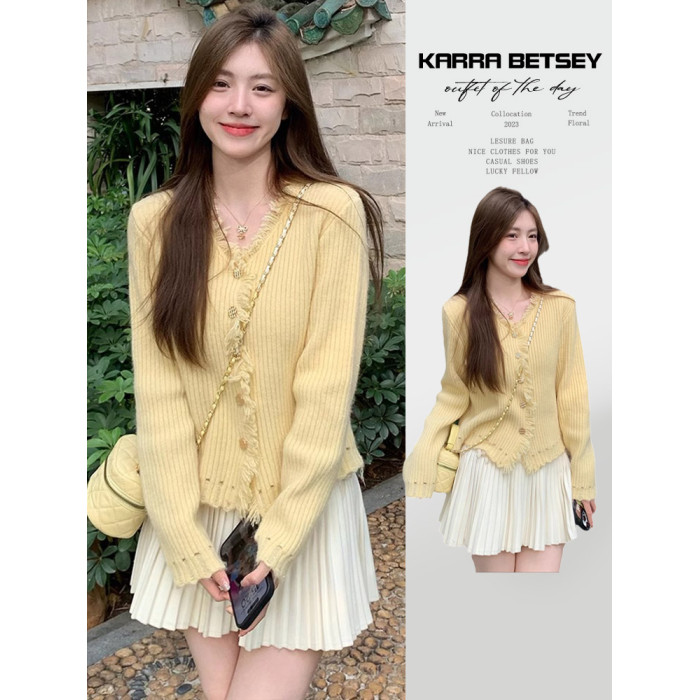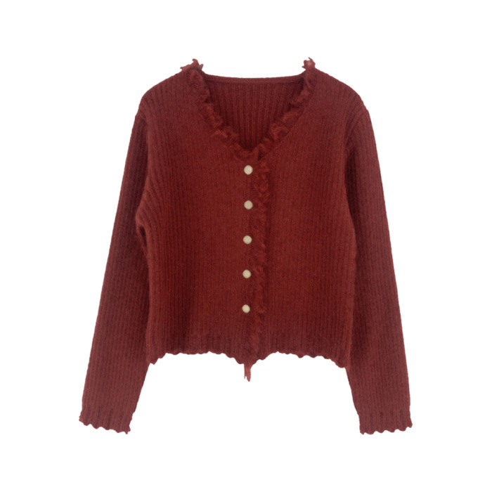 2025秋冬裝新款小個子香風短款v領毛衣外套女設計感針織內搭上衣