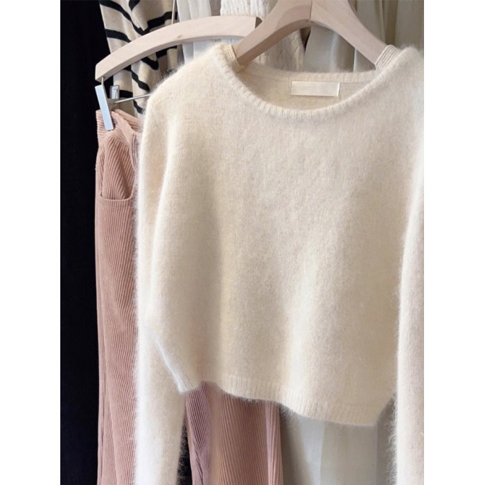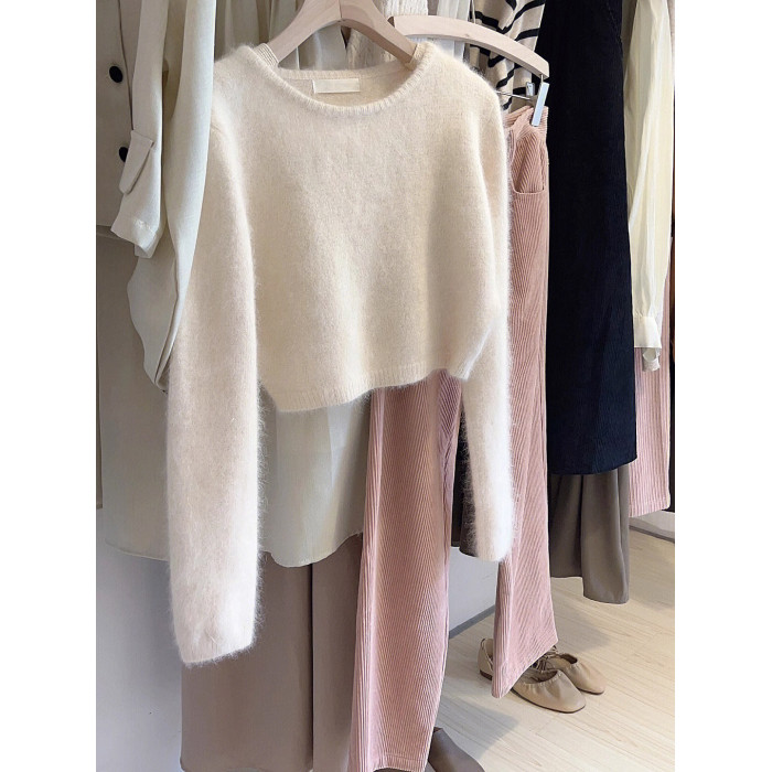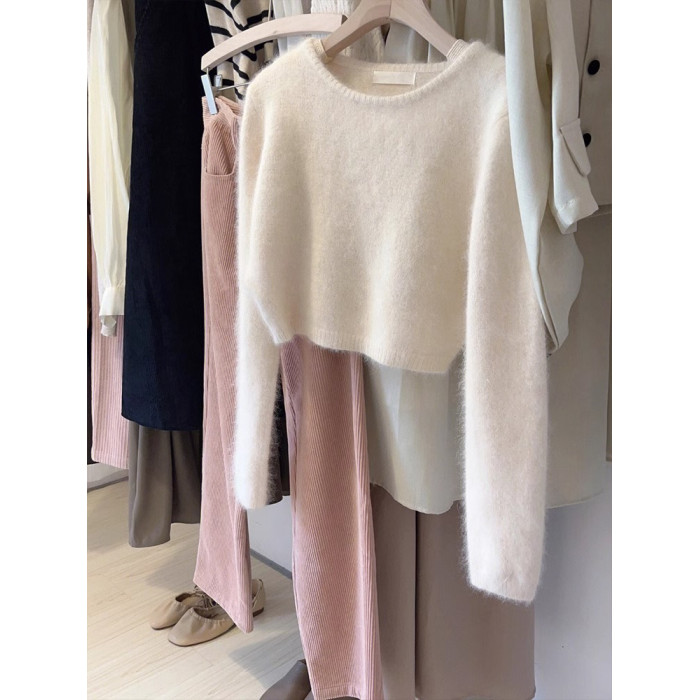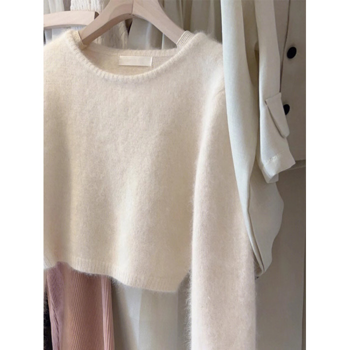 白色軟糯浣熊絨短款毛衣女秋冬溫柔奶fufu慵懶針織打底衫內搭上衣