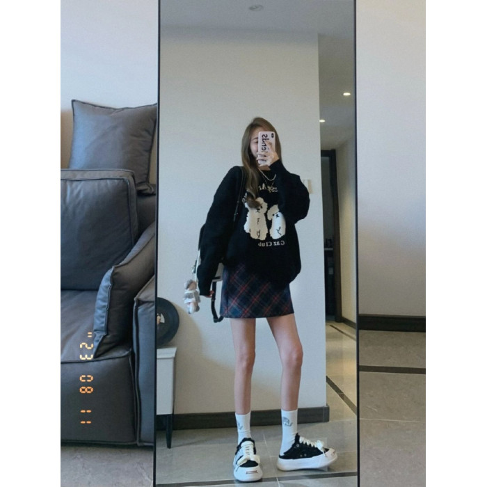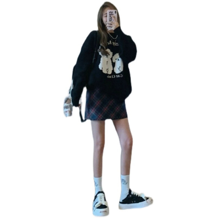 2025秋冬新款韓版慵懶風可愛卡通小狗針織衫女圓領重磅毛衣國潮牌