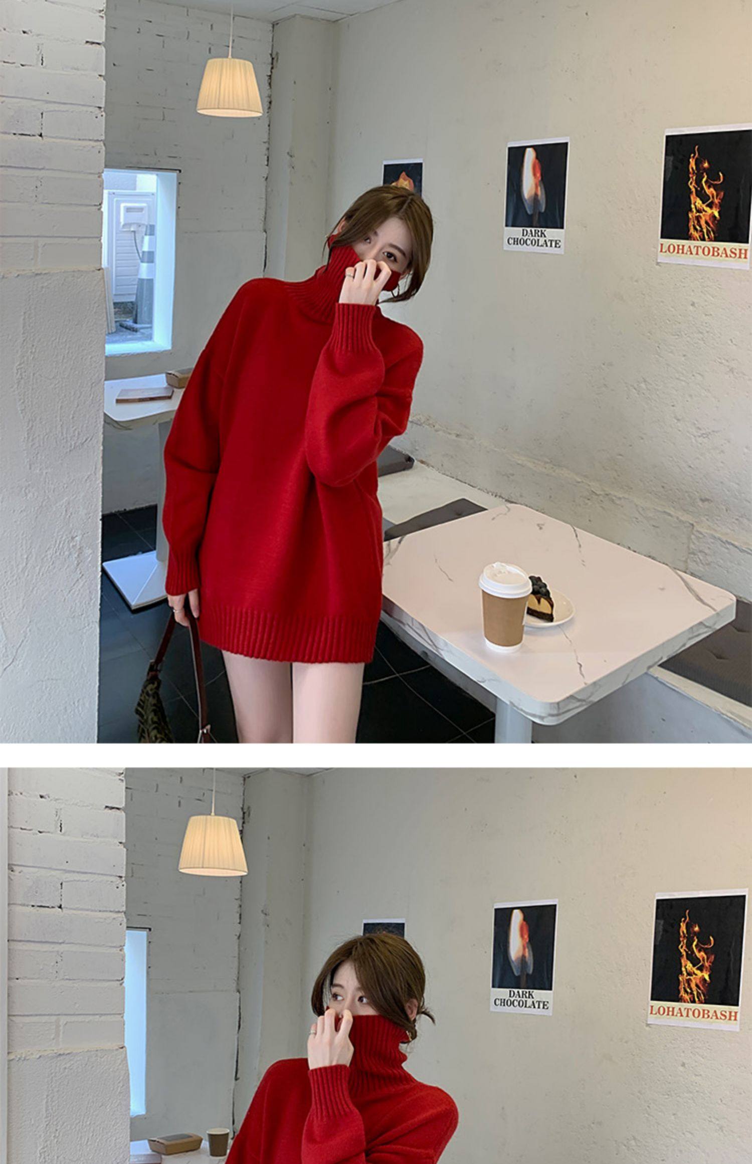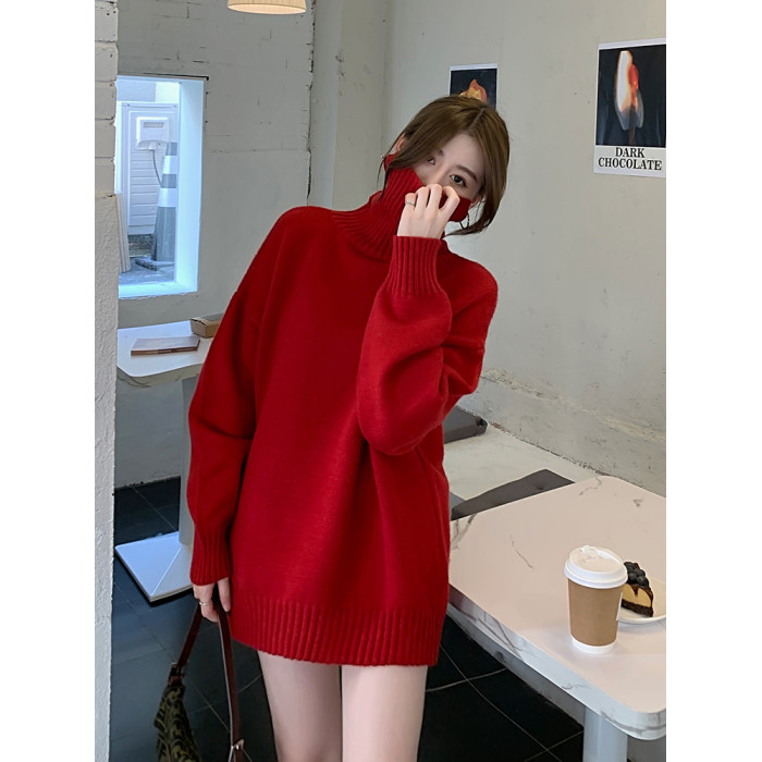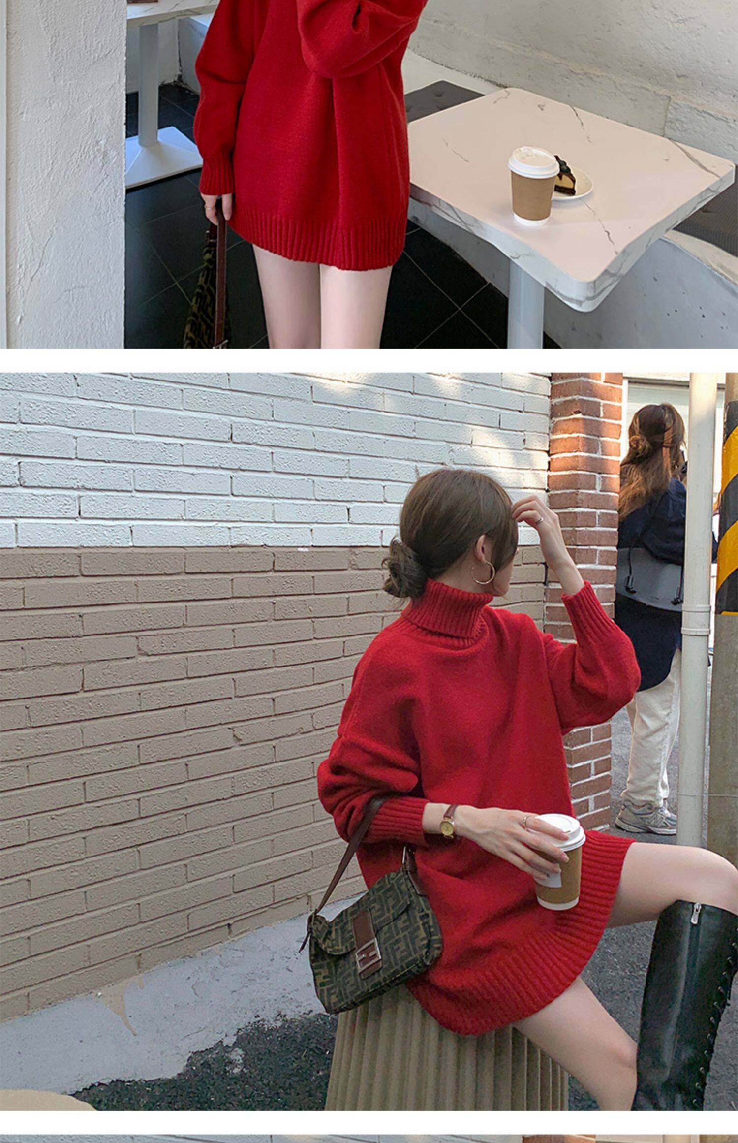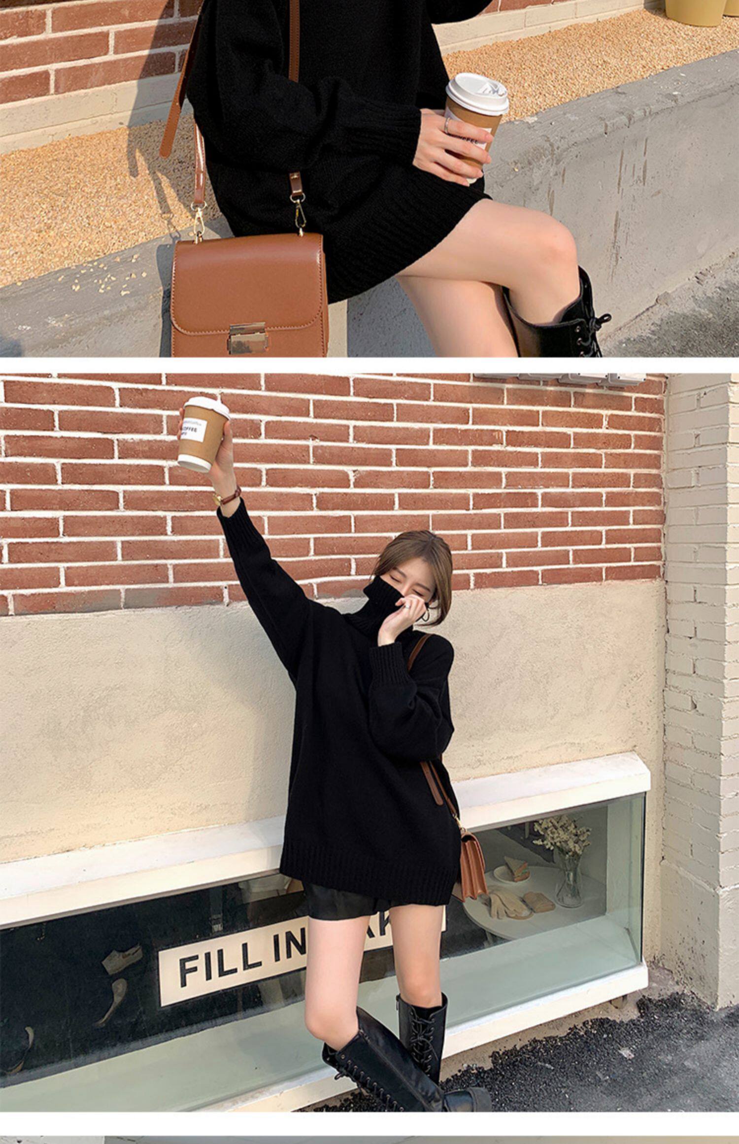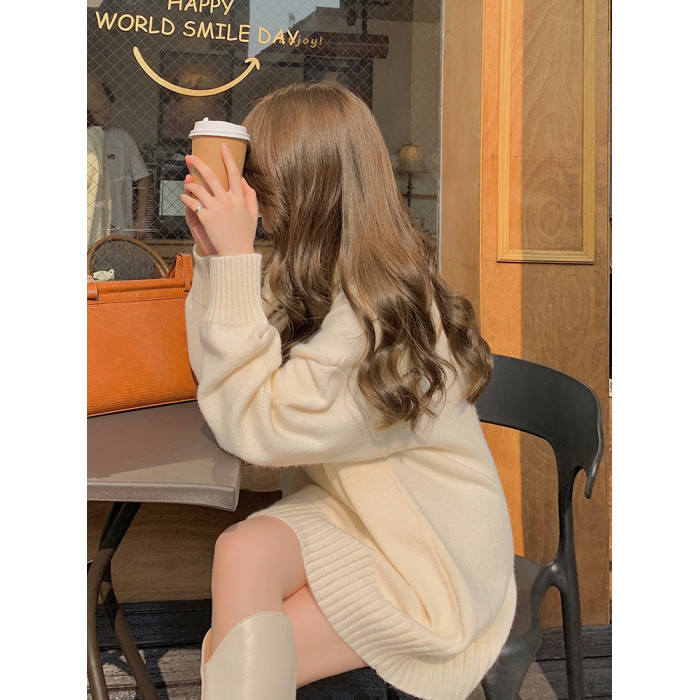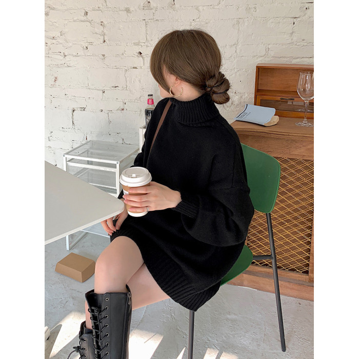 中長款高領毛衣連衣裙女白色秋冬寬松慵懶軟糯打底針織衫內搭加厚