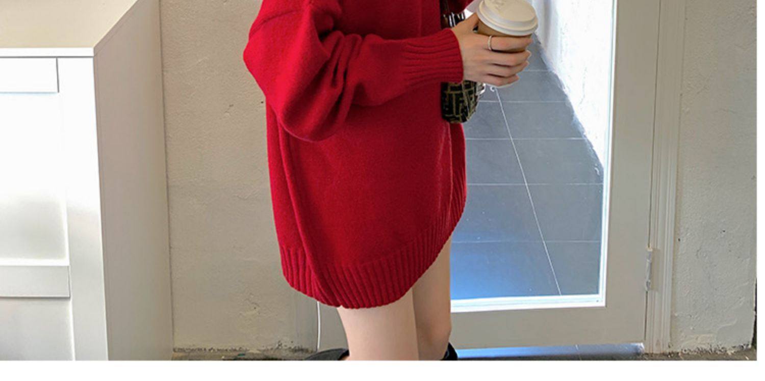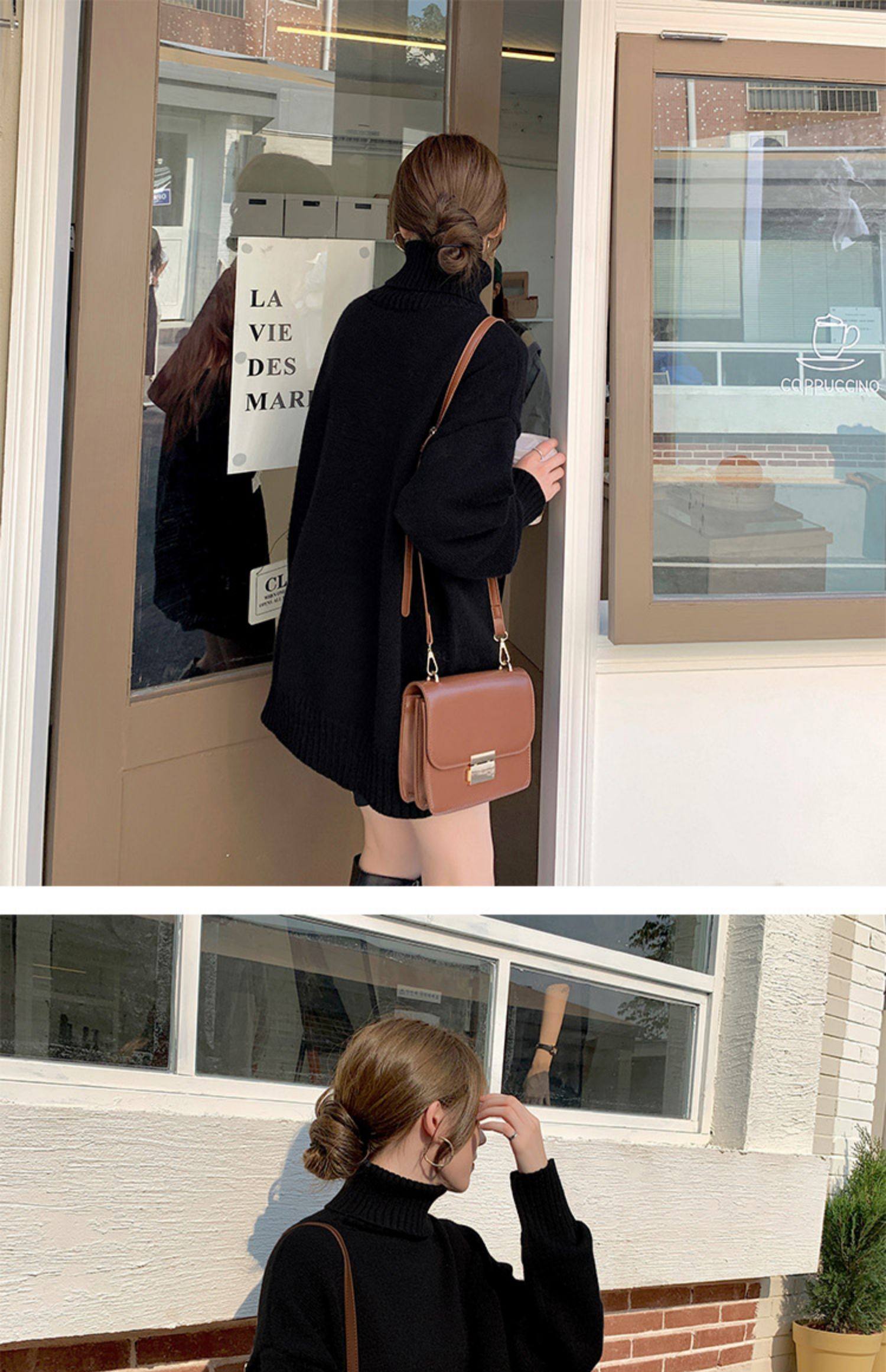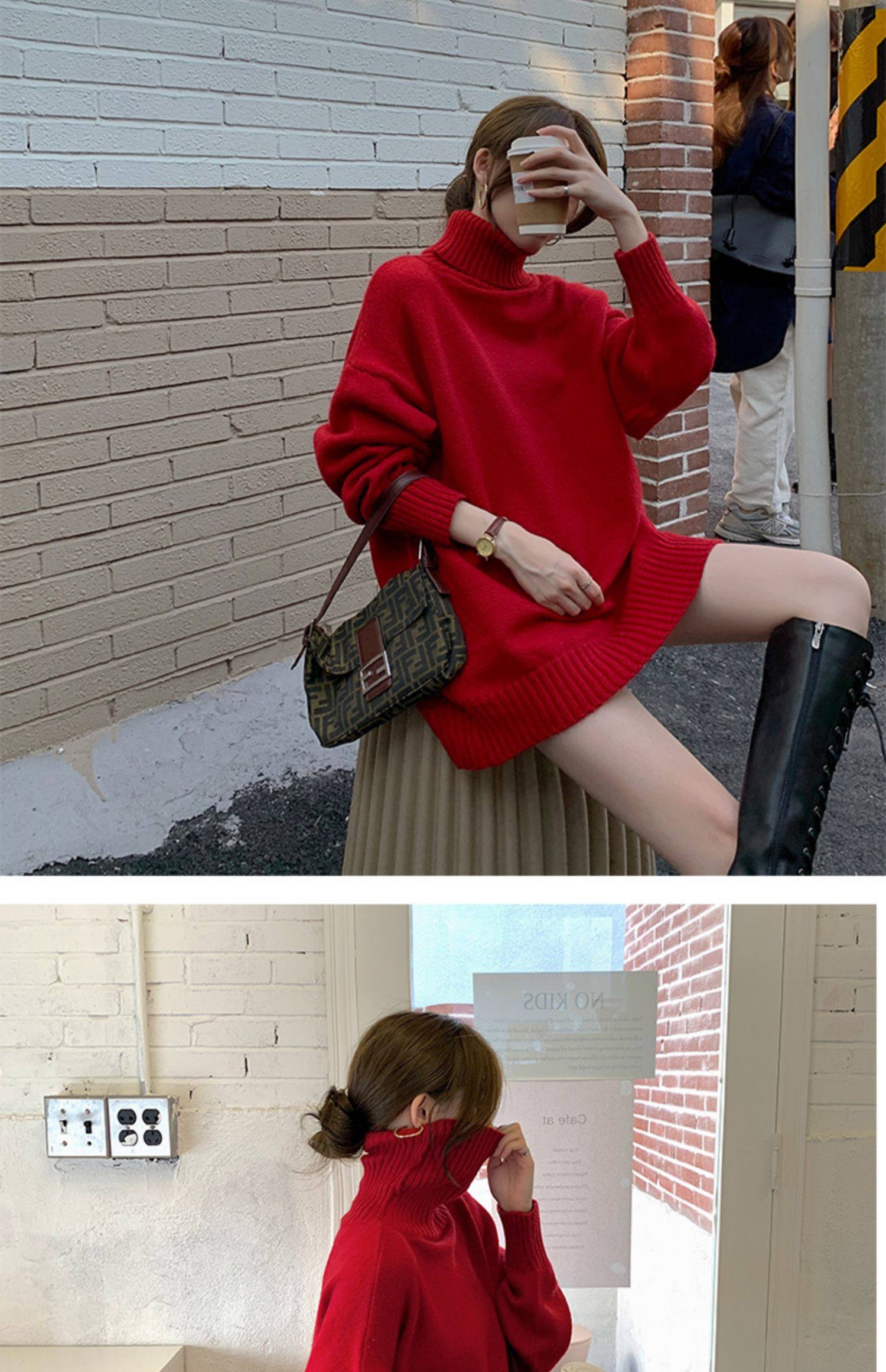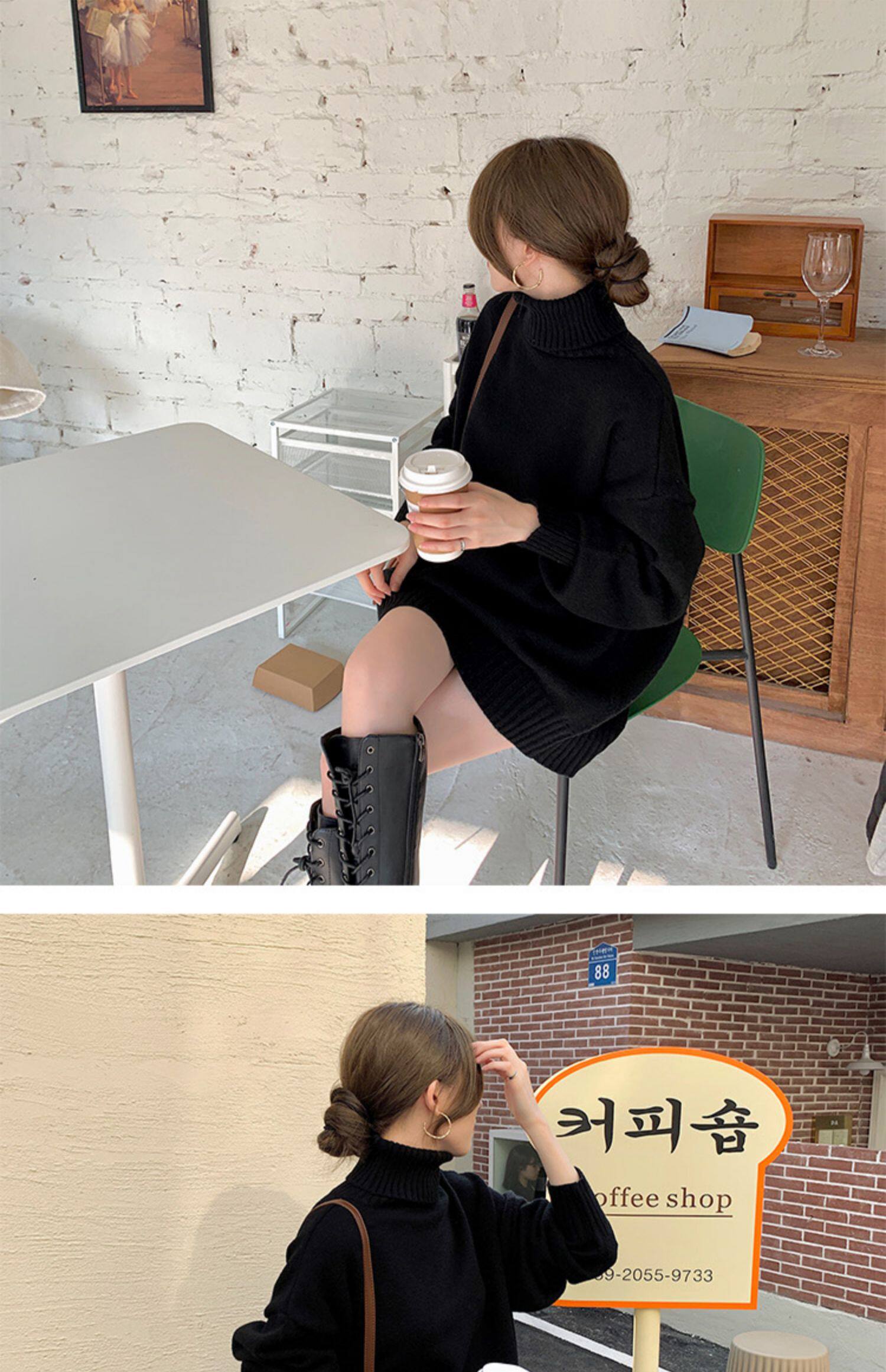 中長款高領毛衣連衣裙女白色秋冬寬松慵懶軟糯打底針織衫內搭加厚