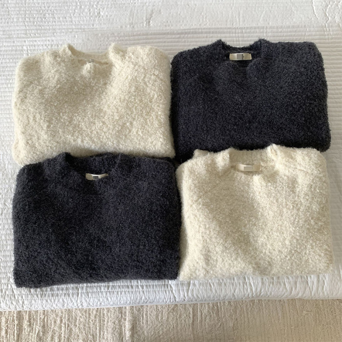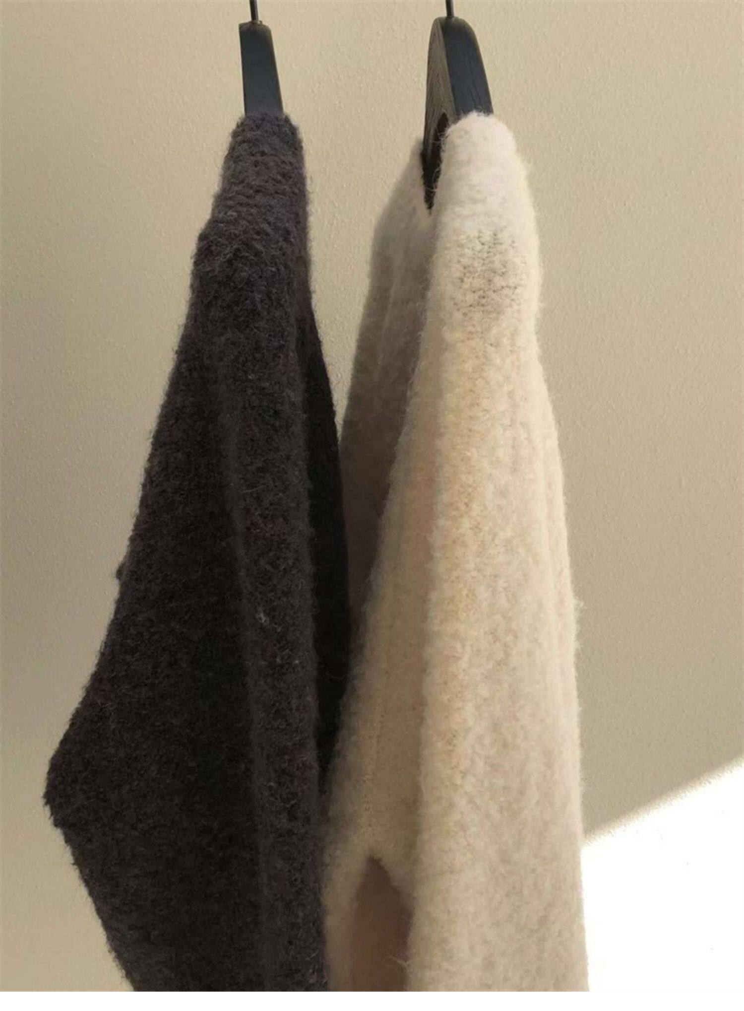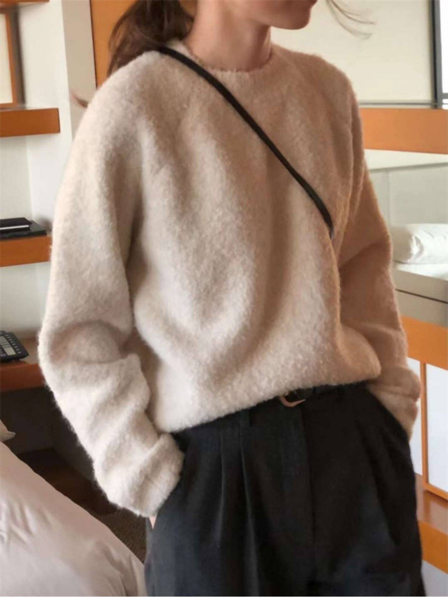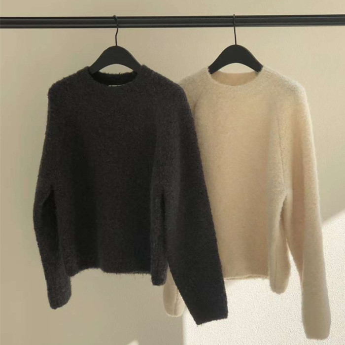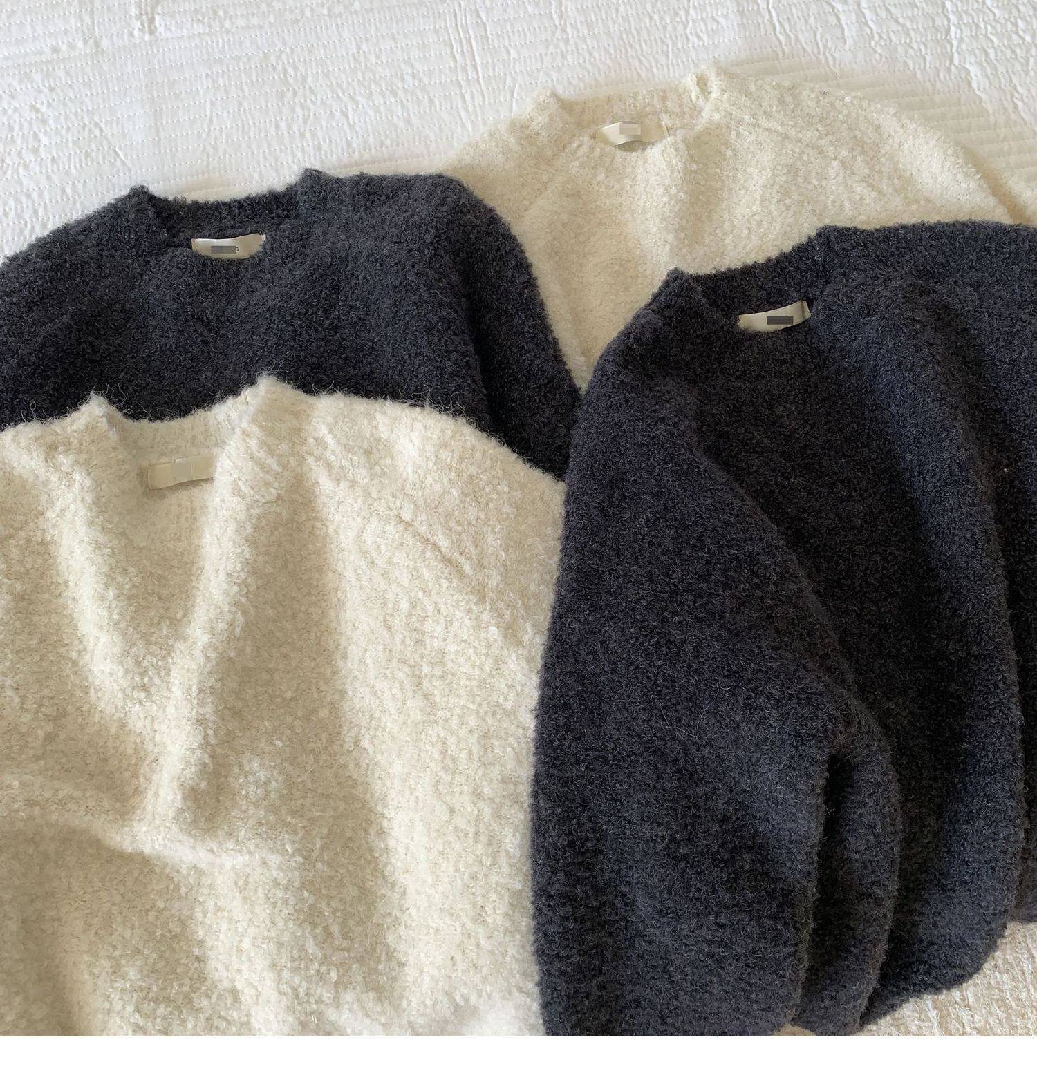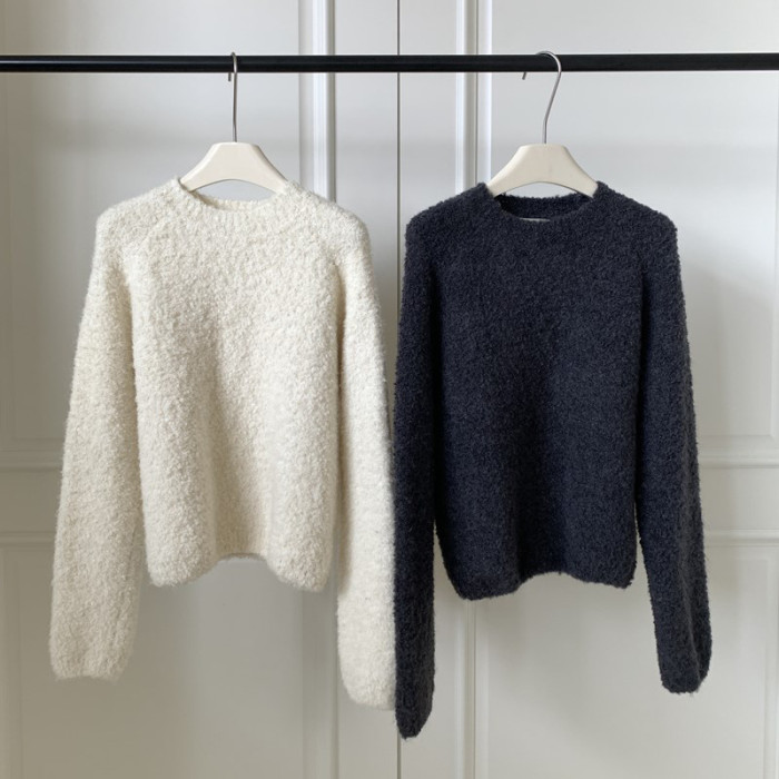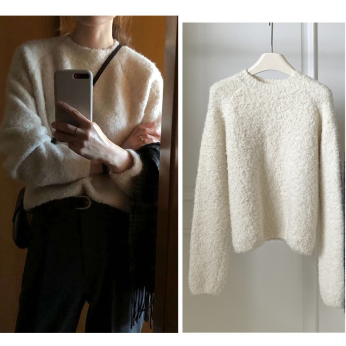 珍珠絨白色毛衣女秋冬插肩袖韓版冷淡系高級感上衣復古打底針織衫