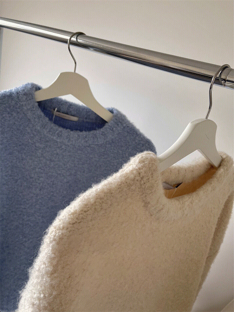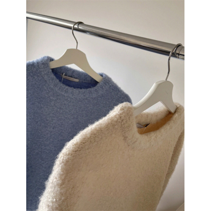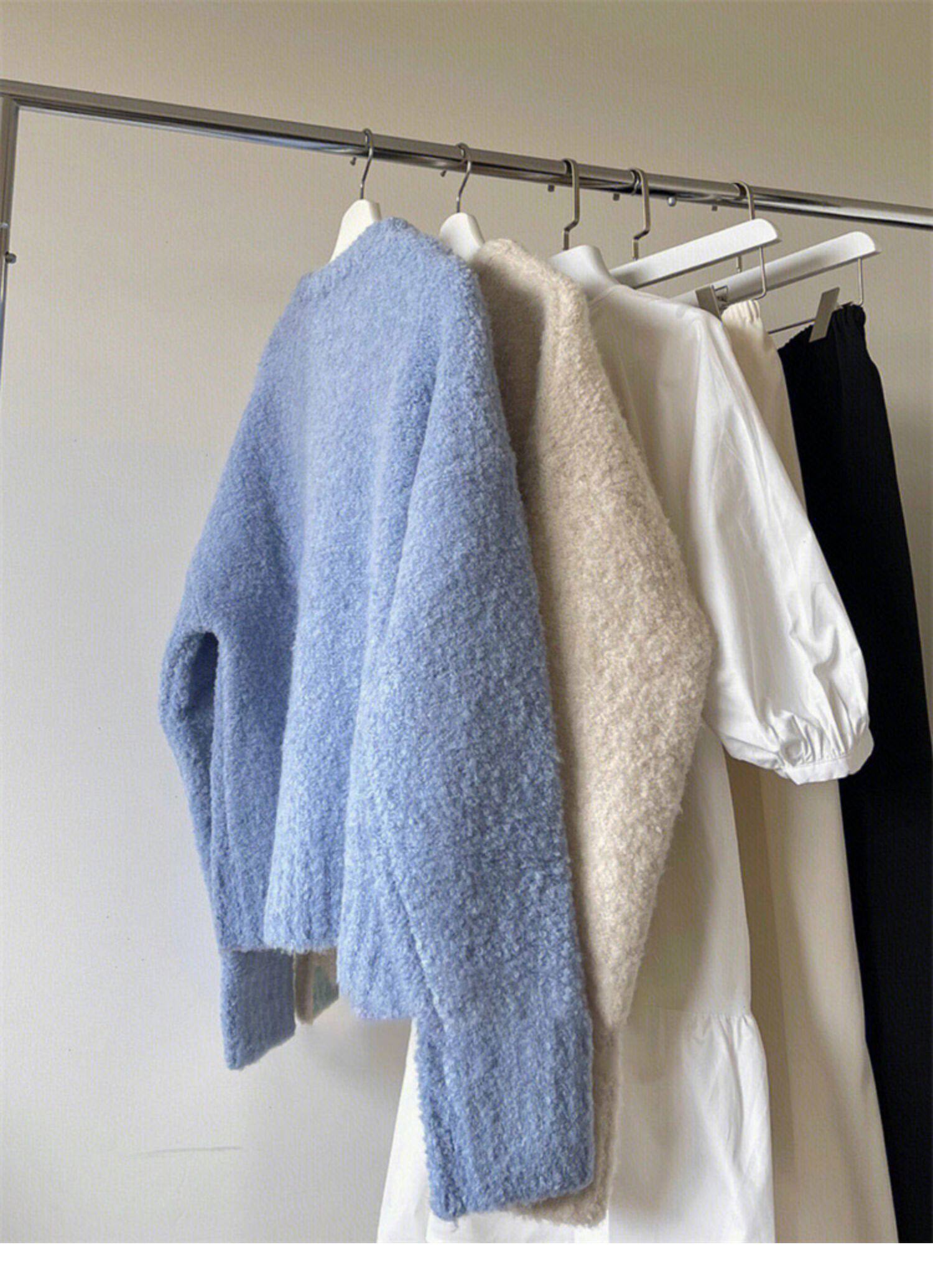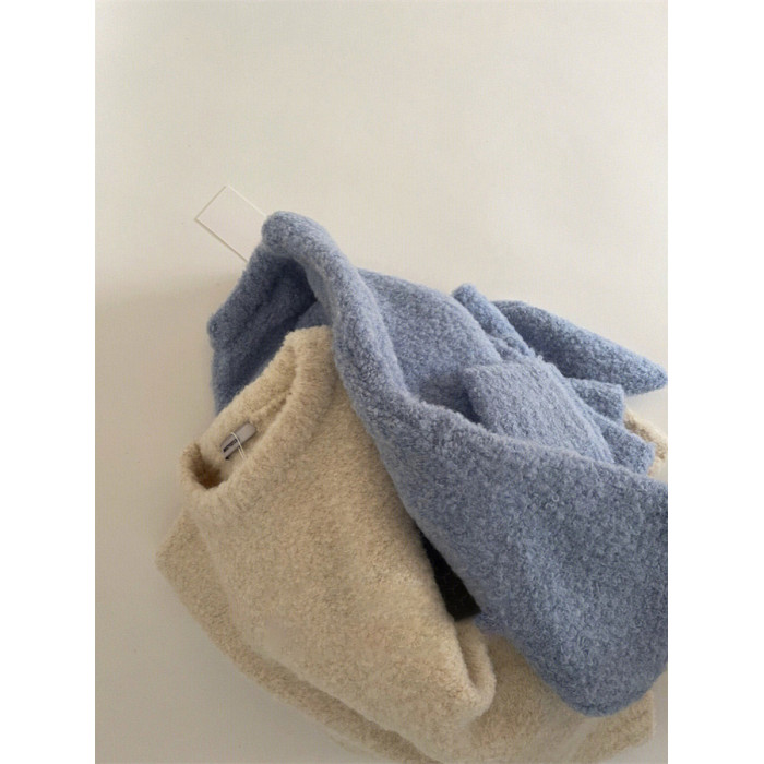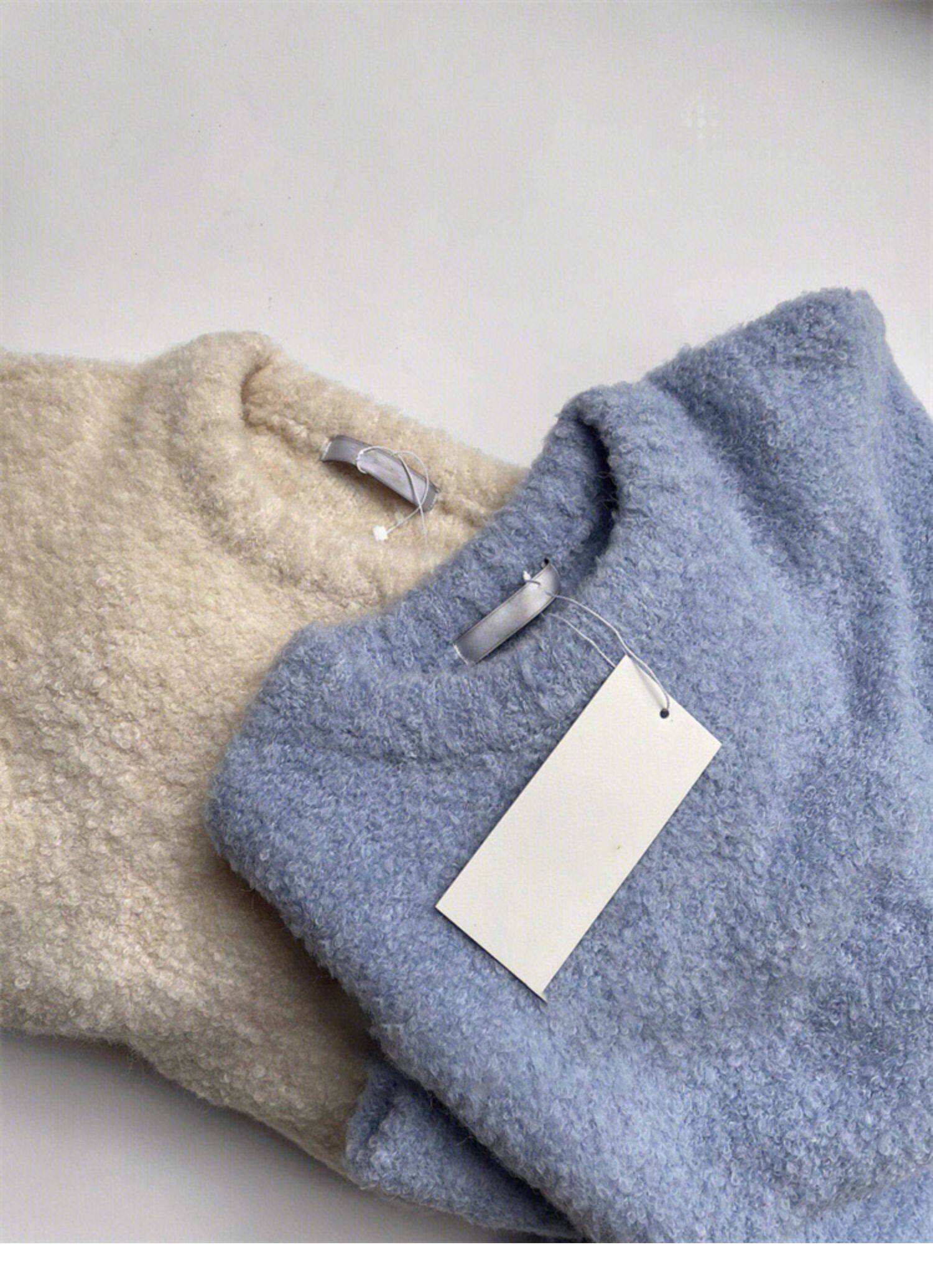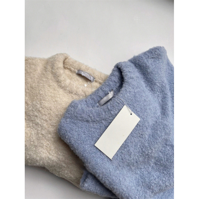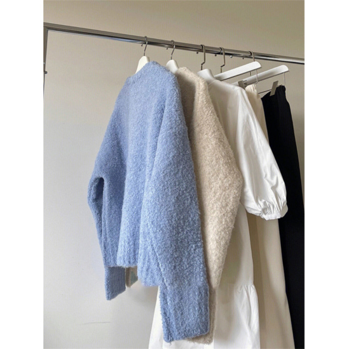 羊駝絨奶藍色毛衣女加厚打底珍珠絨針織衫寬松慵懶內搭高級感上衣