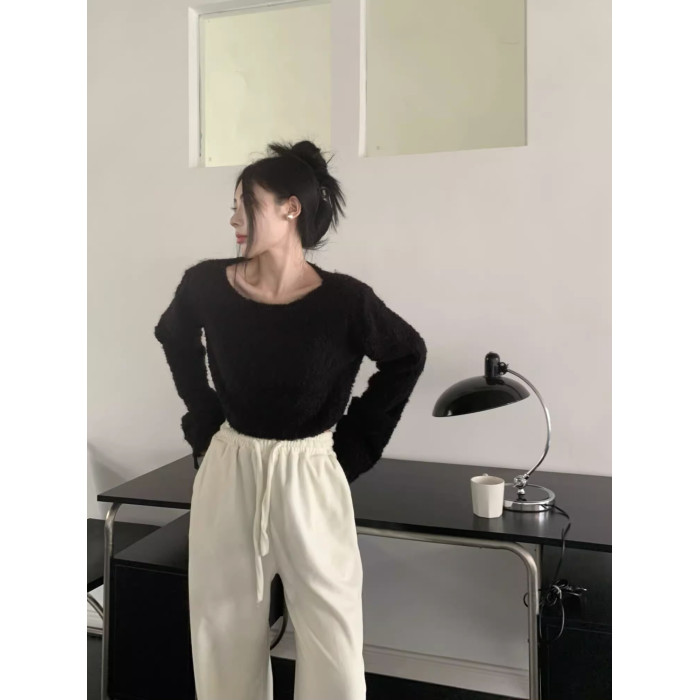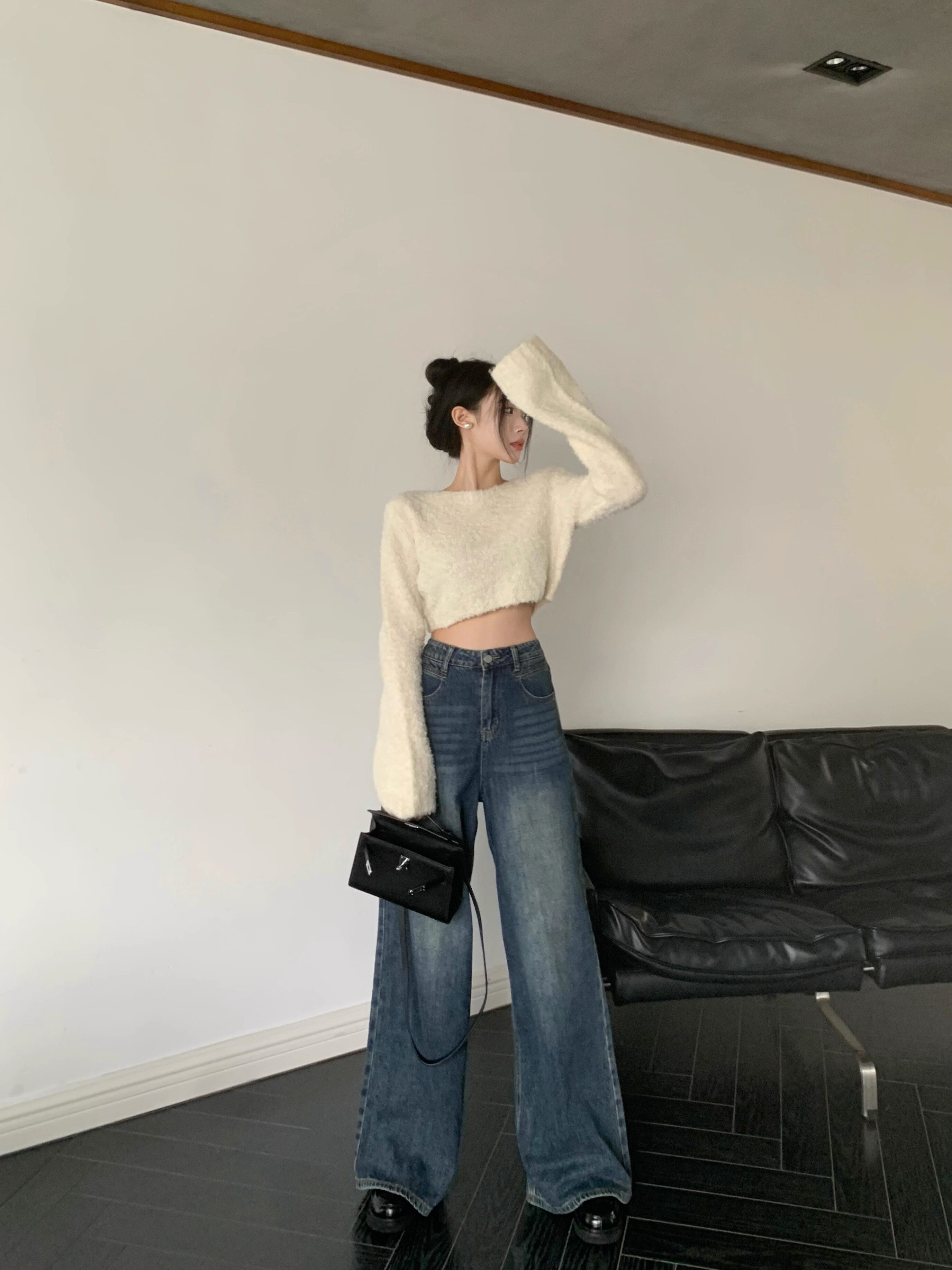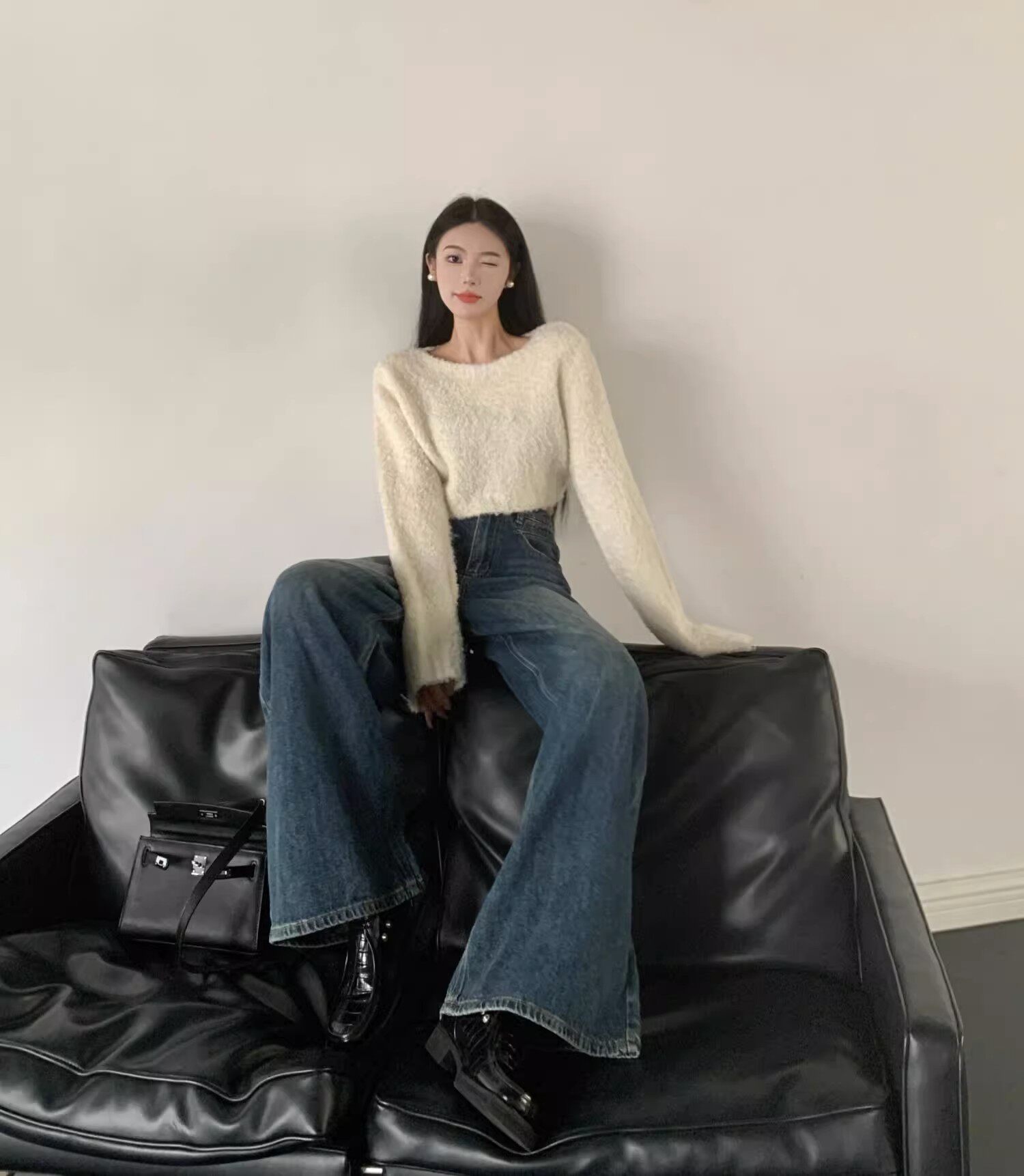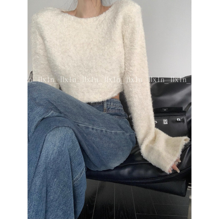 圈圈紗毛衣女套頭短款秋冬溫柔風毛絨絨高級感小衆別致針織衫上衣