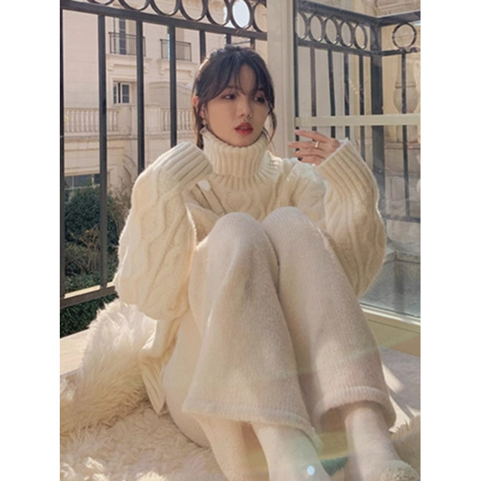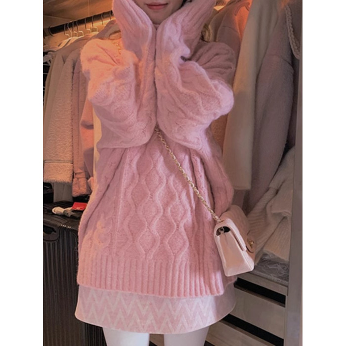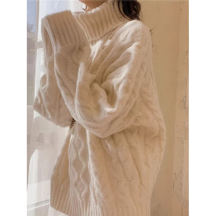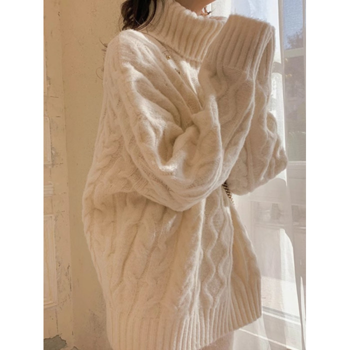 慵懶風復古高領毛衣女秋冬2025年新款寬松外穿加厚麻花針織衫上衣
