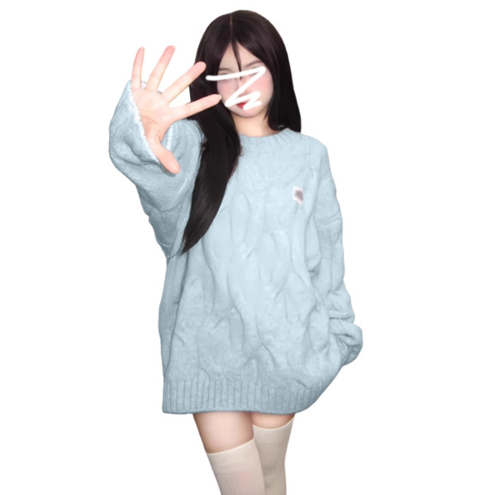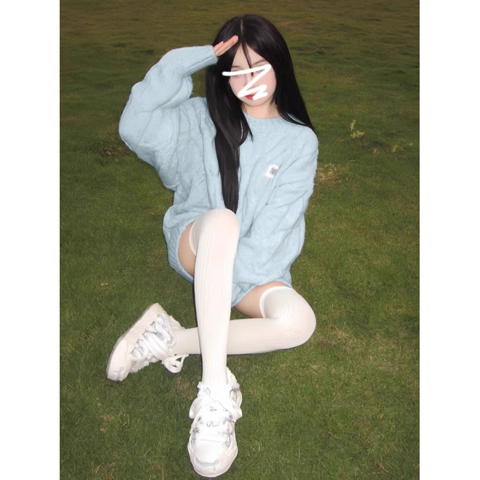 奶fufu軟糯甜美藍色毛衣女早秋季2025新款慵懶風穿搭針織衫小個子
