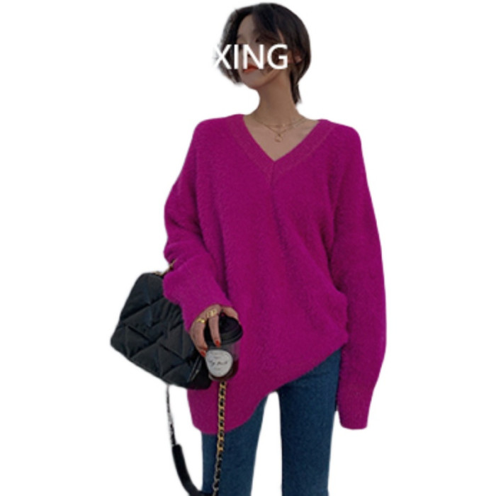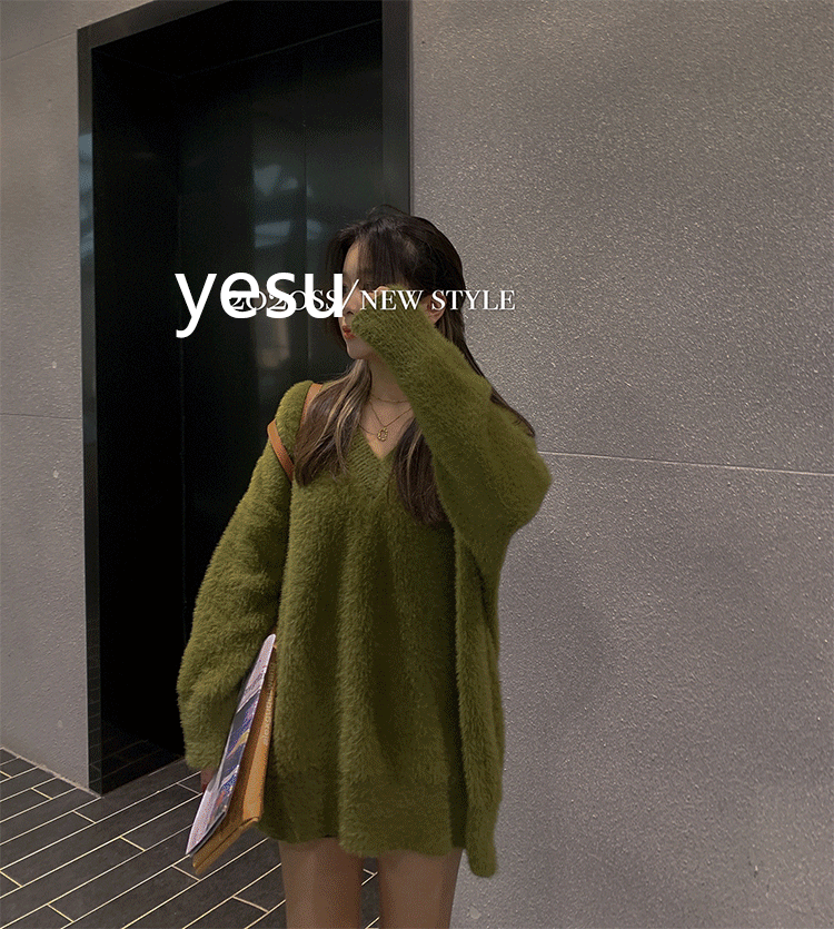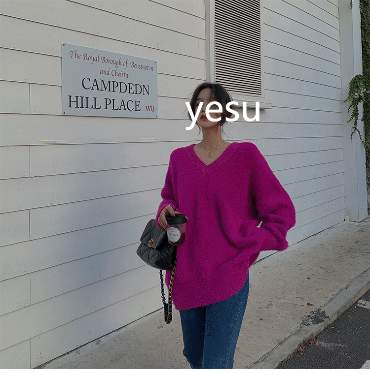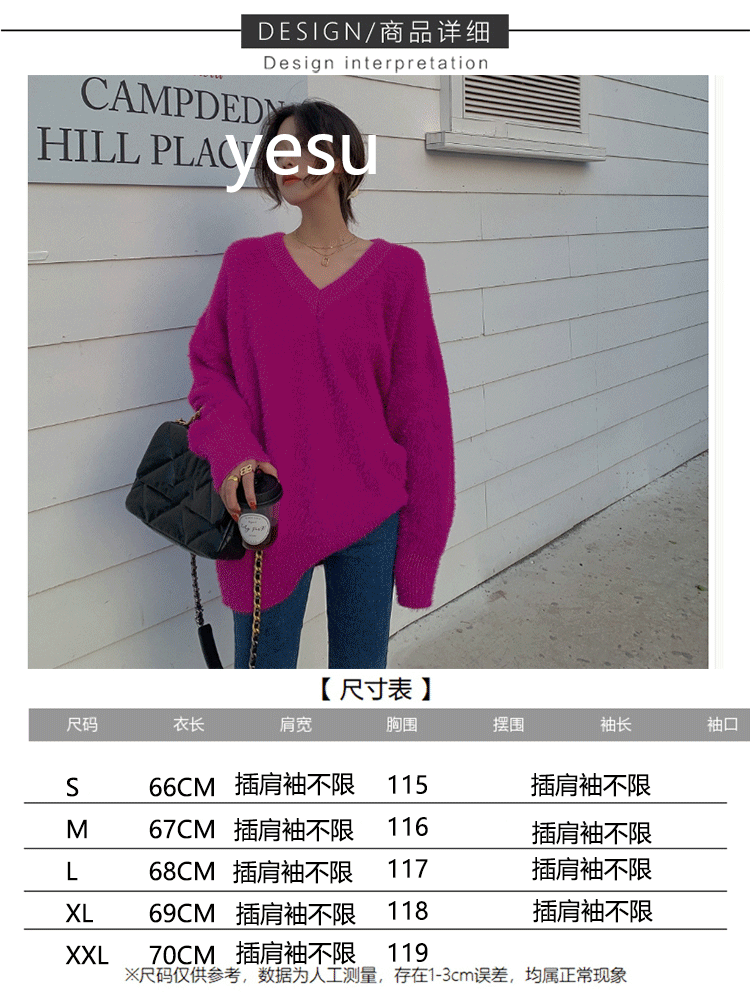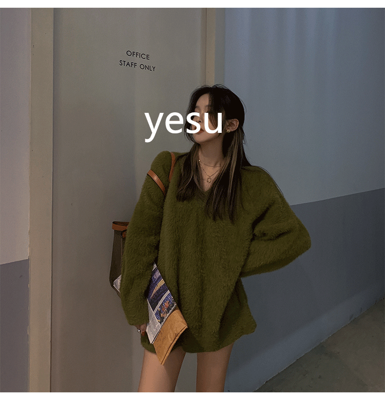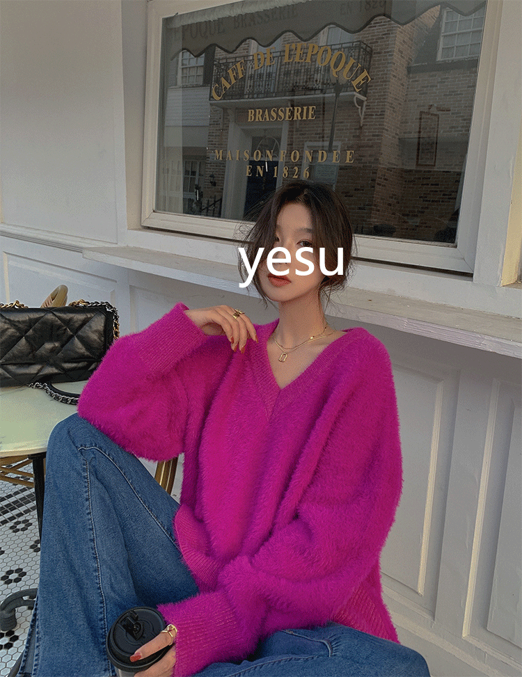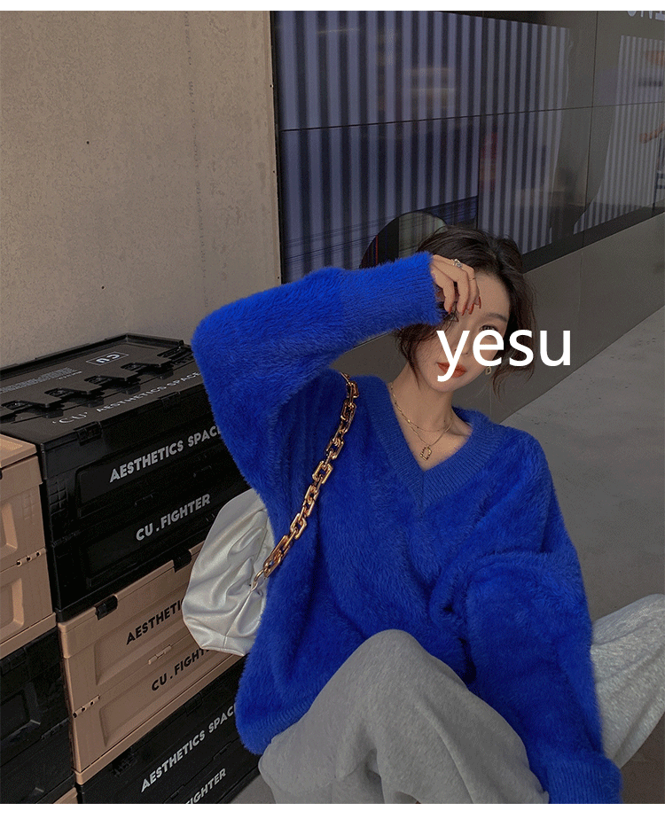 白色水貂絨v領軟糯內搭毛衣女裝2024秋冬新款外穿寬松慵懶中長款