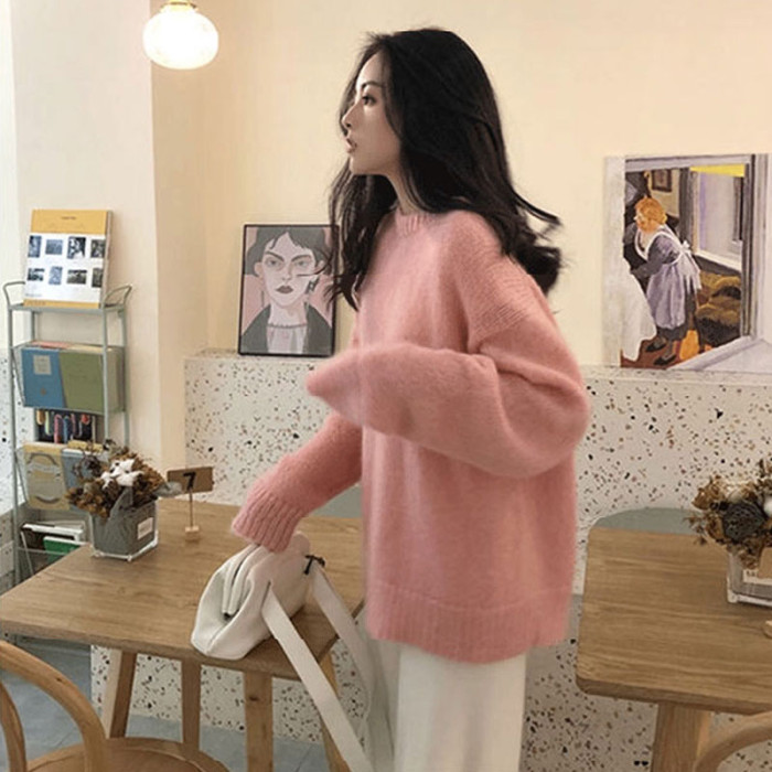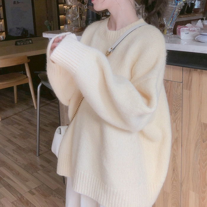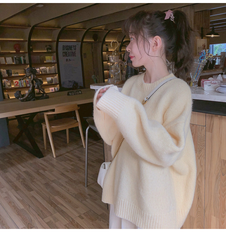 馬海毛軟糯毛衣女2025秋冬新款慵懶風寬松加厚小個子內搭針織衫