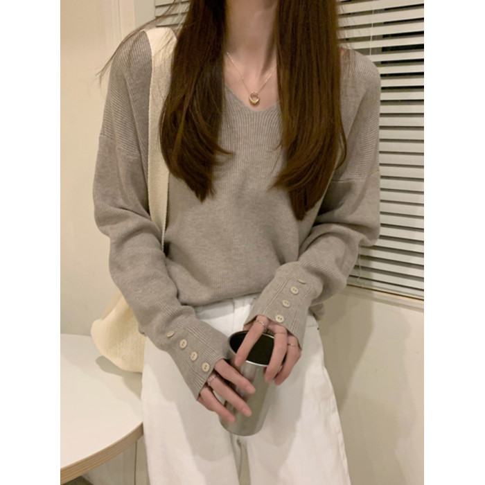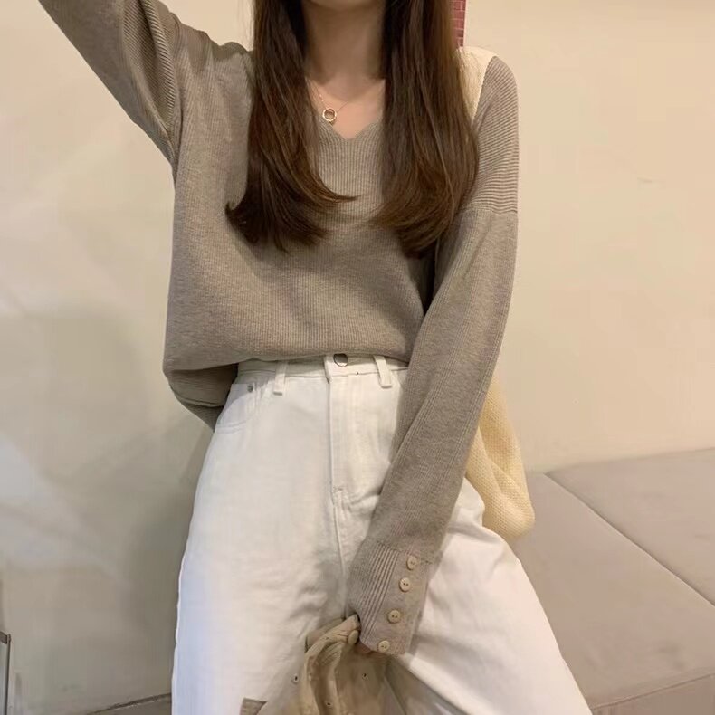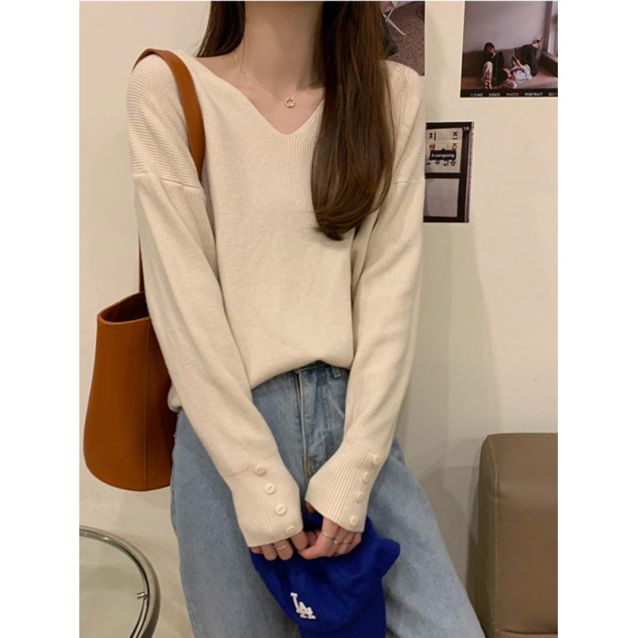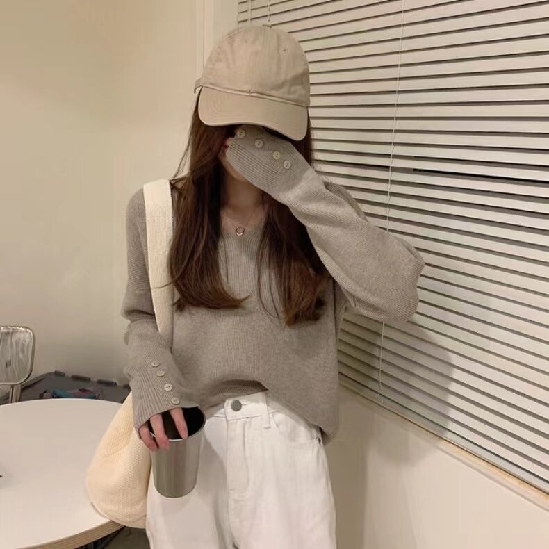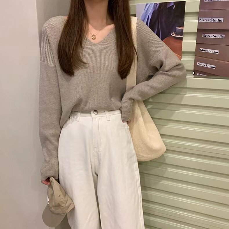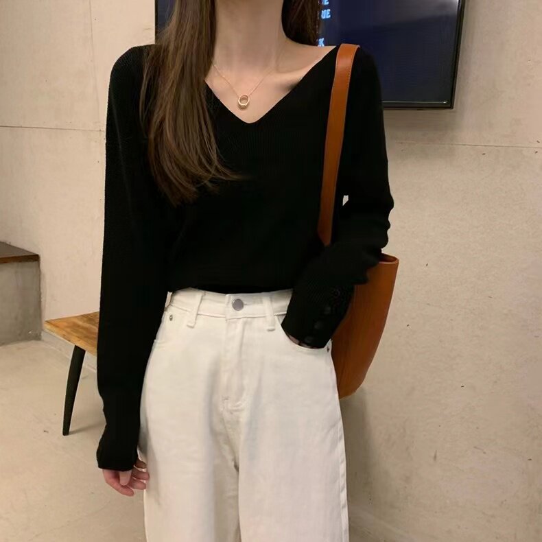 低領打底衫女內搭秋冬洋氣V領毛衣女冬季慵懶風別致辣妹針織上衣