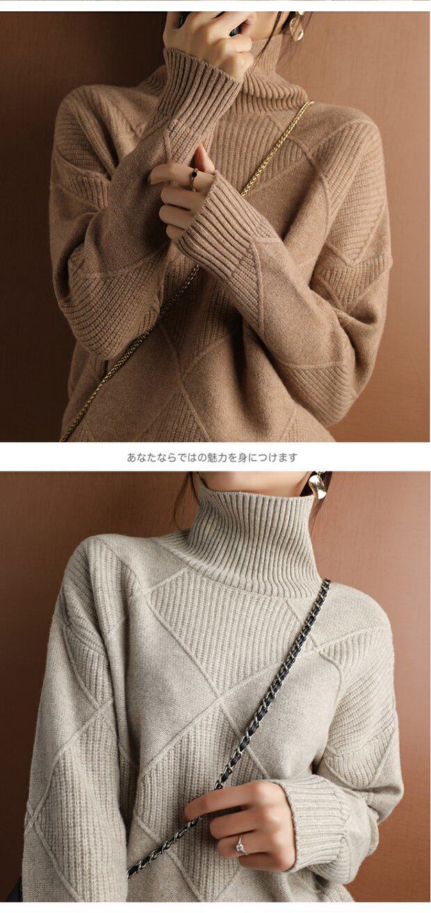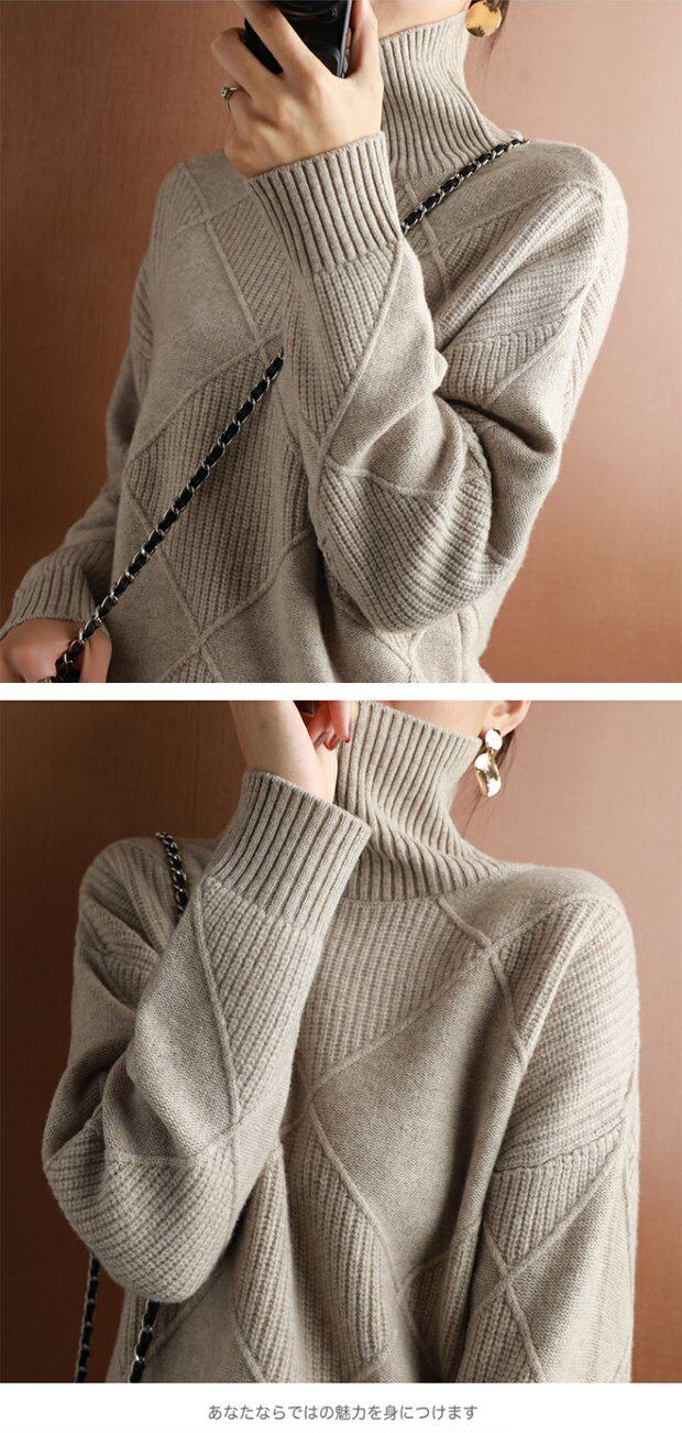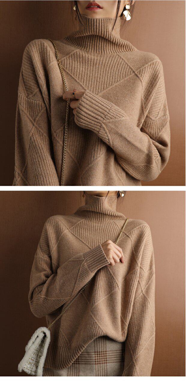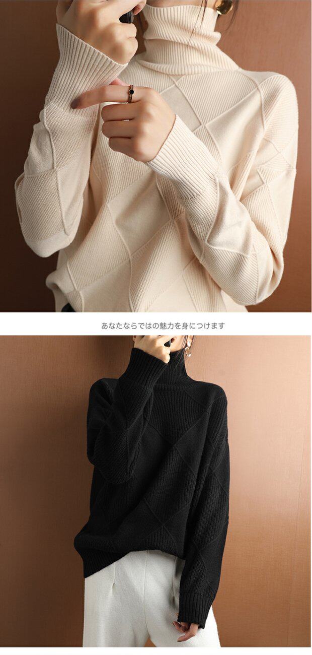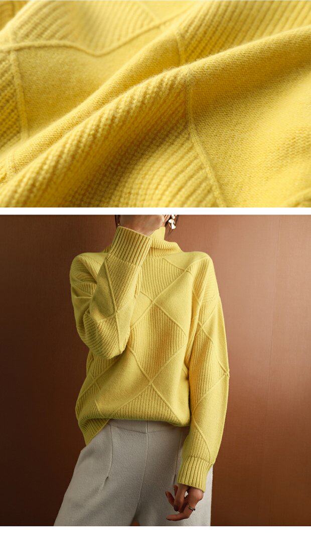秋冬款毛衣女高領套頭菱形羊毛衫百搭純色寬松慵懶打底衫套衫加厚