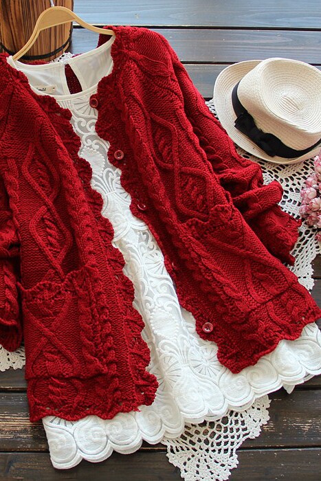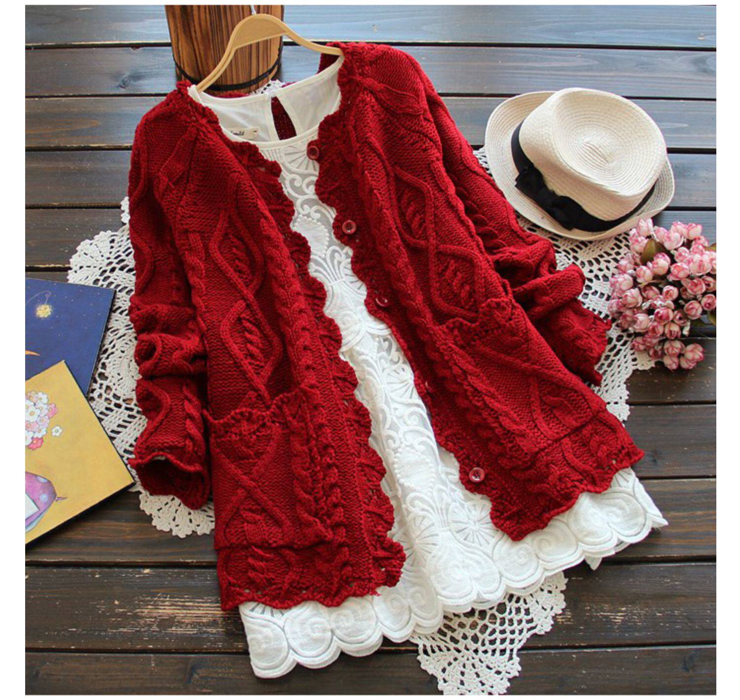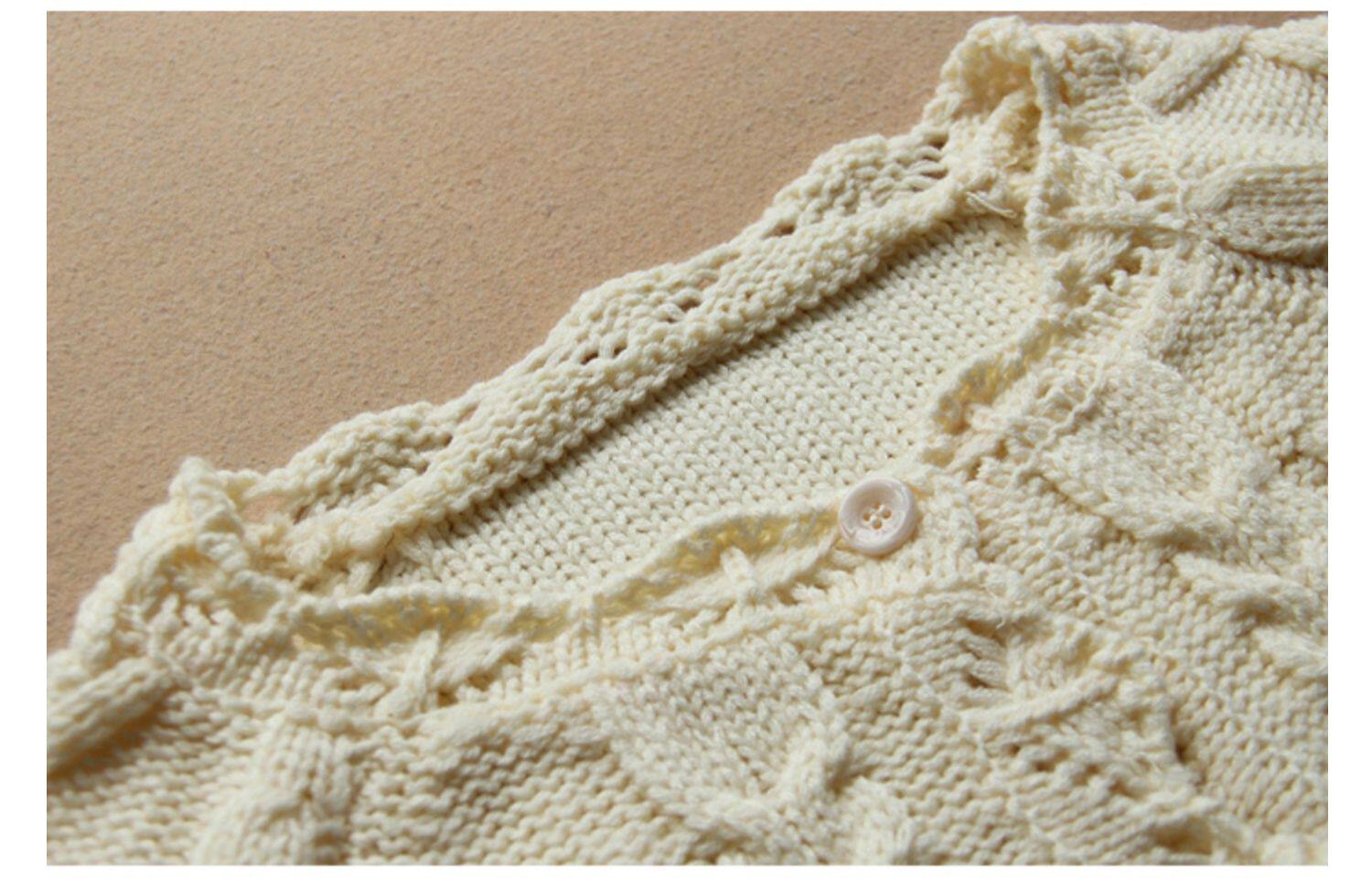 2025春裝新款日系女系鏤空麻花邊純色紐釦針織開衫短外套上衣外穿