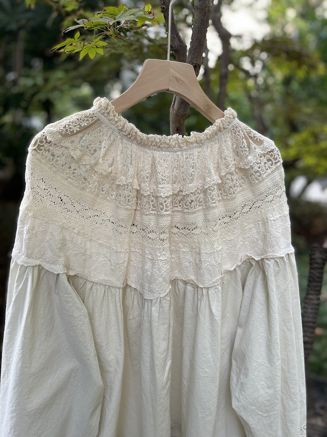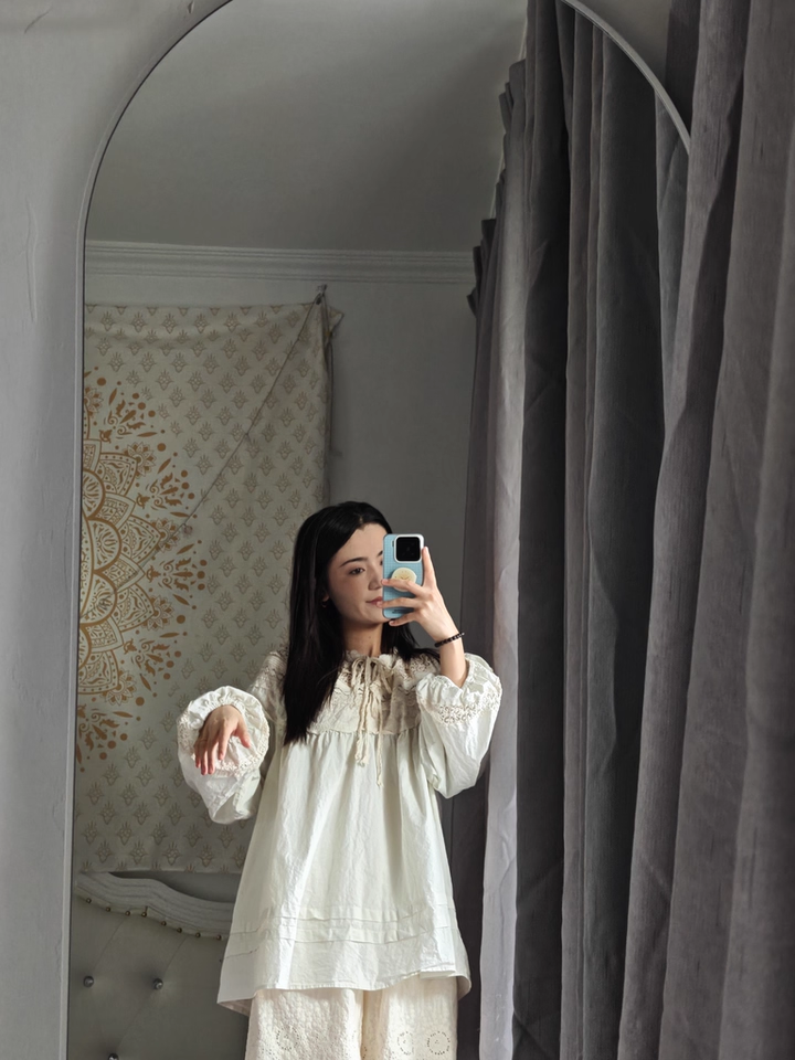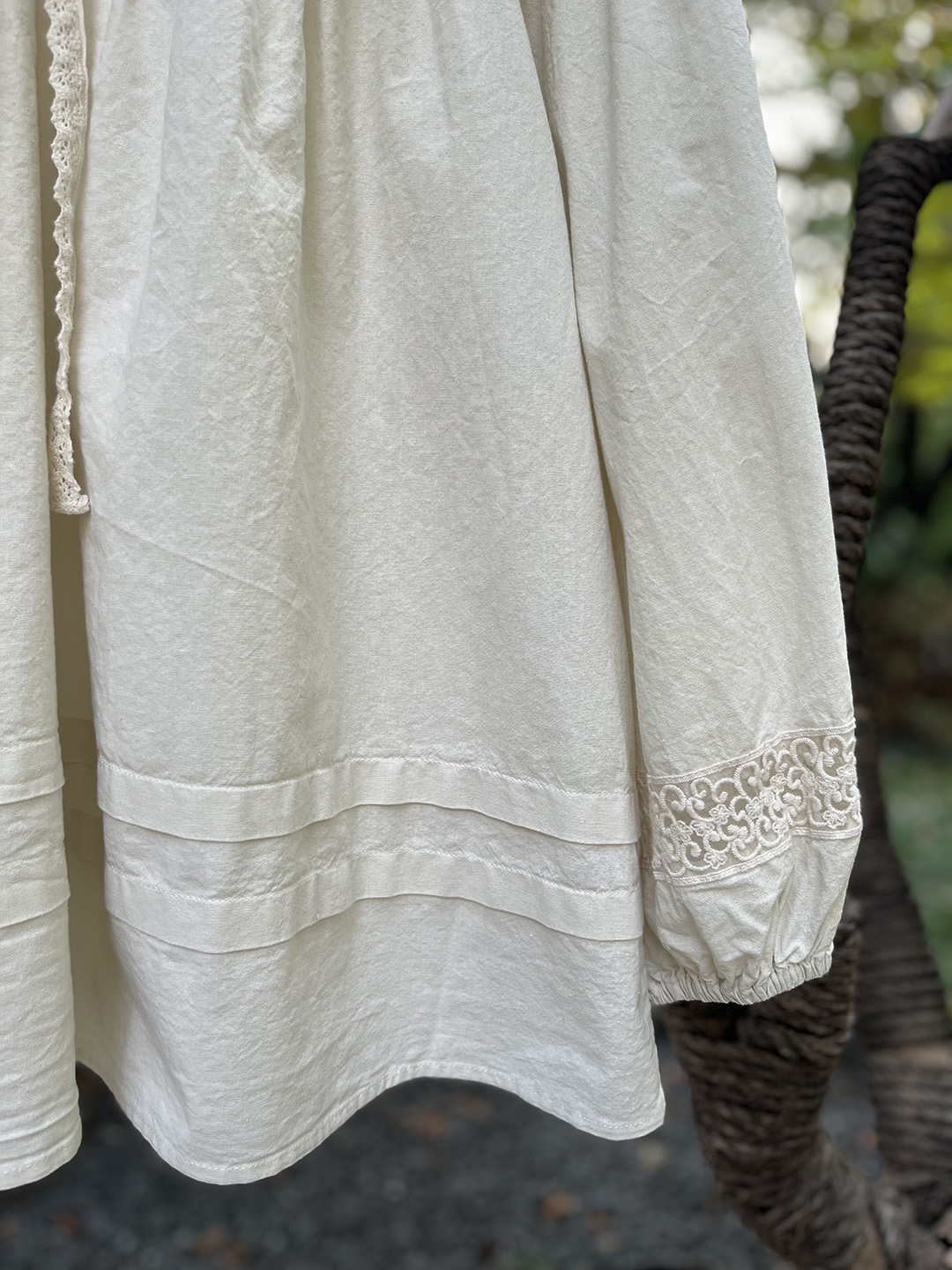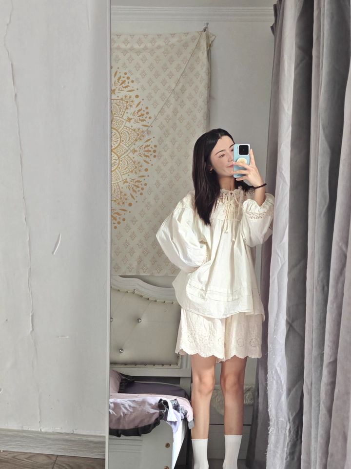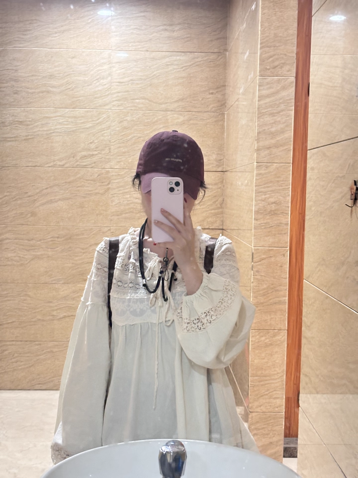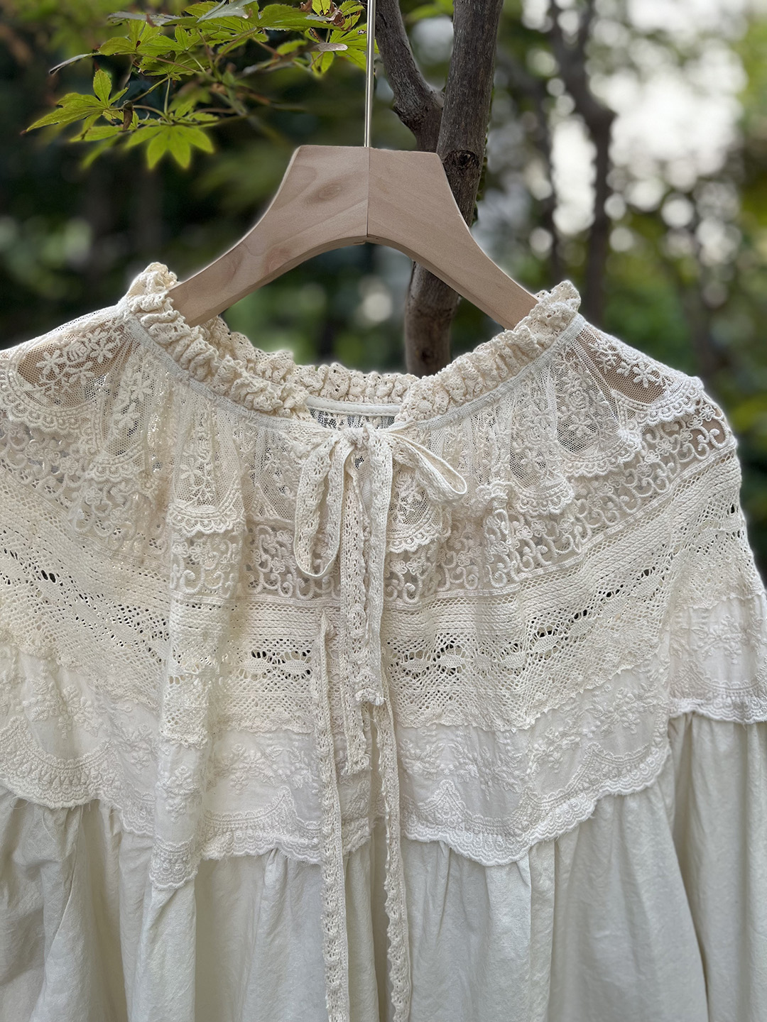 森系蕾絲花邊領口系帶拼接刺綉襯衫寬松大版甜美減齡套頭長袖上衣
