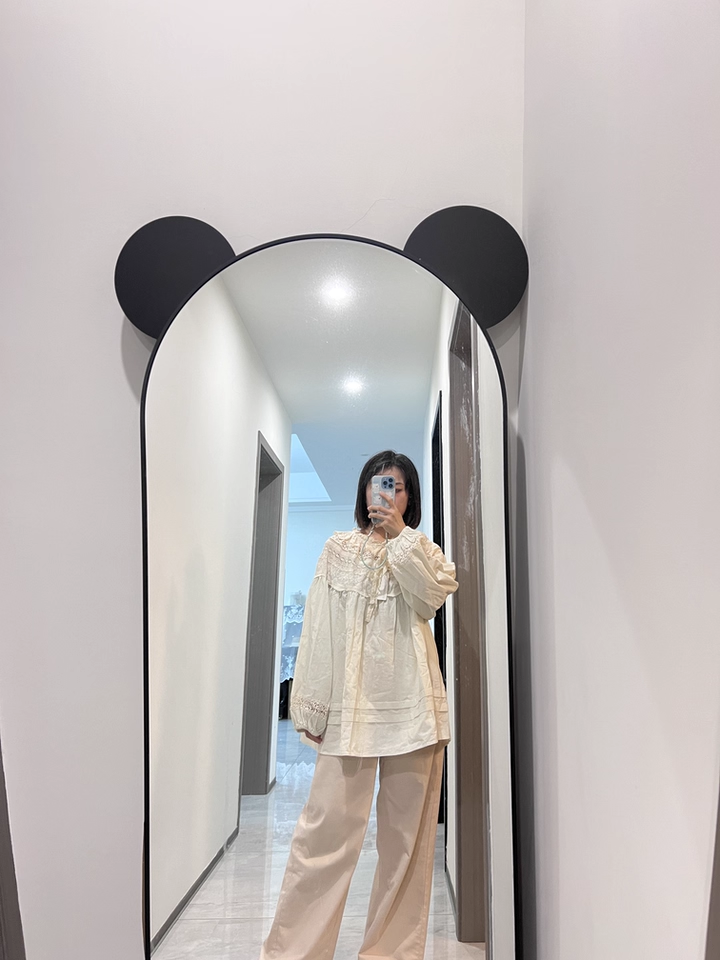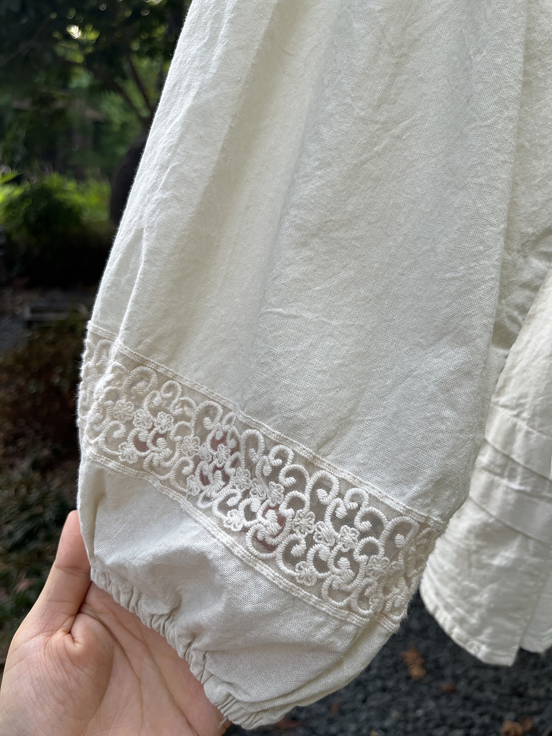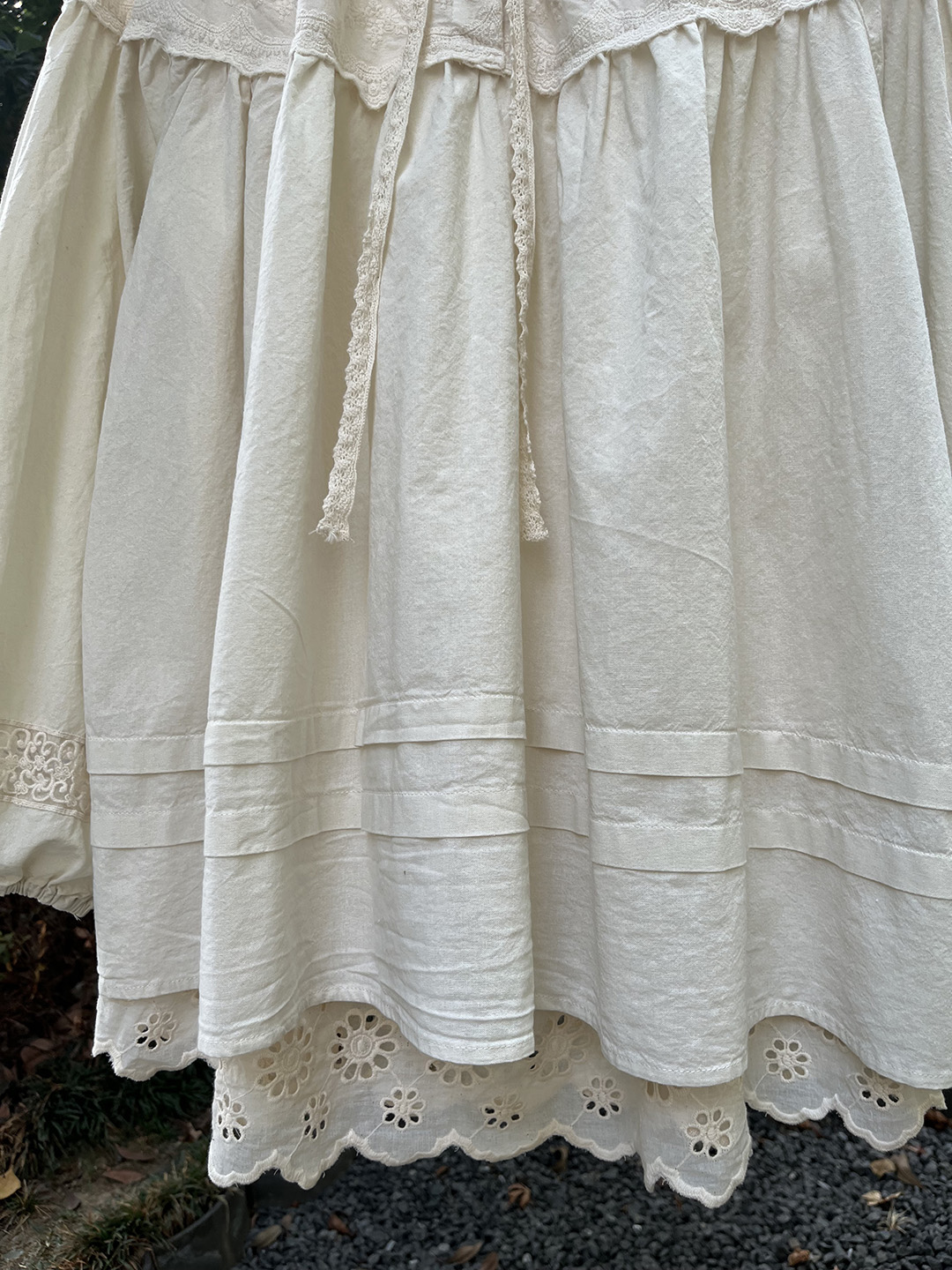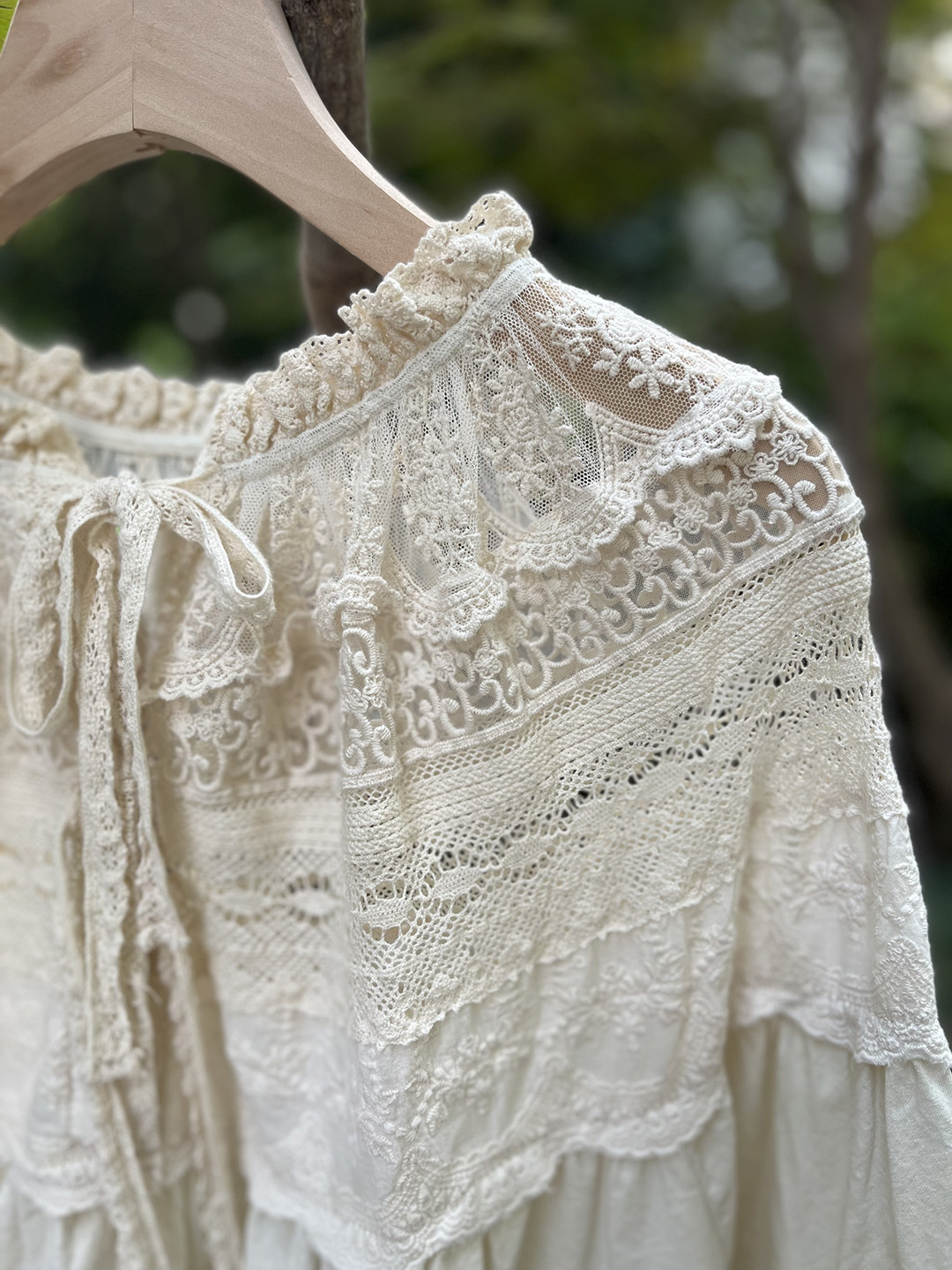 森系蕾絲花邊領口系帶拼接刺綉襯衫寬松大版甜美減齡套頭長袖上衣
