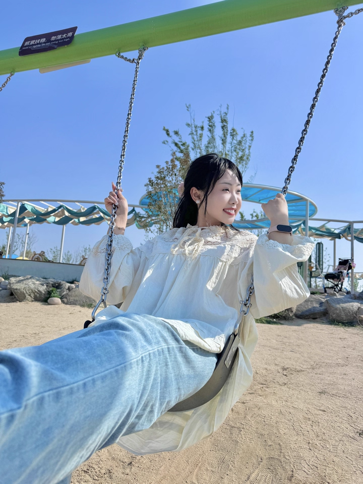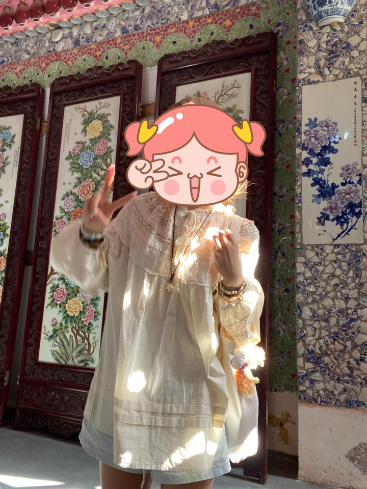 寶貝尺寸:肩寬連袖73cm 胸圍144cm 衣長73cm 內搭米色吊帶屁簾,肩釦拉到最長時76,77左右,拉到最長時曡穿可以漏出來下擺花邊,曡穿更有層次感