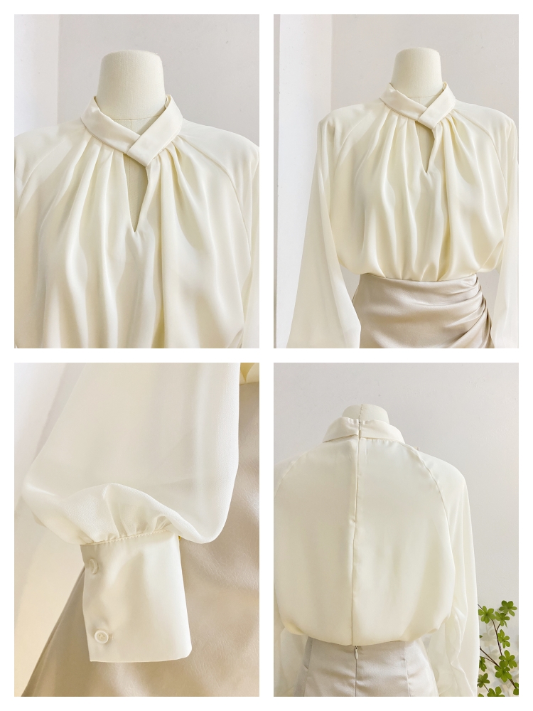 拼接燈籠袖,小心機氣質立領,高垂墜感