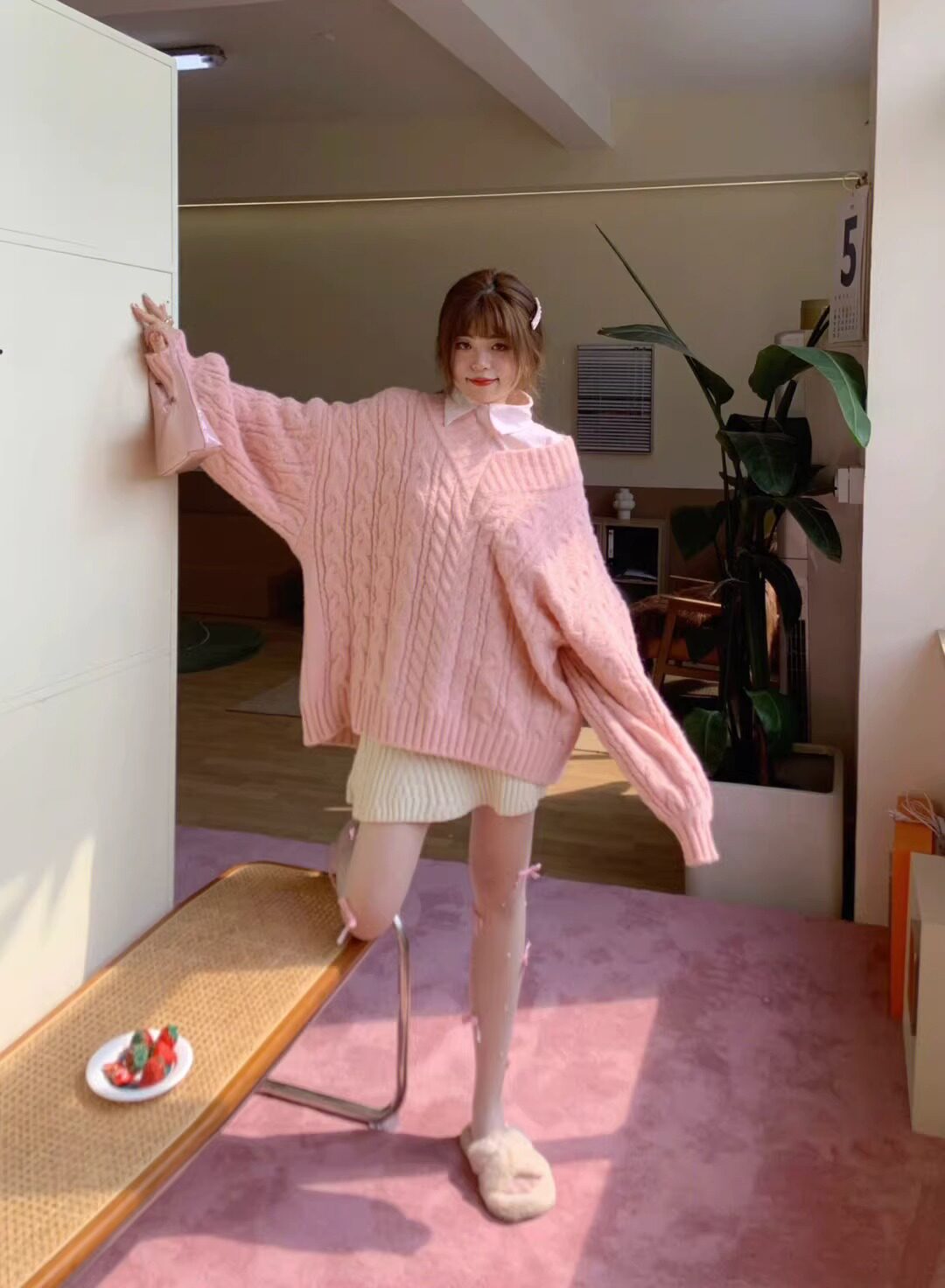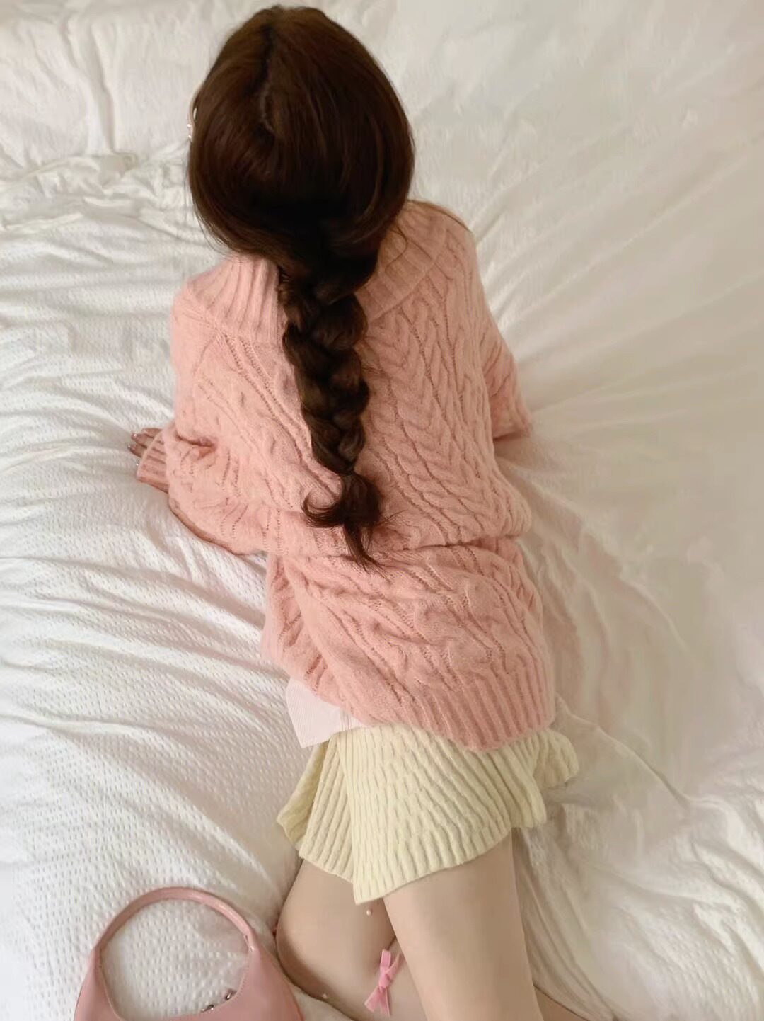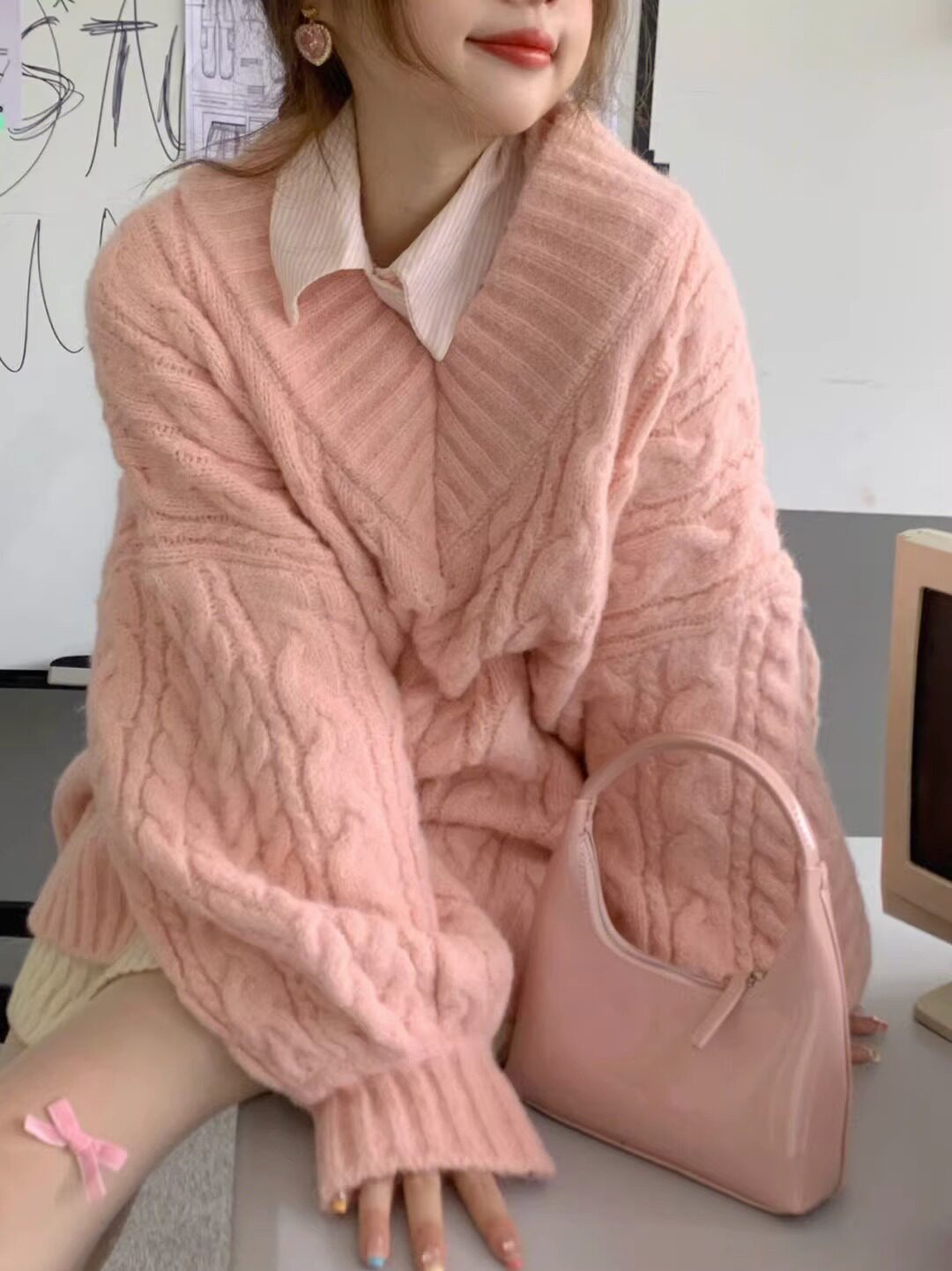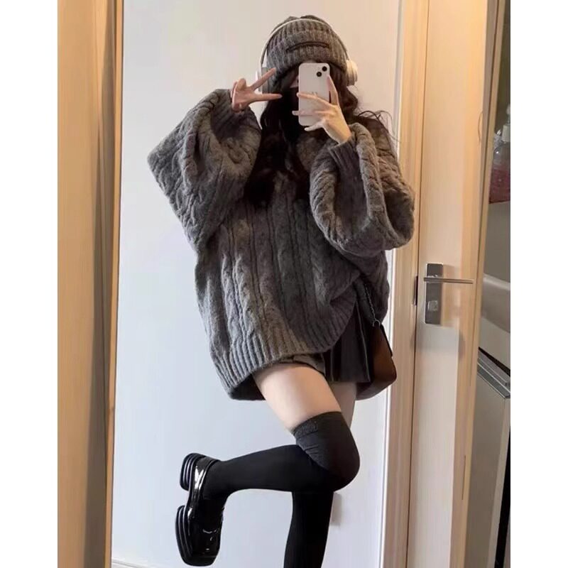 秋冬新款奶fufu軟糯風日系慵懶復古麻花套頭毛衣女寬松外穿針織衫