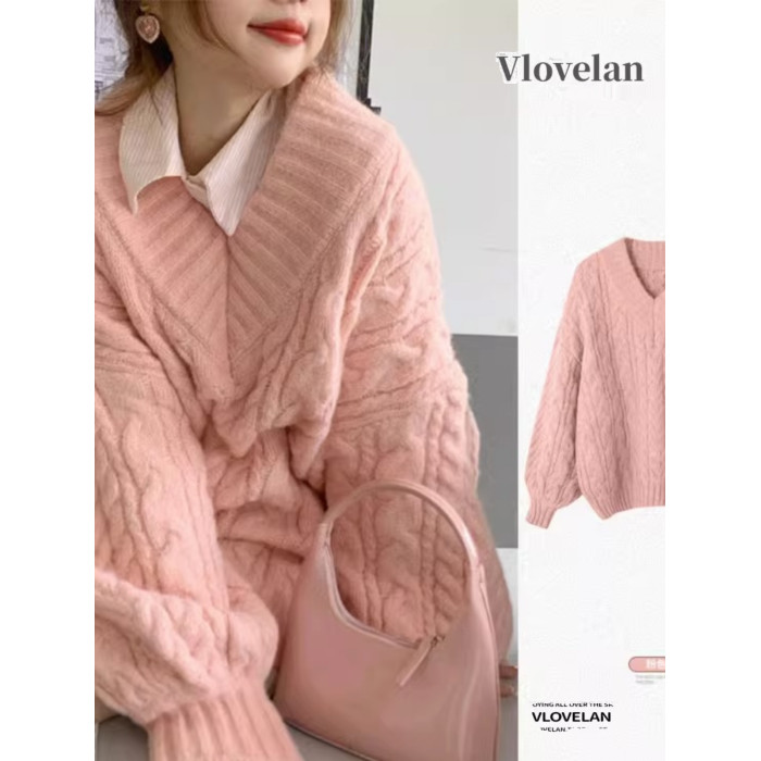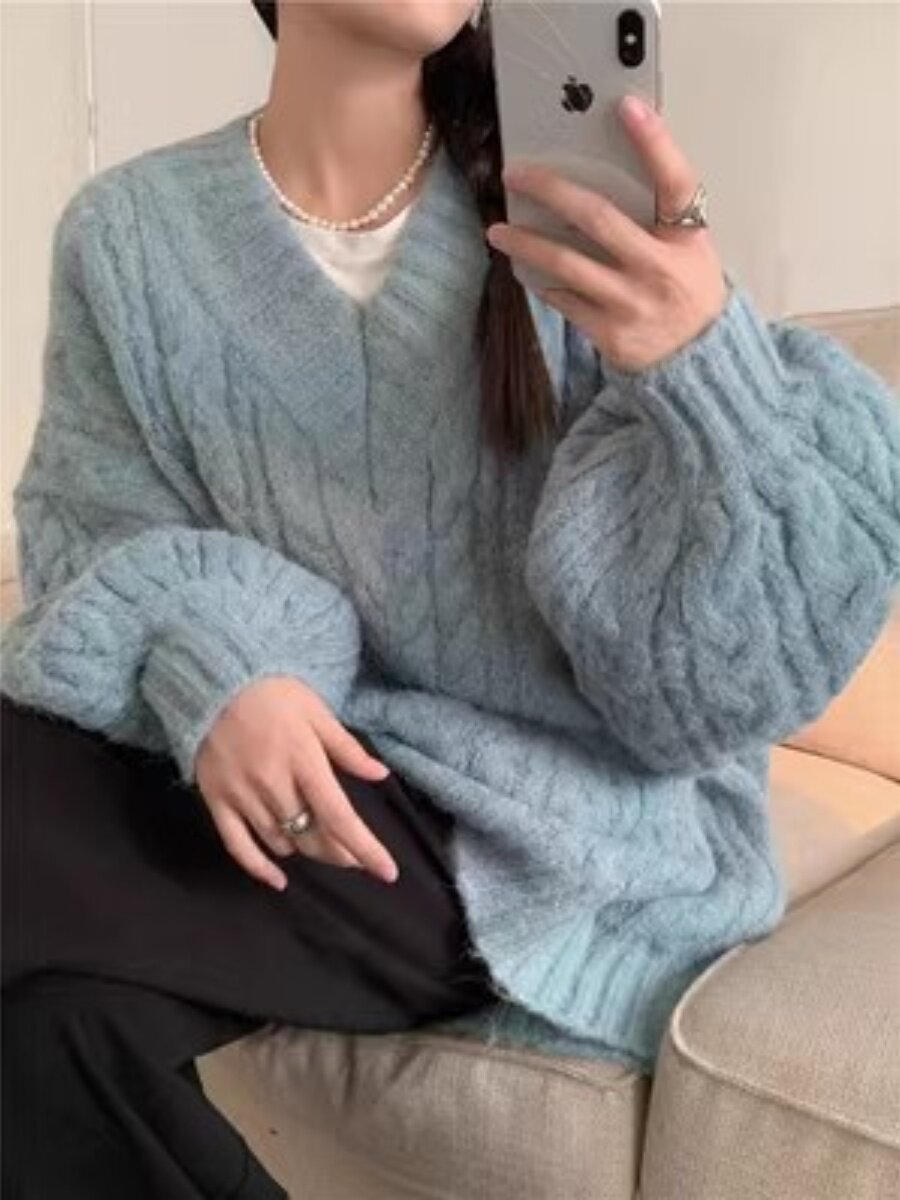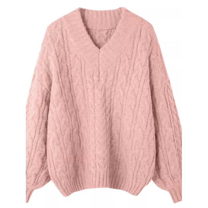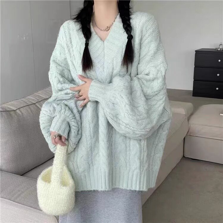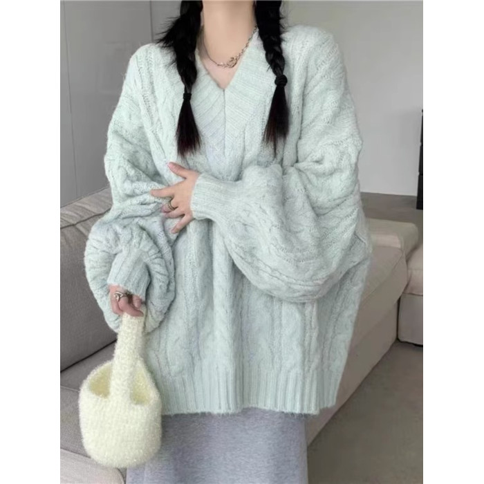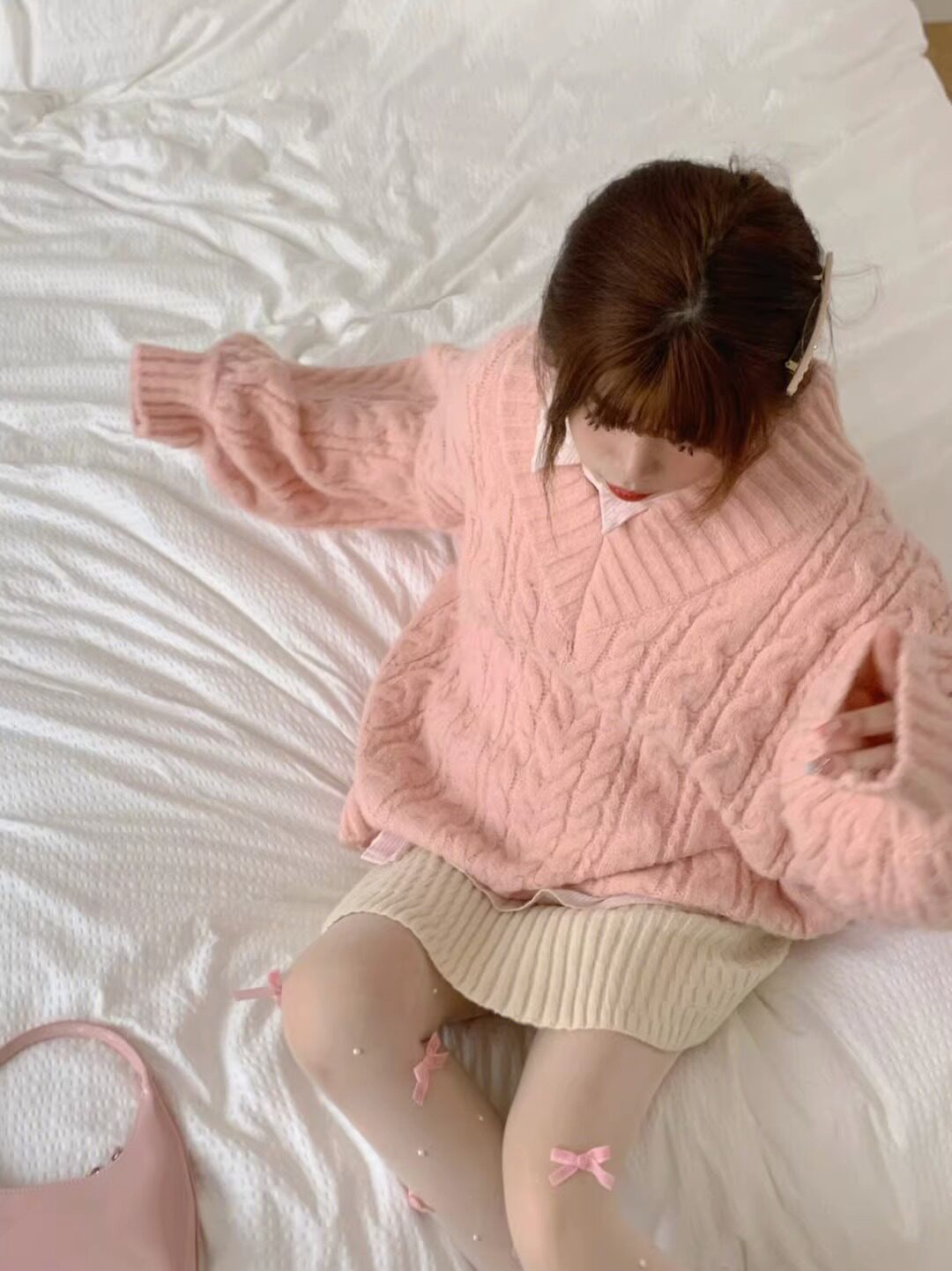 秋冬新款奶fufu軟糯風日系慵懶復古麻花套頭毛衣女寬松外穿針織衫