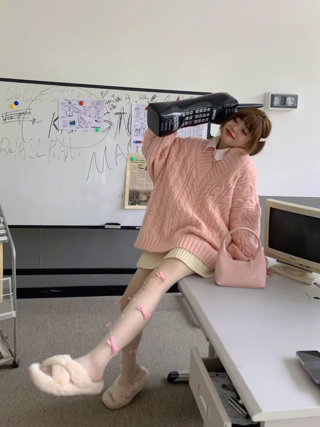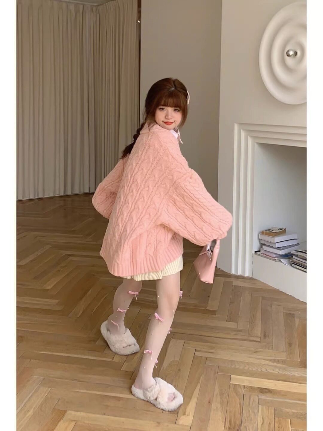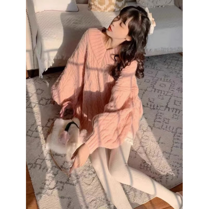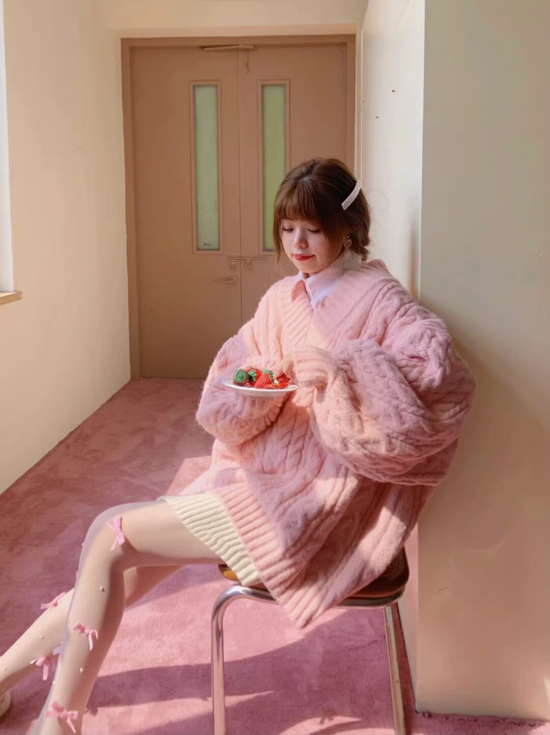 秋冬新款奶fufu軟糯風日系慵懶復古麻花套頭毛衣女寬松外穿針織衫