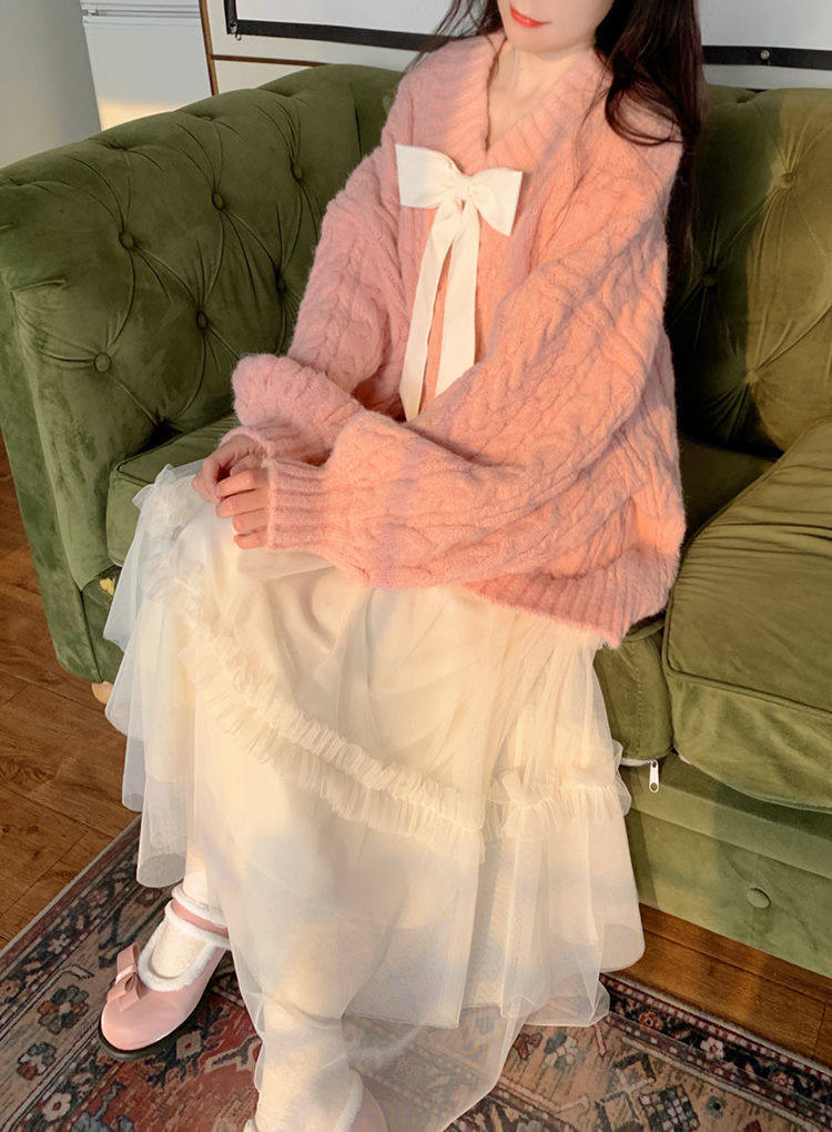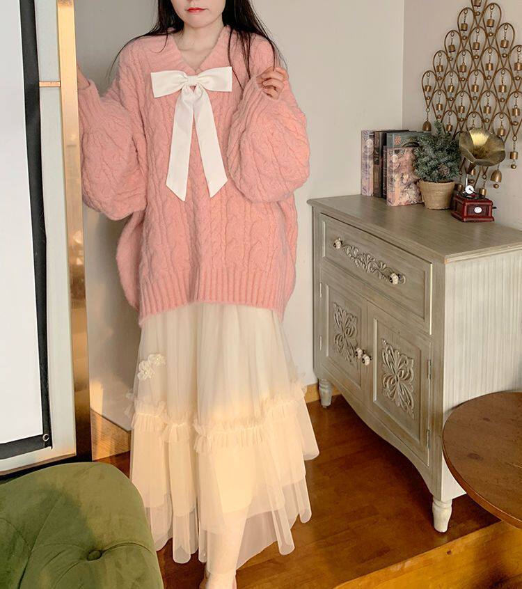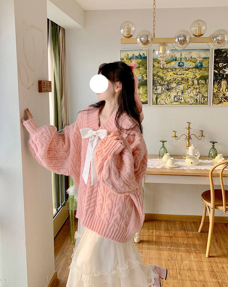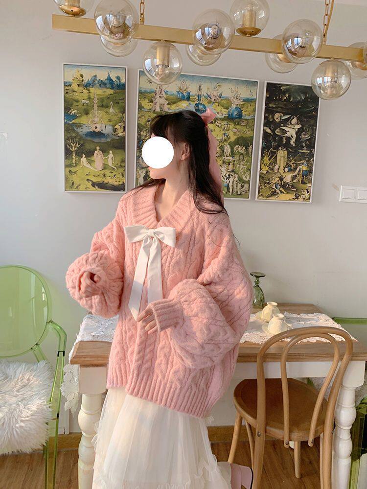秋冬軟糯溫柔慵懶風粉色內搭針織V領毛衣寬松2024新款加厚上衣女