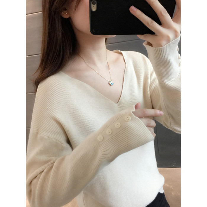 V領毛衣女2025新款秋冬內搭雞心領洋氣針織打底衫小個子爆款上衣