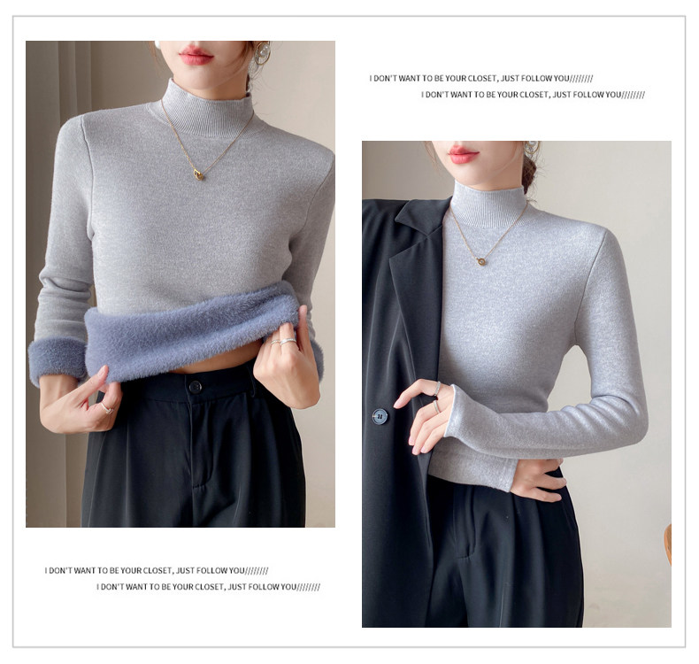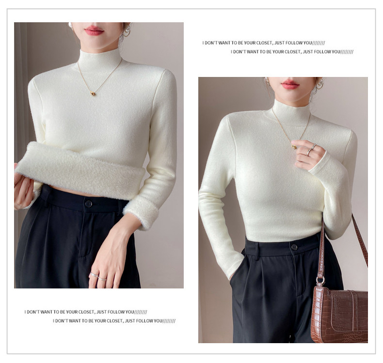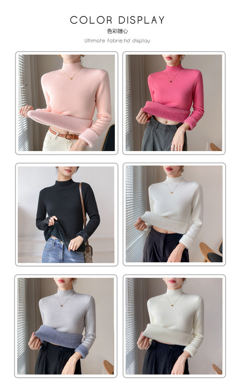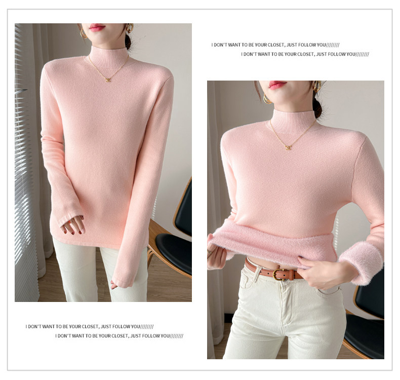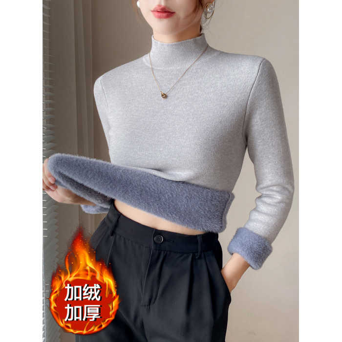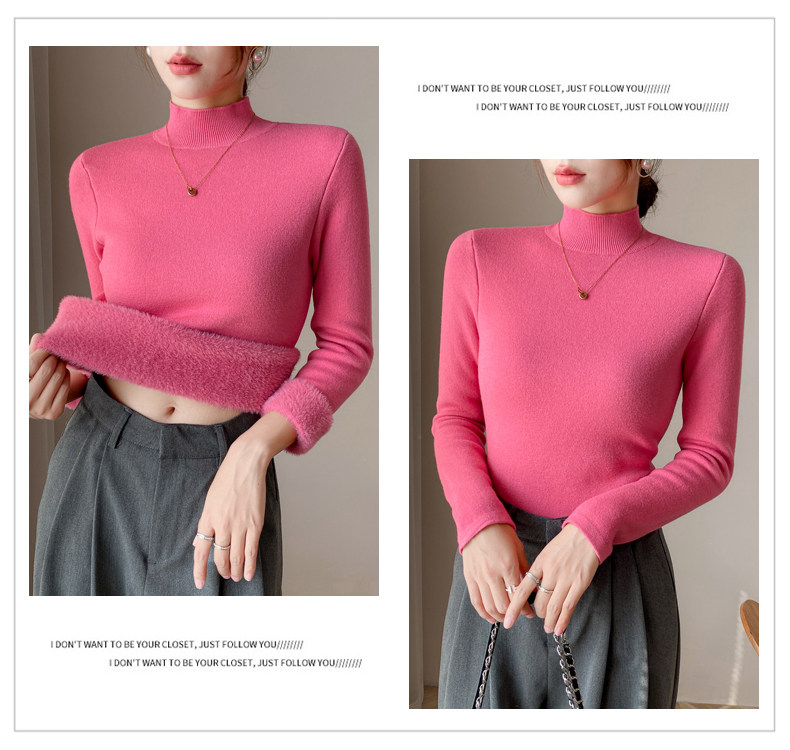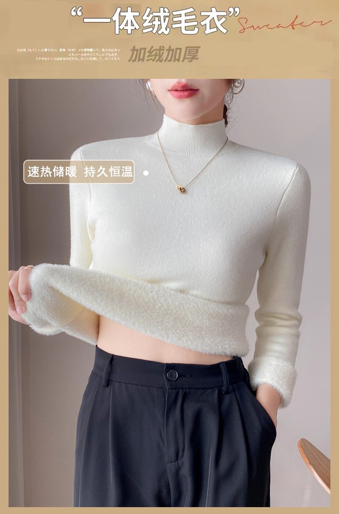 加絨毛衣女一體絨秋冬加厚內搭大碼修身半高領打底針織衫保暖上衣