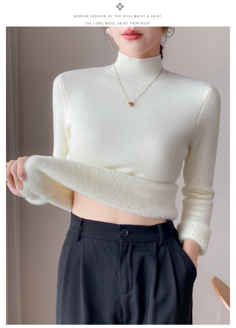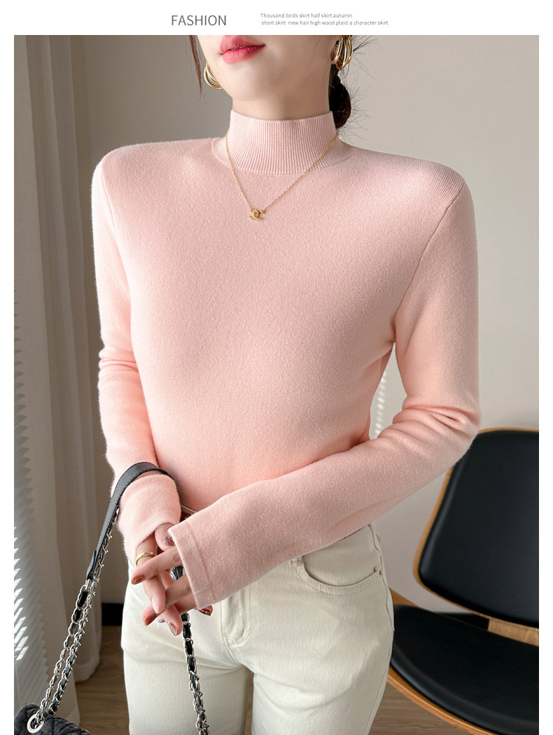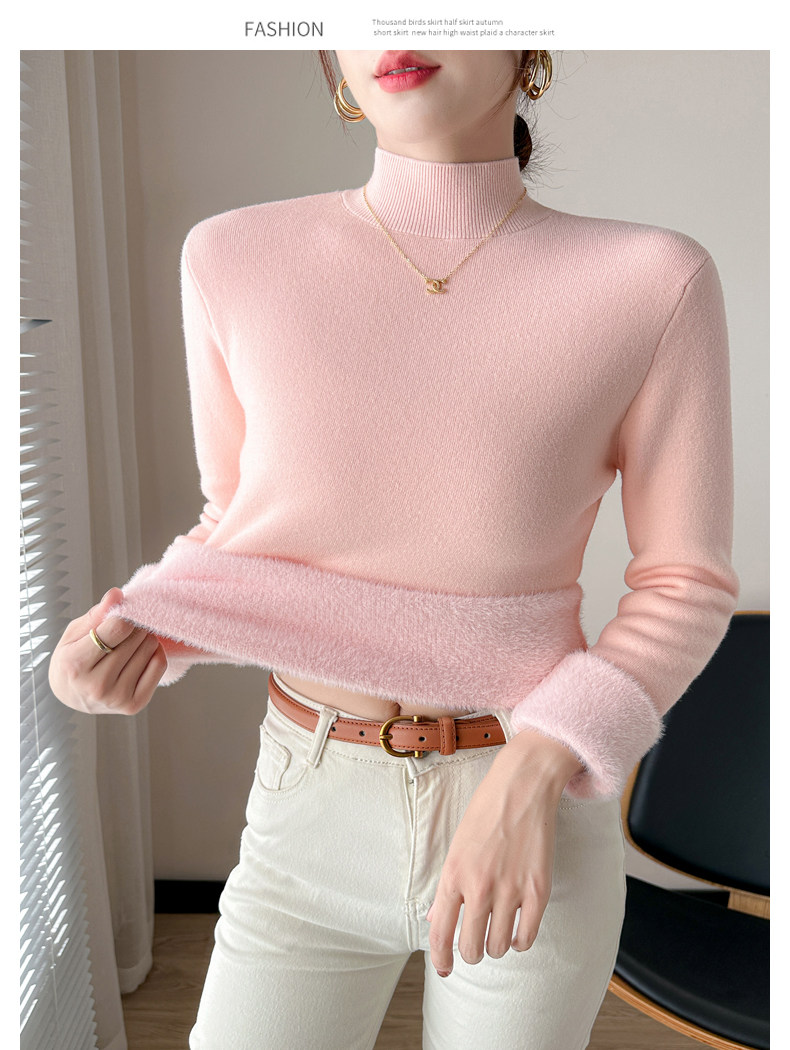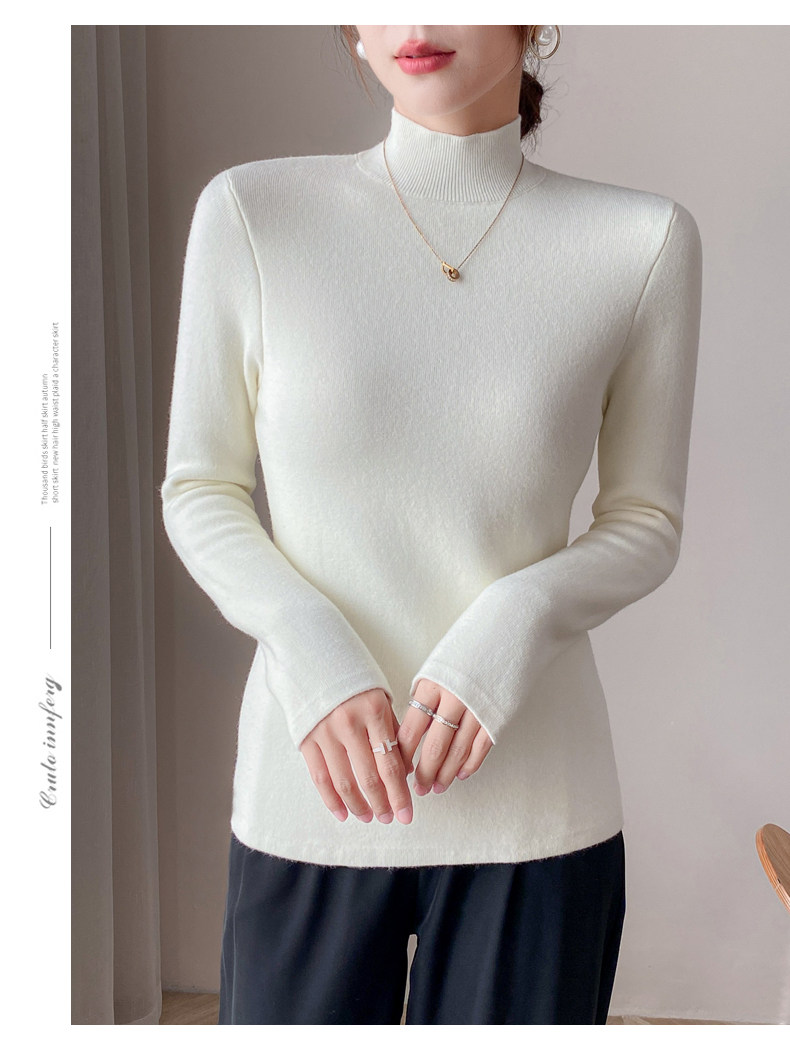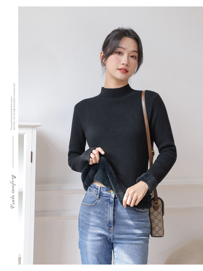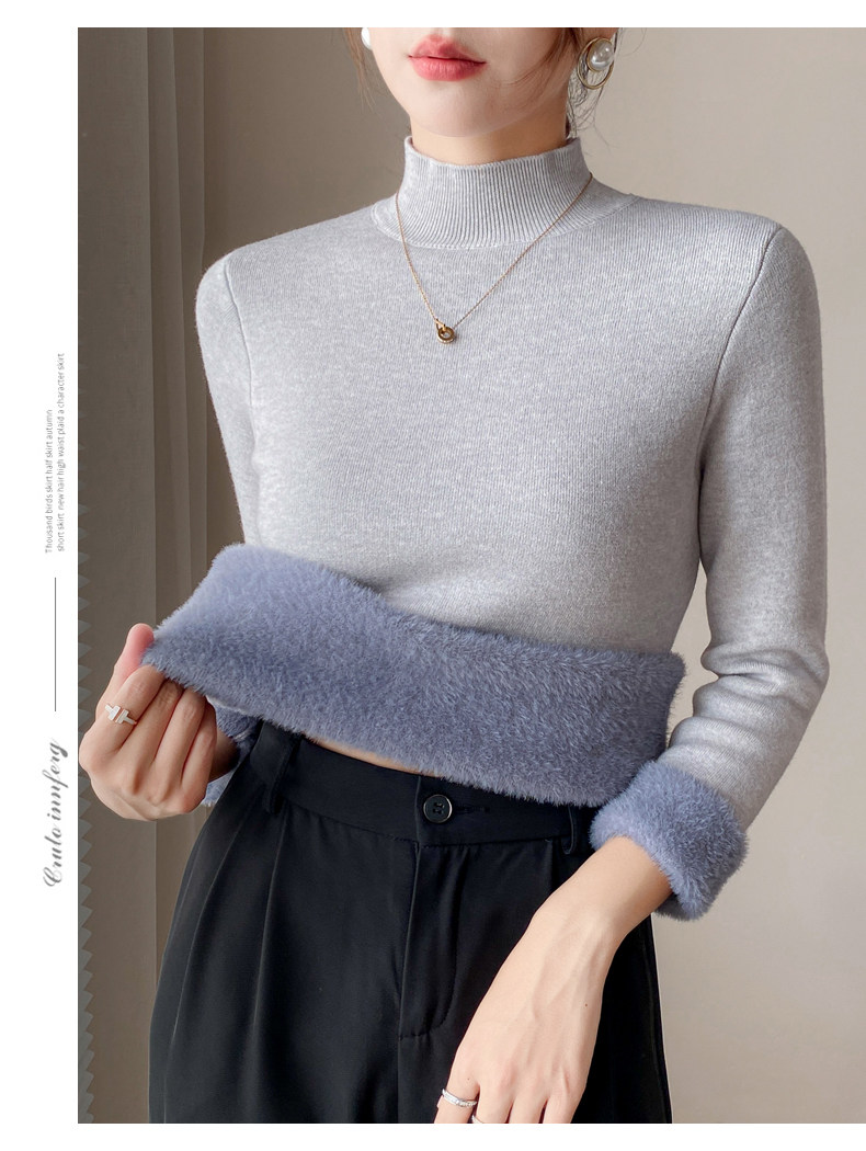 加絨毛衣女一體絨秋冬加厚內搭大碼修身半高領打底針織衫保暖上衣