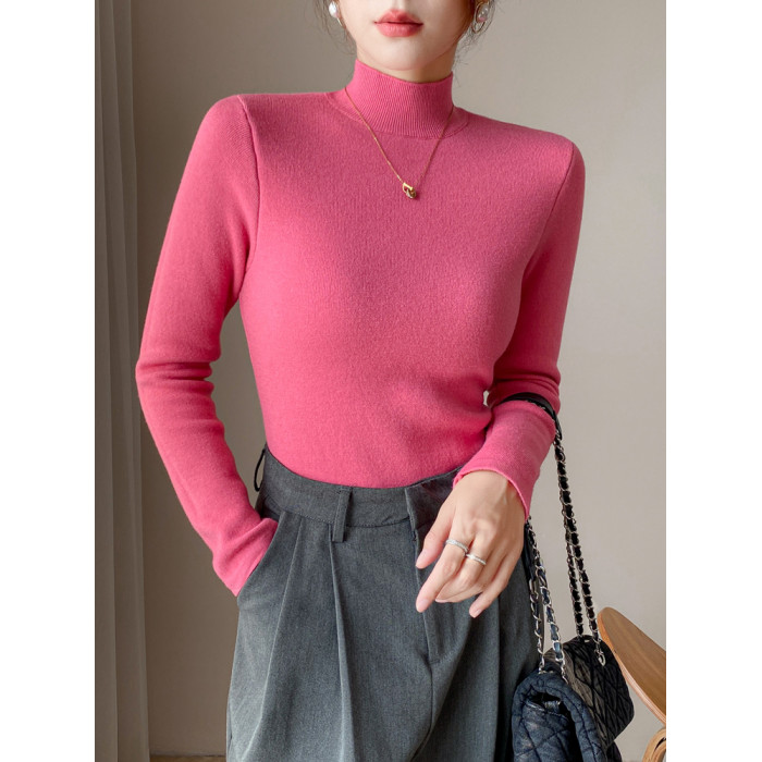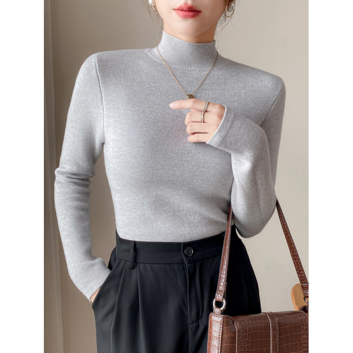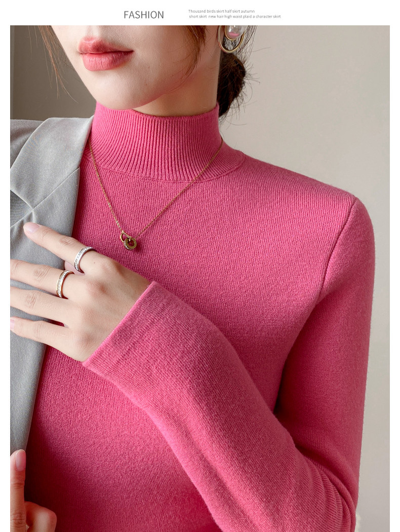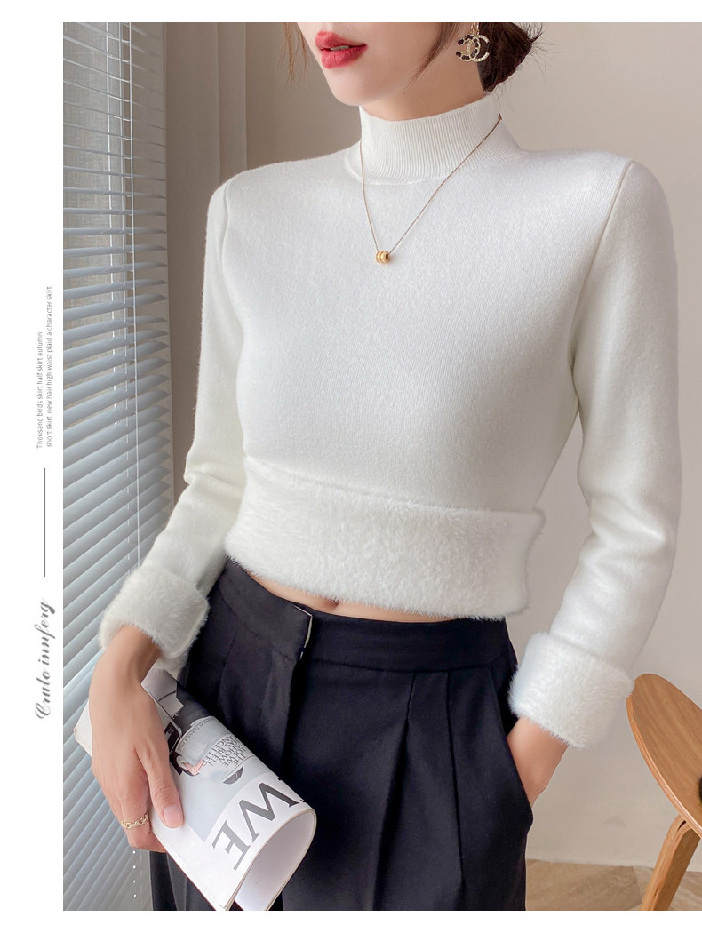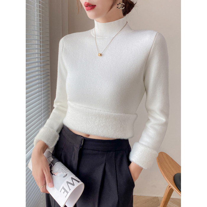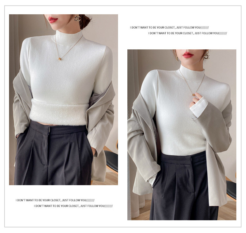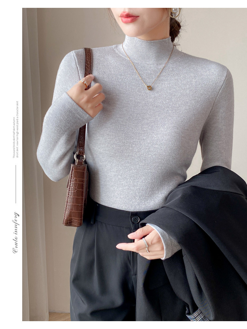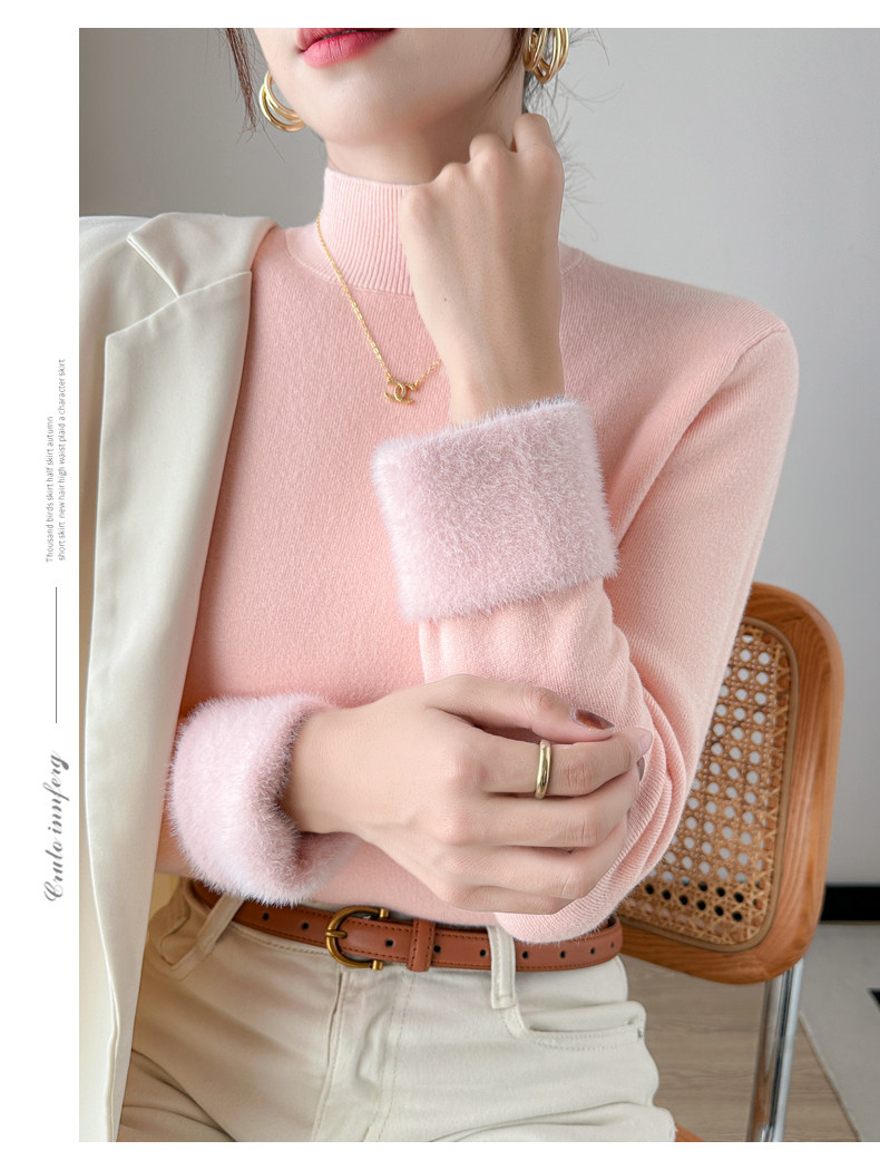 加絨毛衣女一體絨秋冬加厚內搭大碼修身半高領打底針織衫保暖上衣