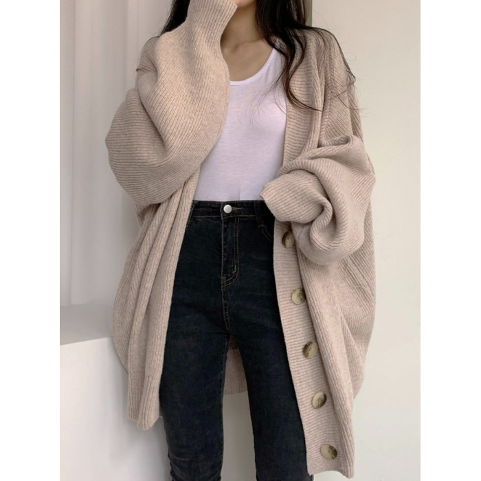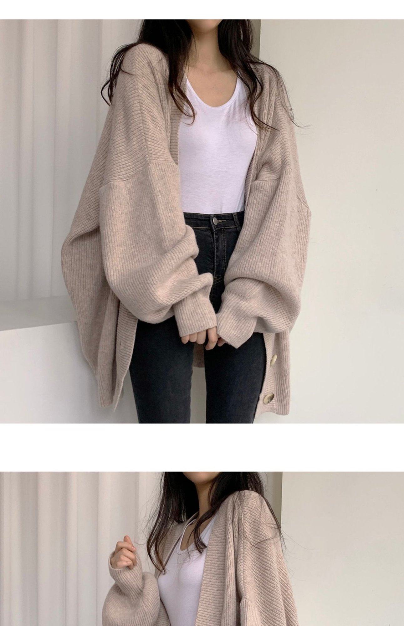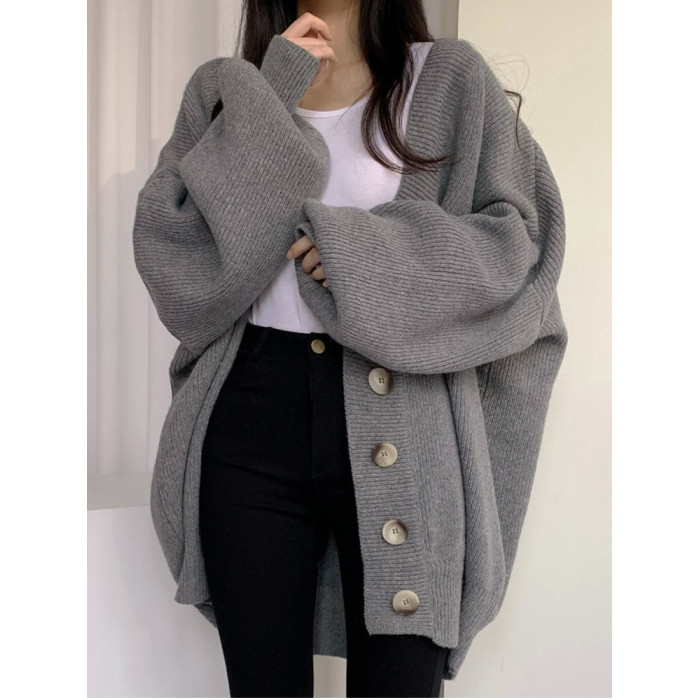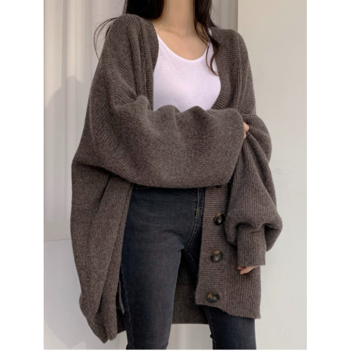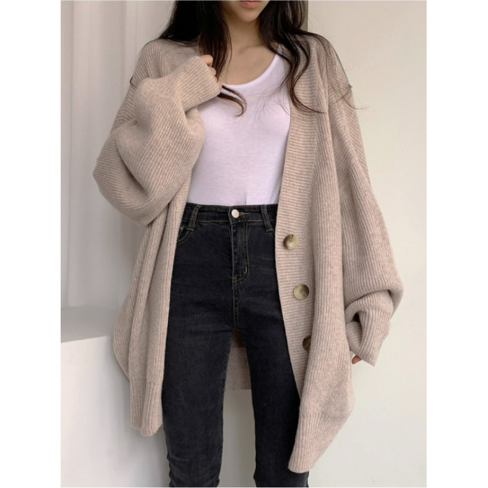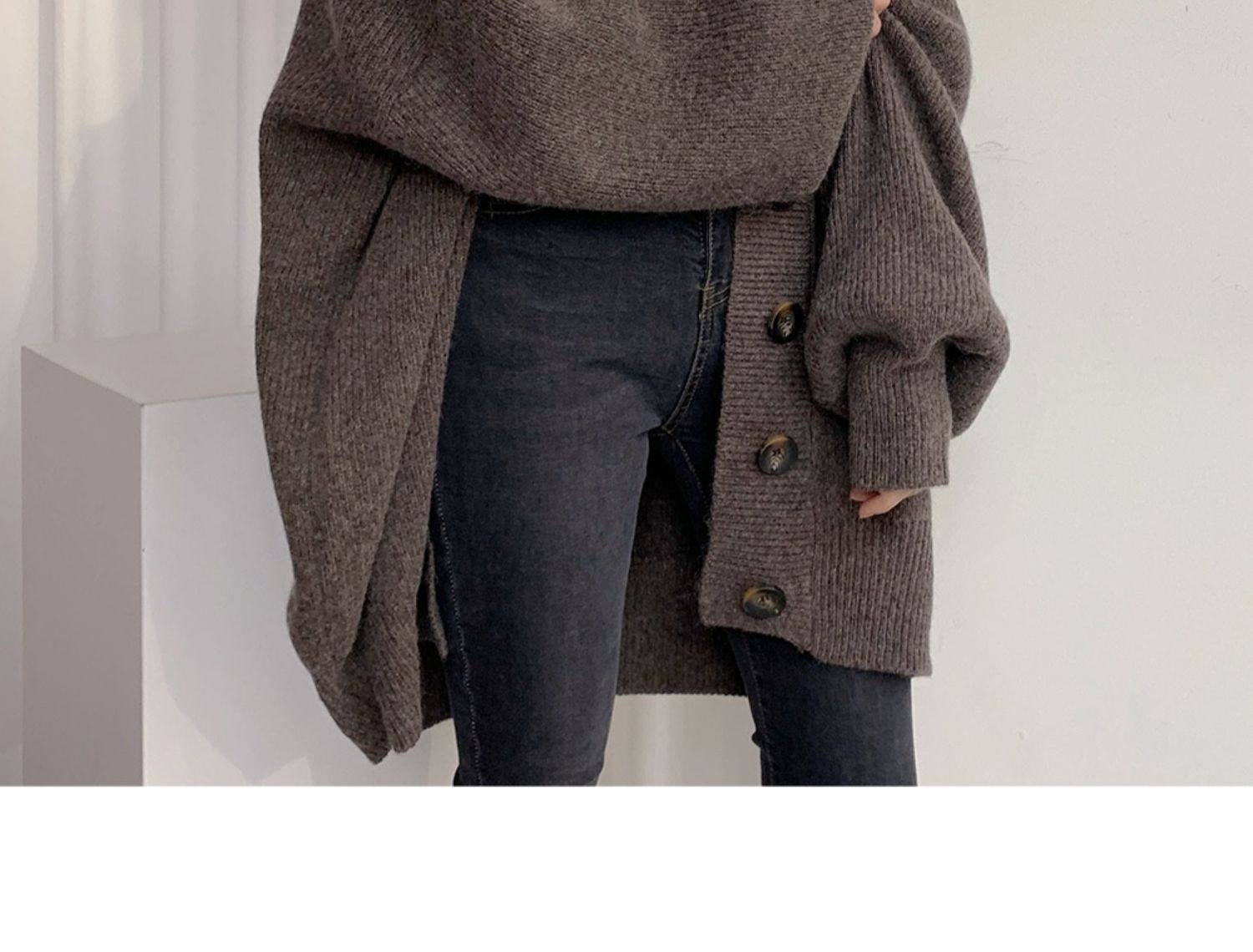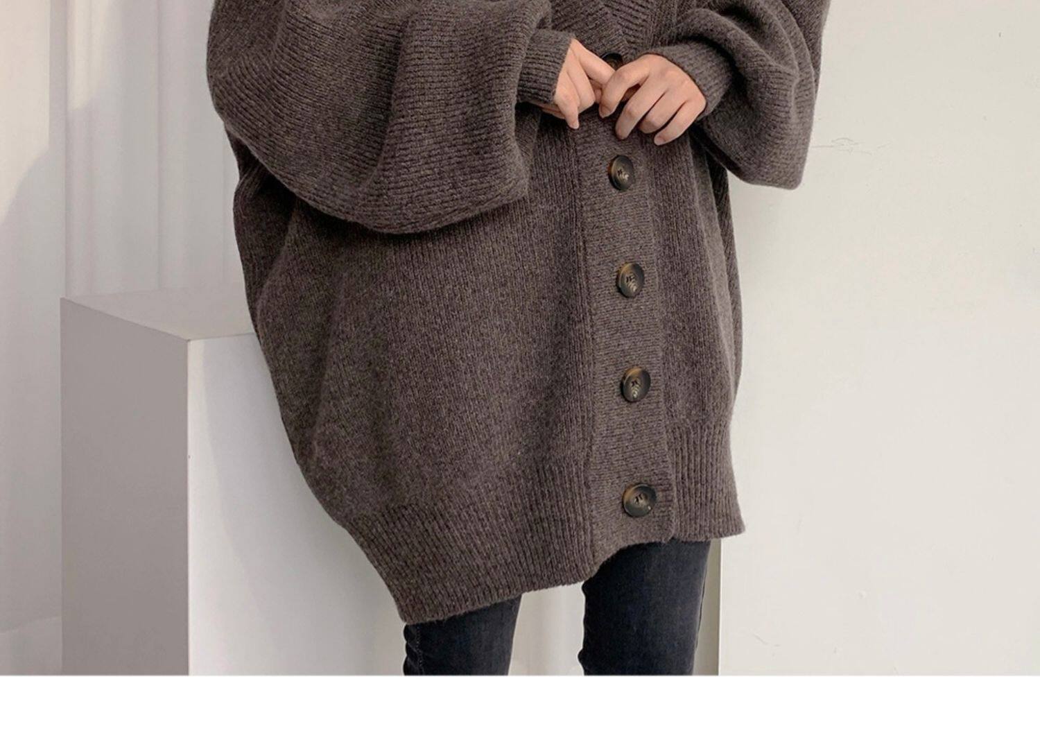 大碼寬松慵懶風中長款正肩毛衣外套女秋冬胖mm高級感針織開衫上衣