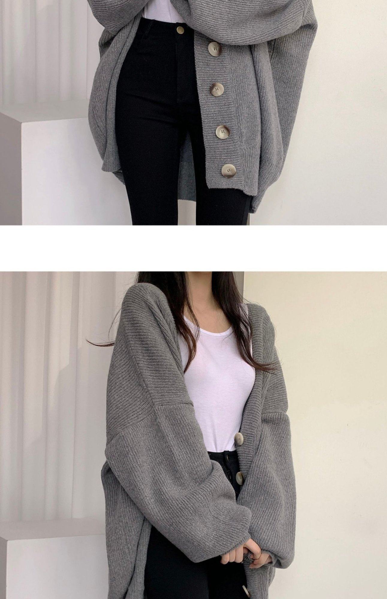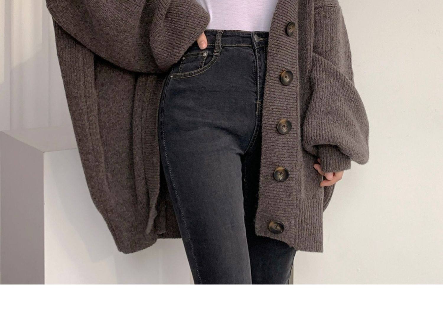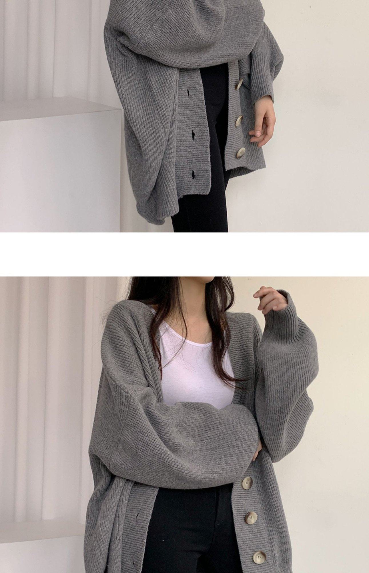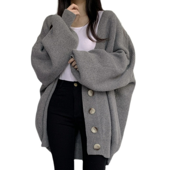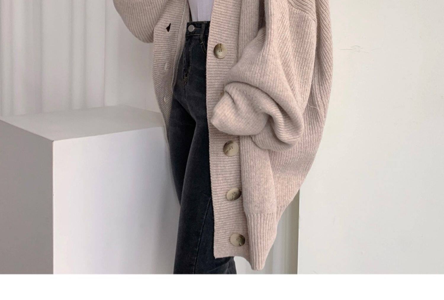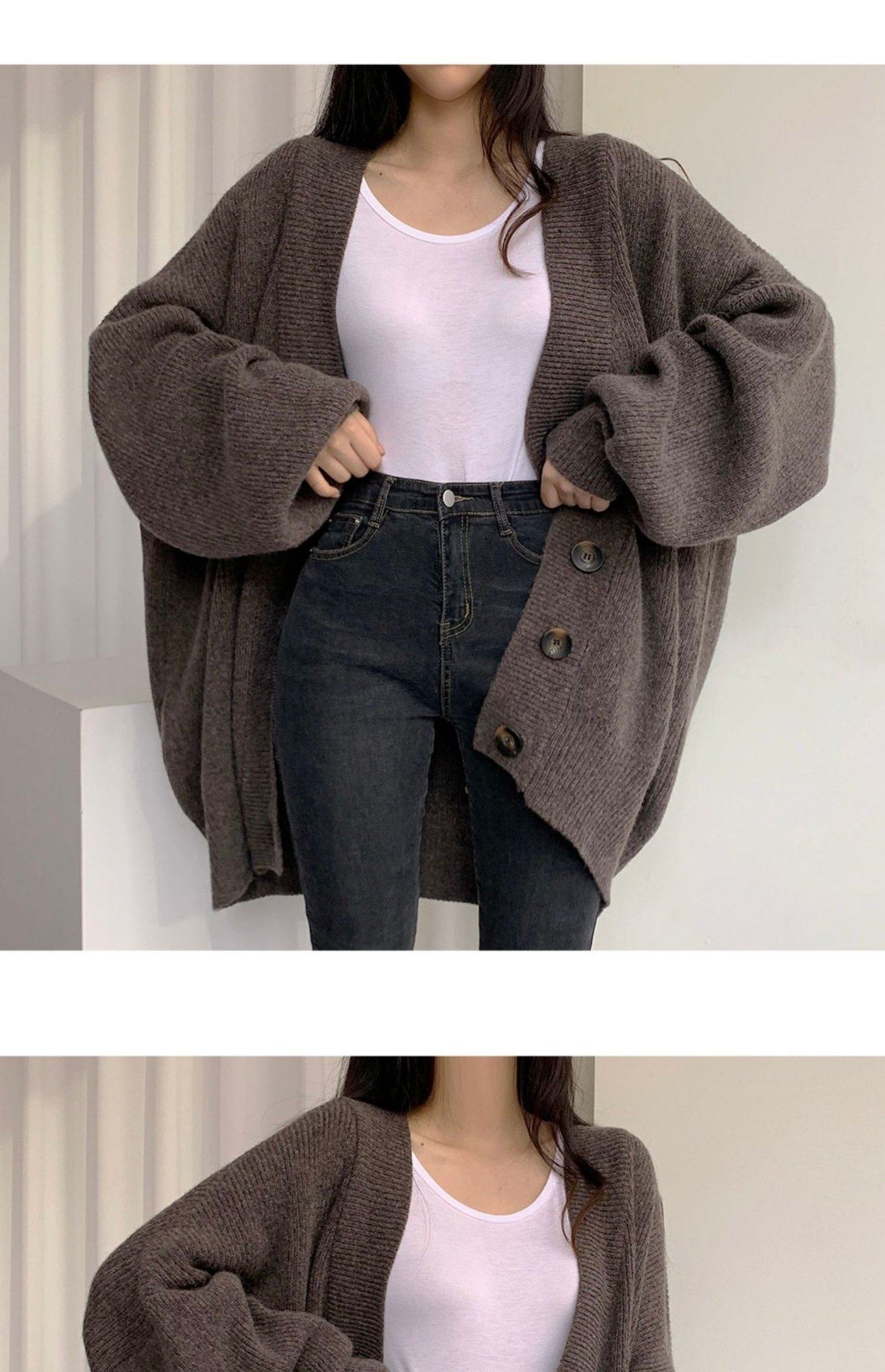 大碼寬松慵懶風中長款正肩毛衣外套女秋冬胖mm高級感針織開衫上衣