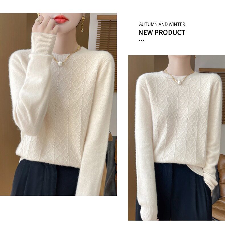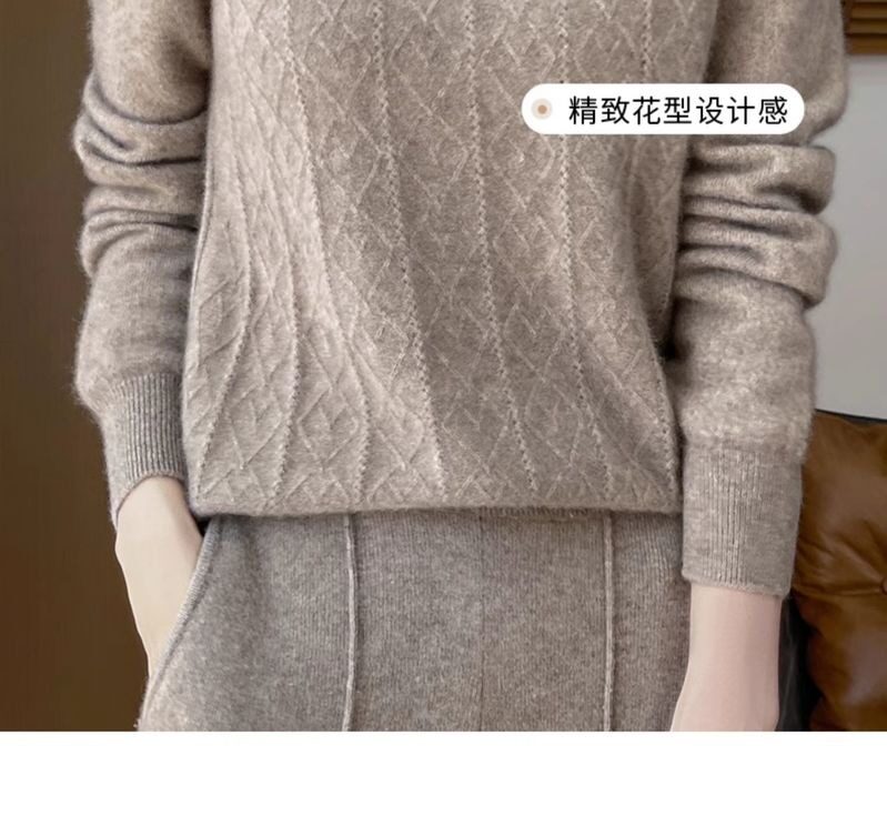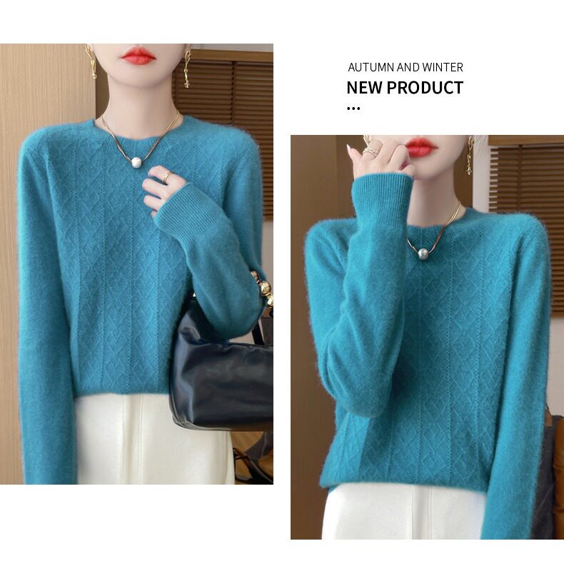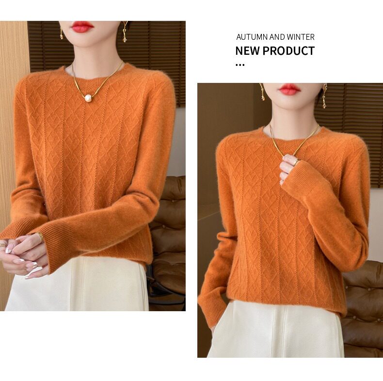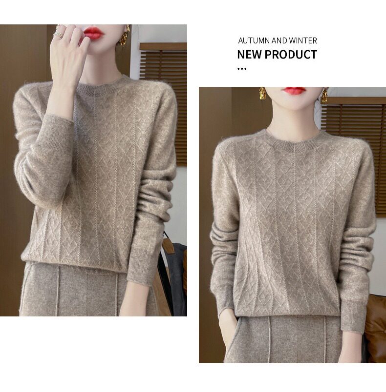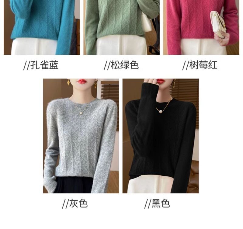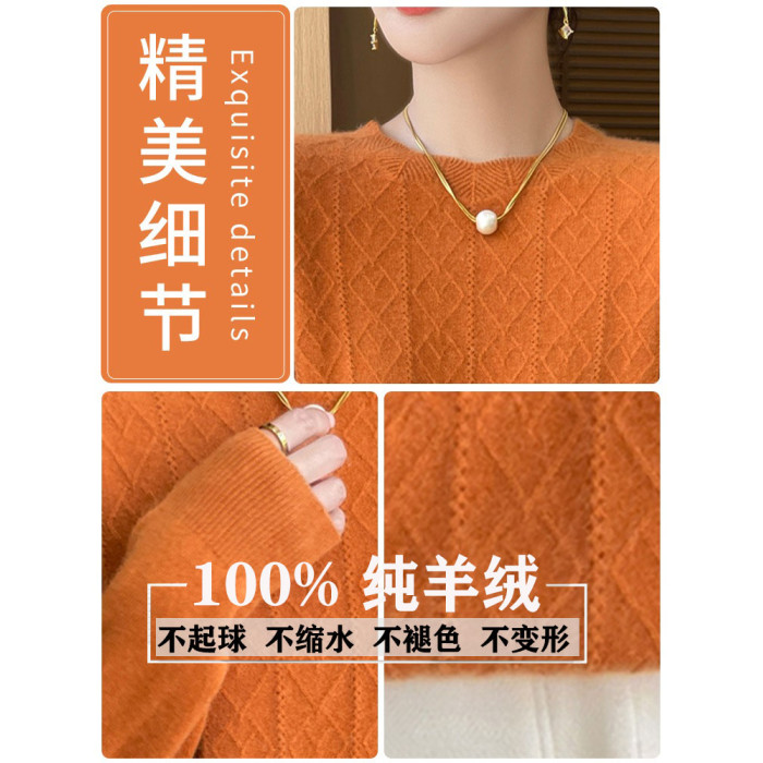 鄂爾多斯市100%純針織衫女套頭加厚圓領毛衣秋冬寬松針織打底衫