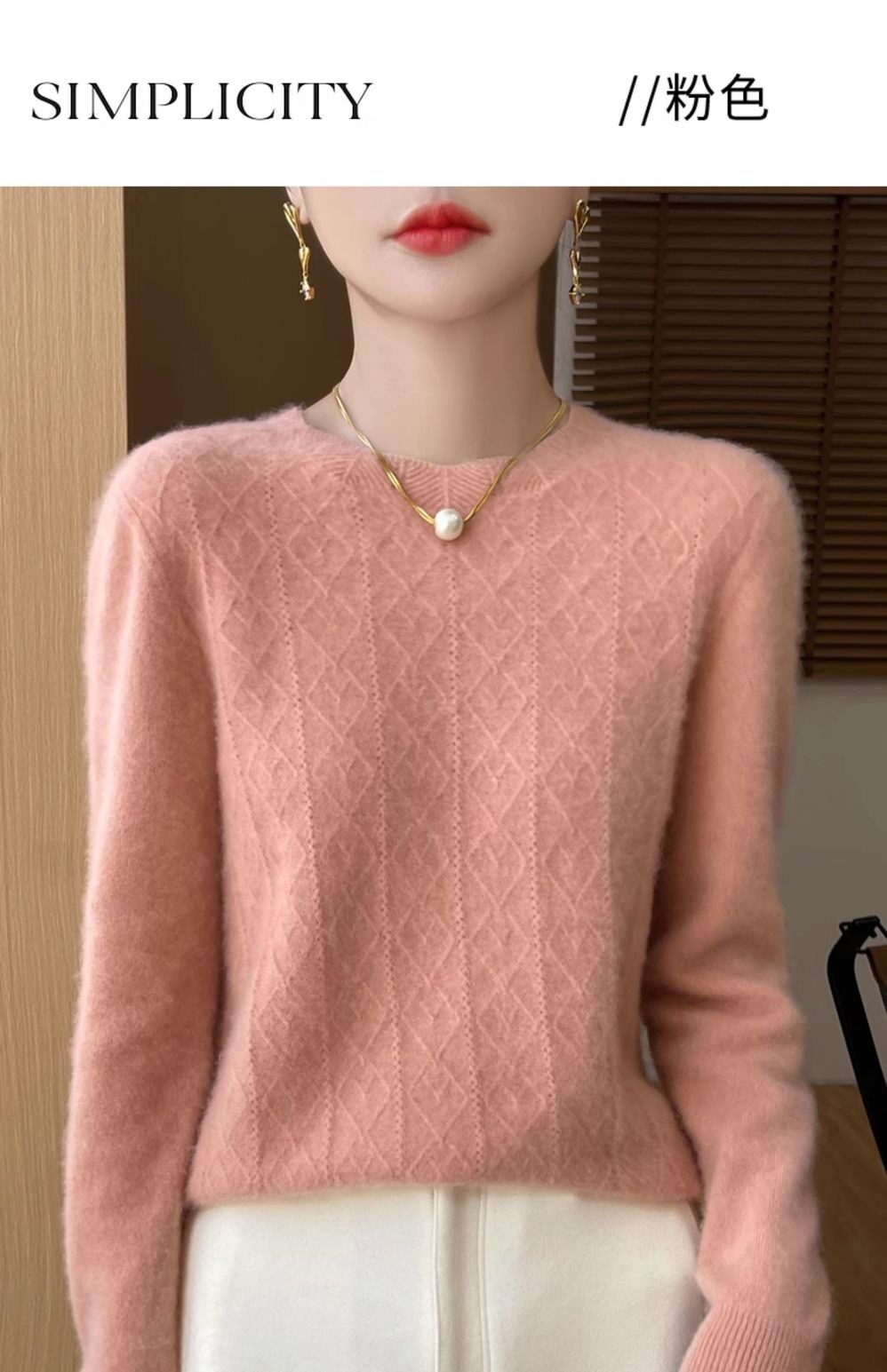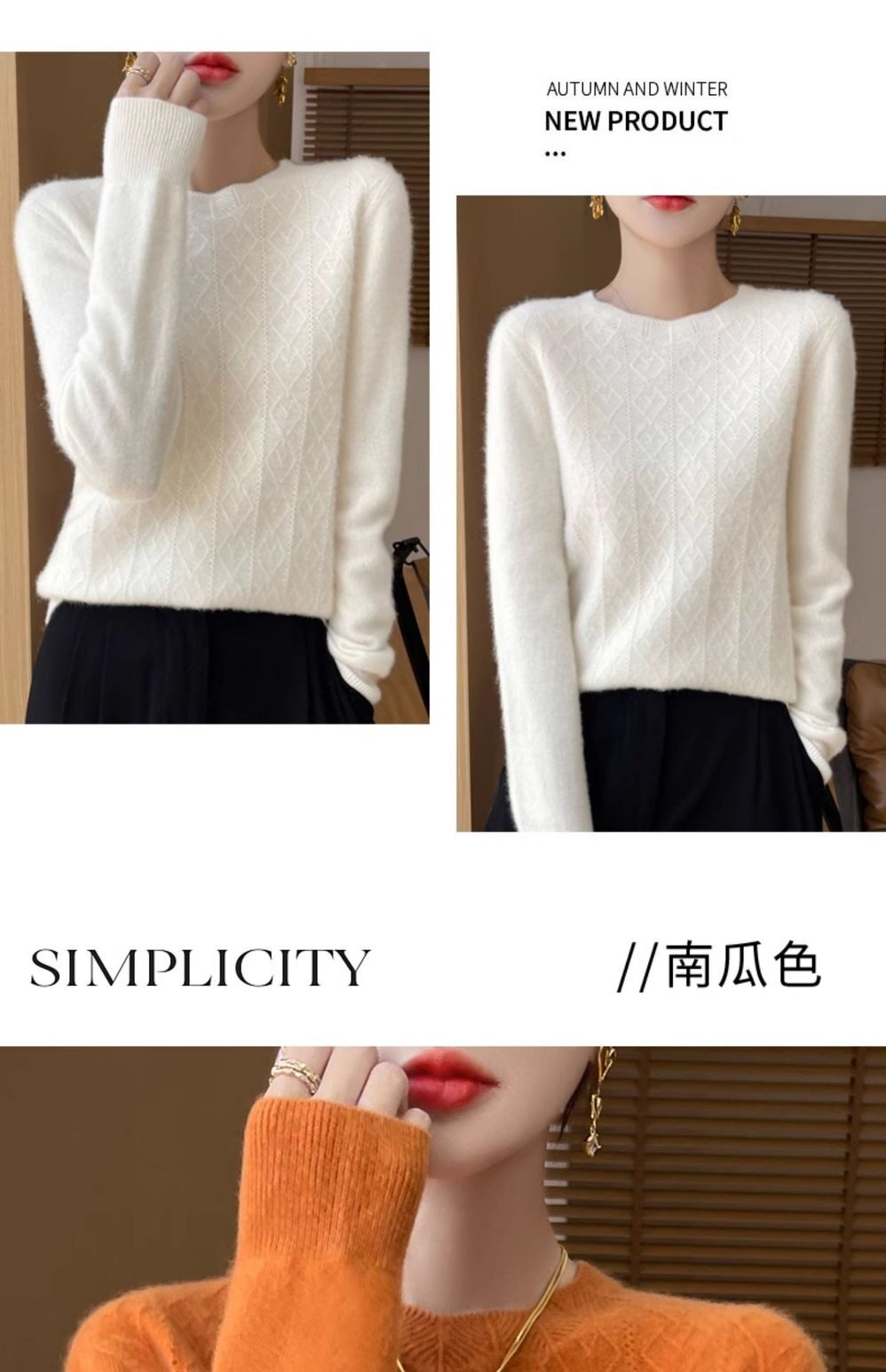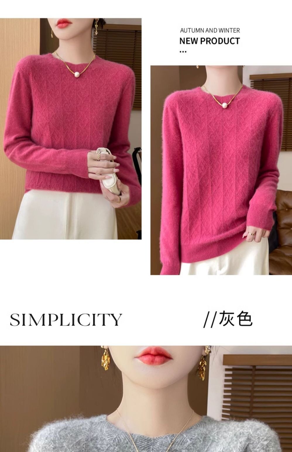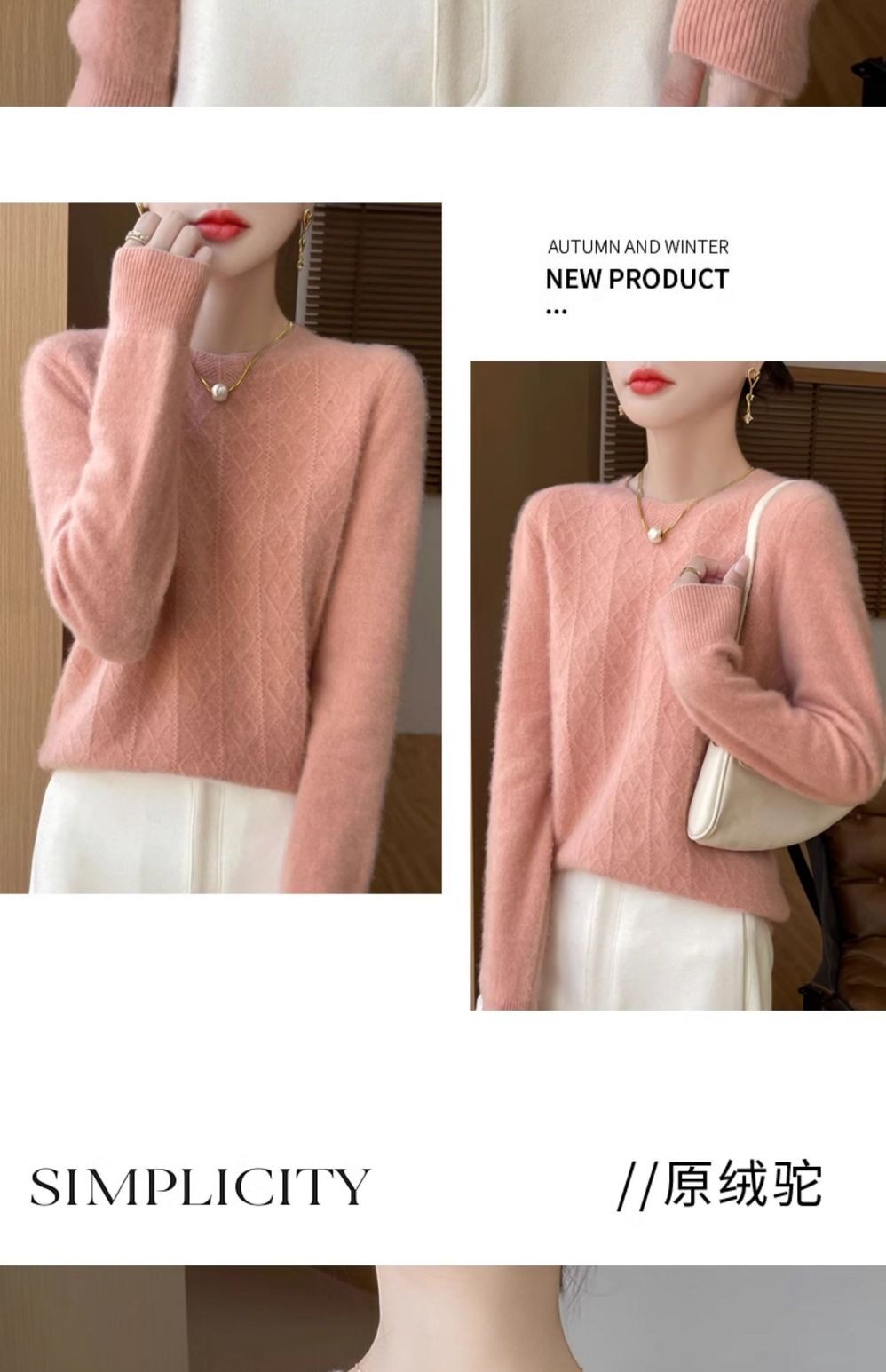 鄂爾多斯市100%純針織衫女套頭加厚圓領毛衣秋冬寬松針織打底衫