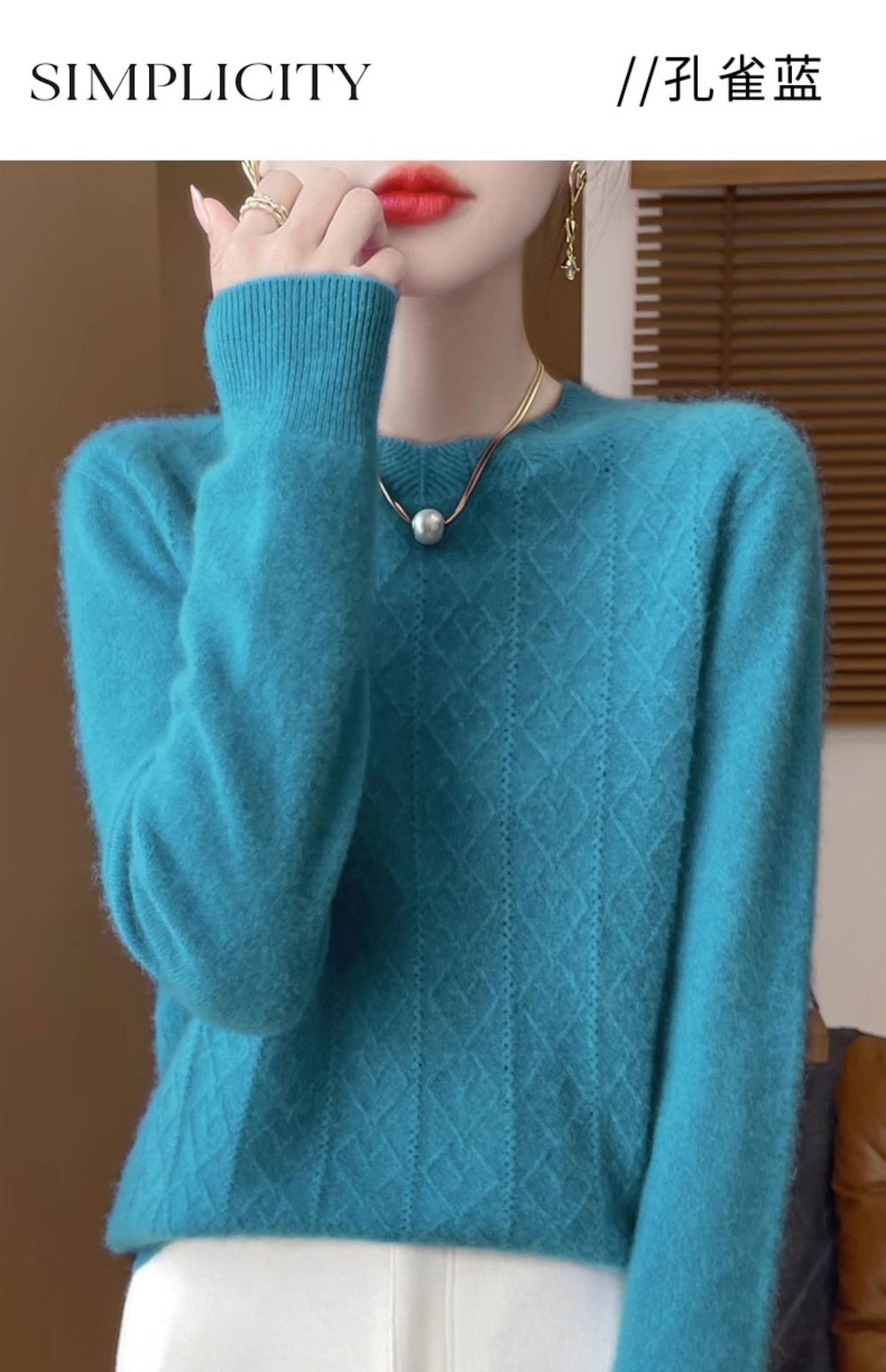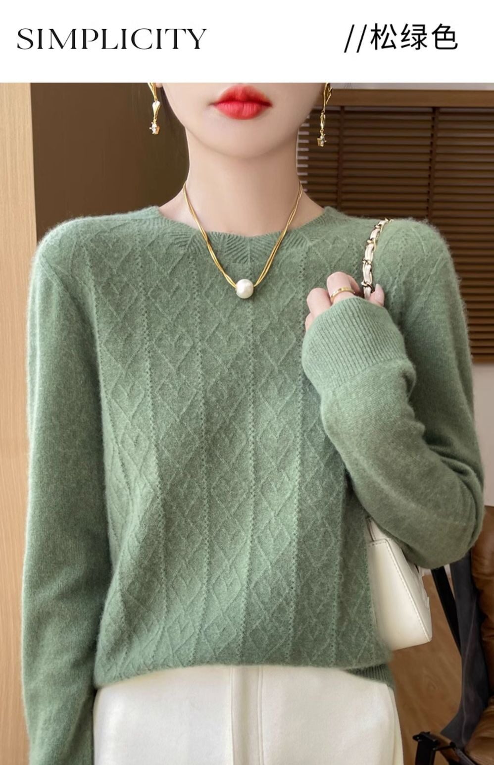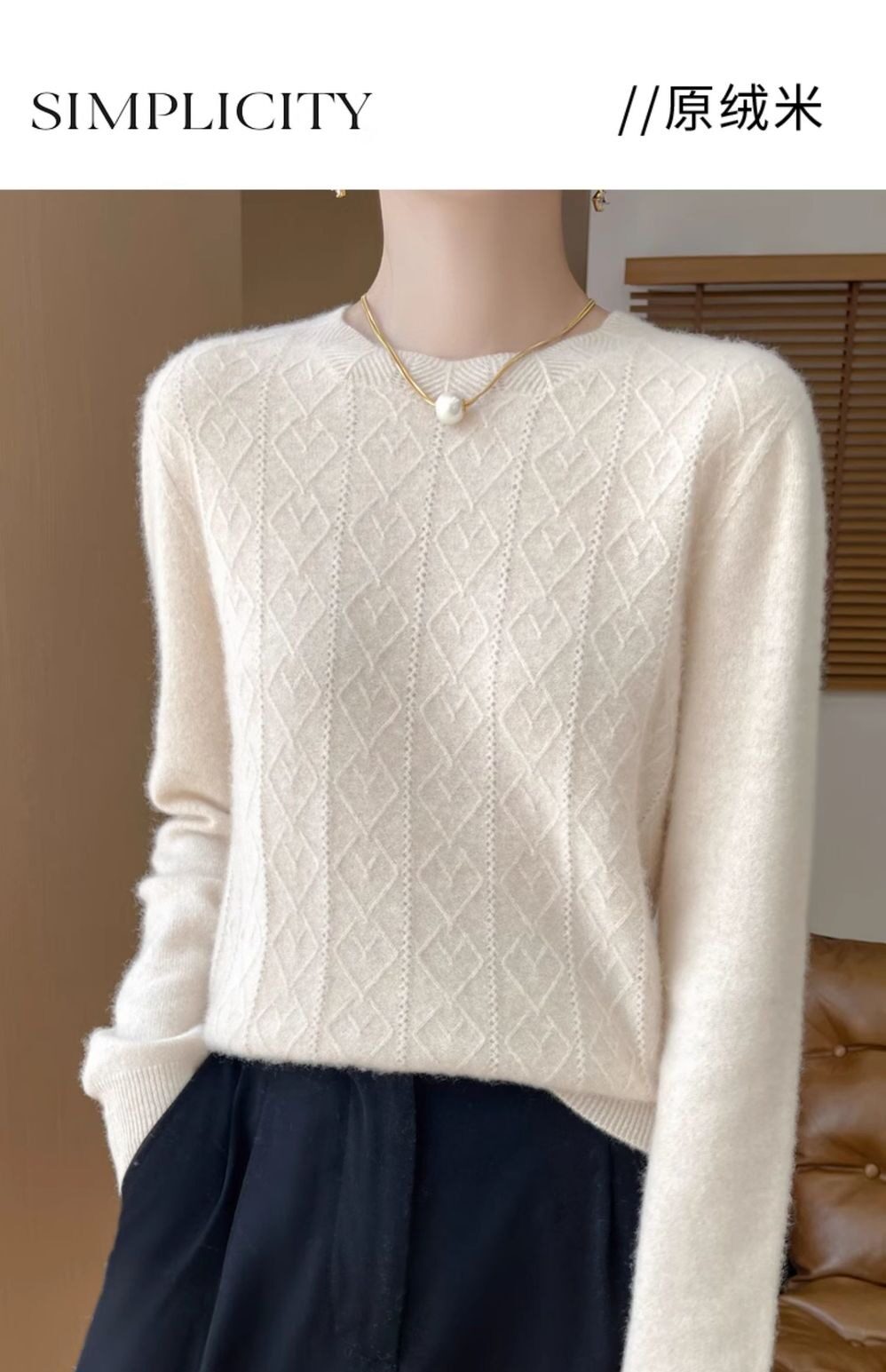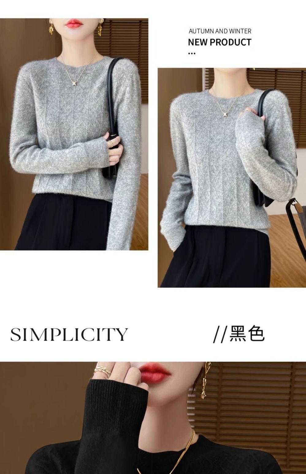 鄂爾多斯市100%純針織衫女套頭加厚圓領毛衣秋冬寬松針織打底衫