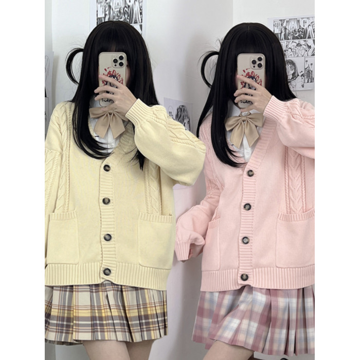 海月社 軟軟糯糯奶油加厚開衫毛衣長袖慵懶風 JK寬松針織衫女甜美