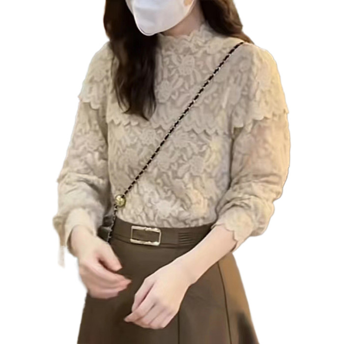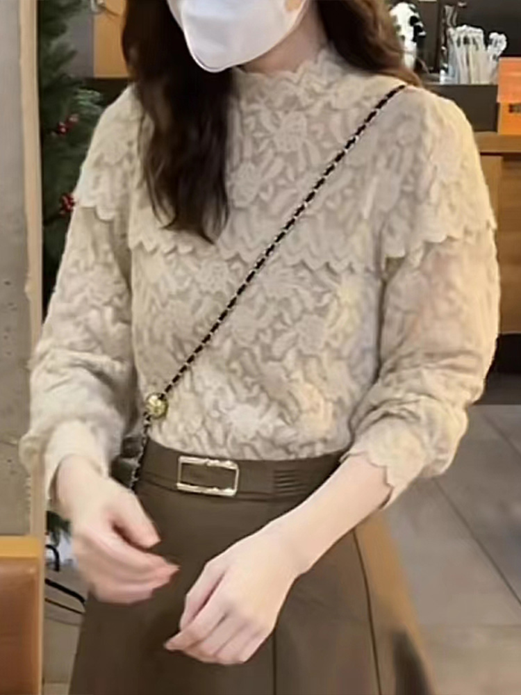 法式內搭蕾絲打底衫女2025新款秋冬爆款時尚洋氣獨特別致小衫上衣