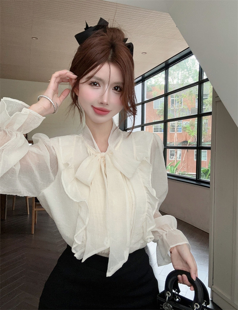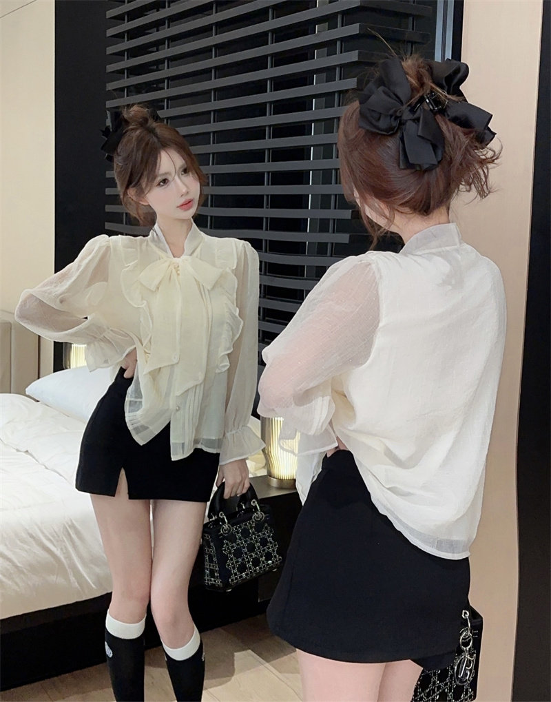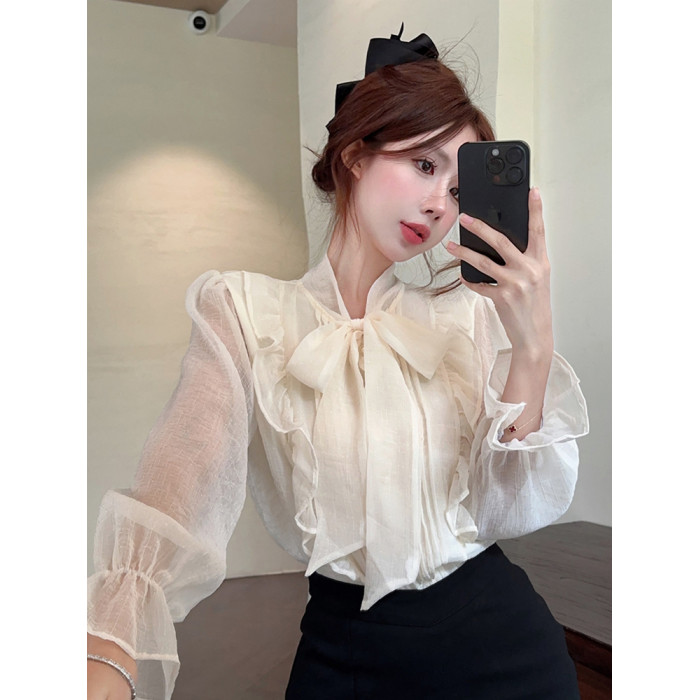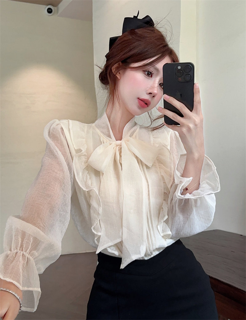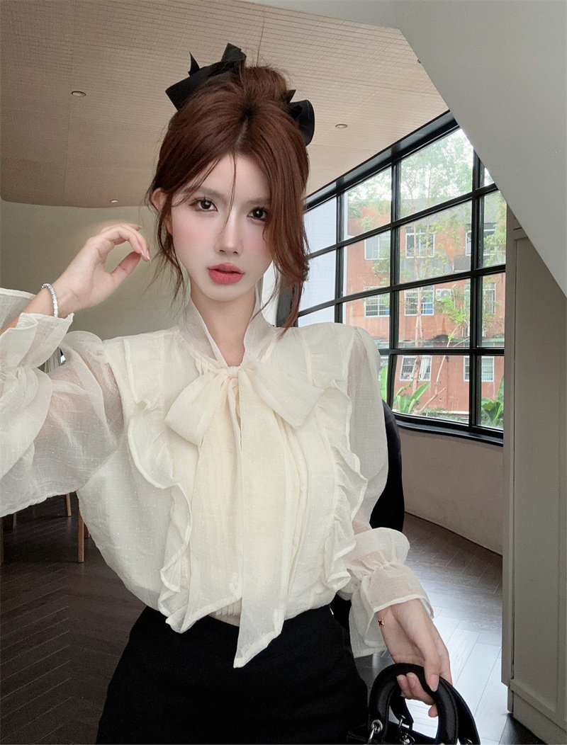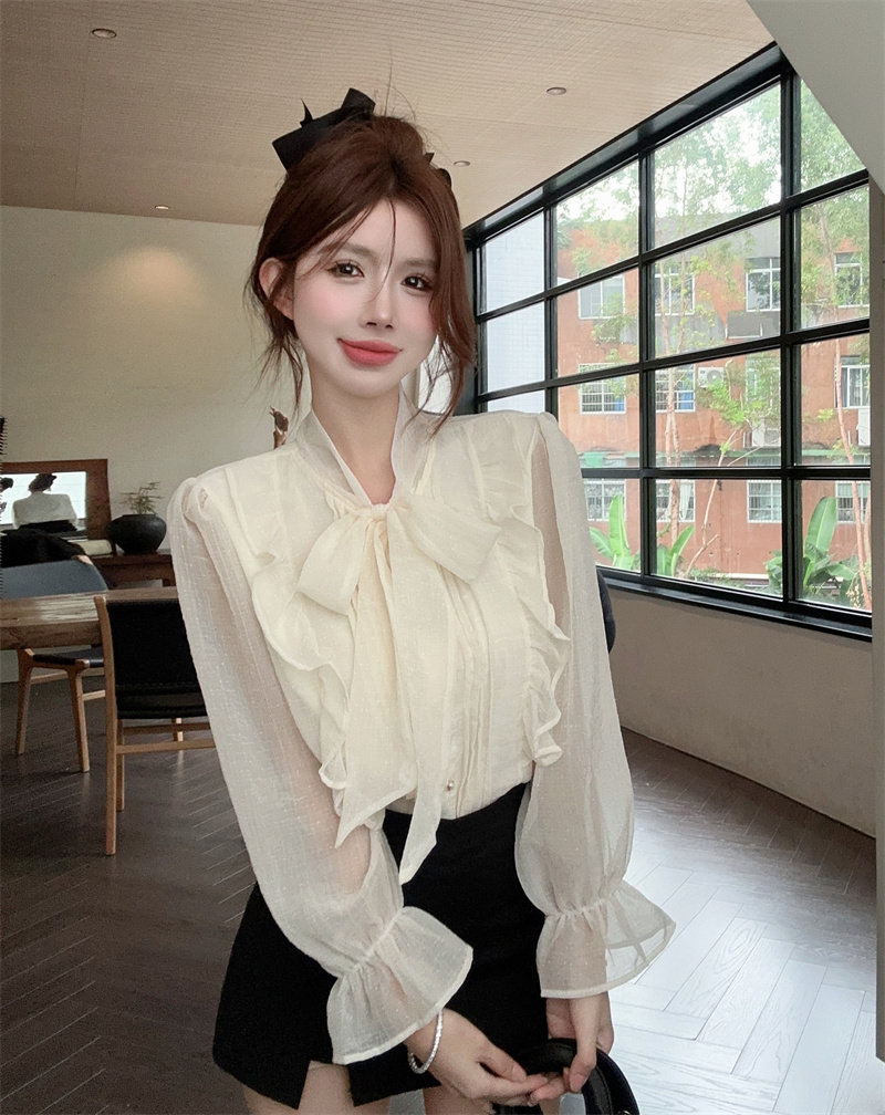 雪紡衫法式修身荷葉邊長袖襯衫別致獨特上衣女士秋季新款漂亮小衫
