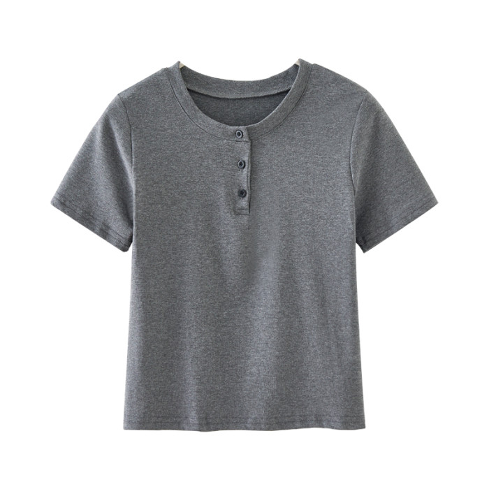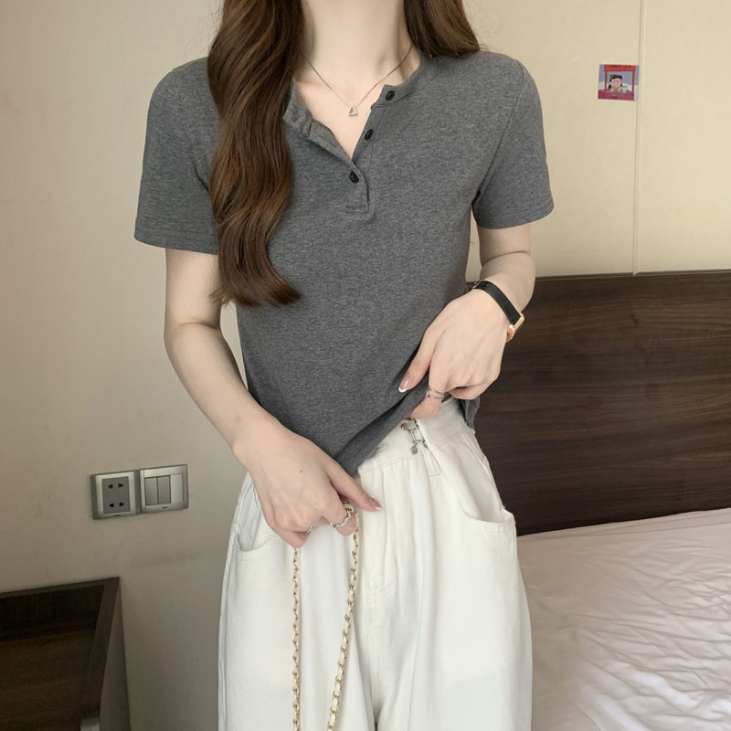 基礎款紐釦短袖t恤女小個子ins潮夏季新款韓版修身半袖高腰上衣短