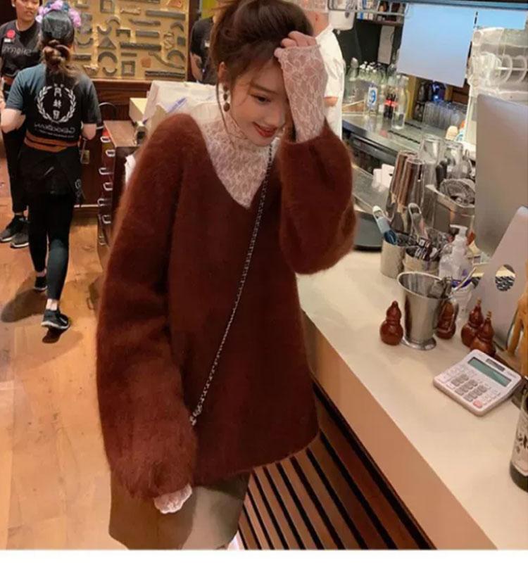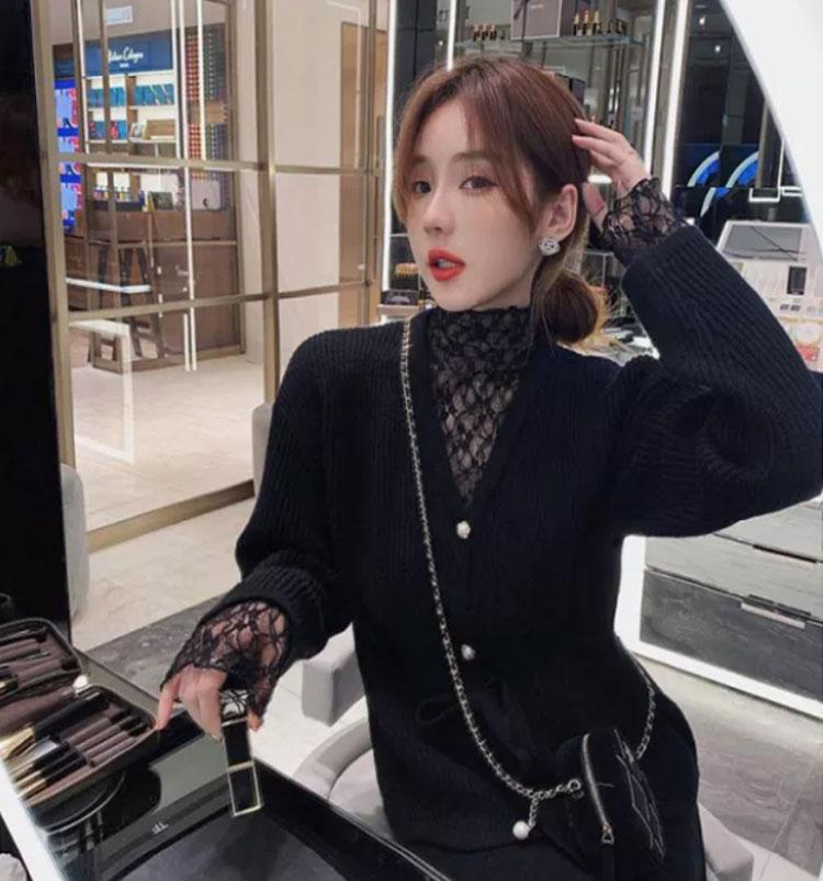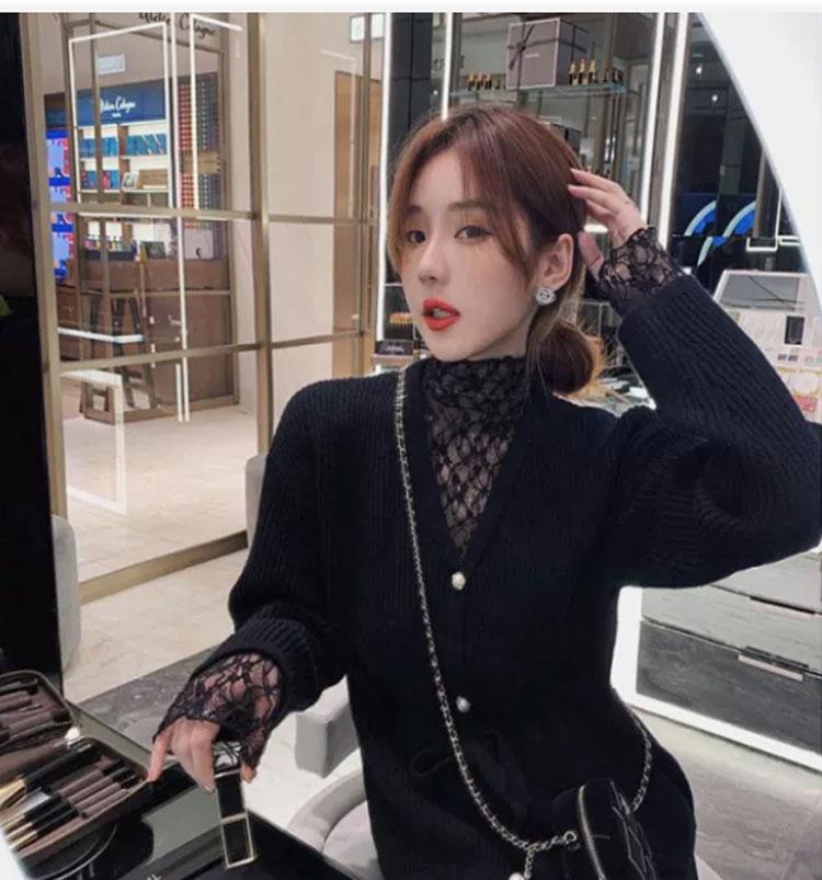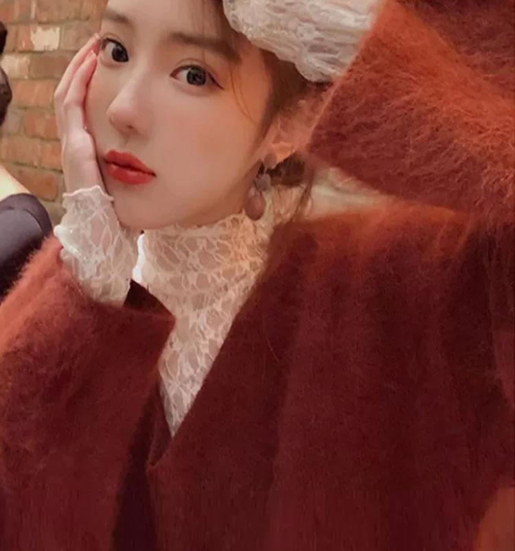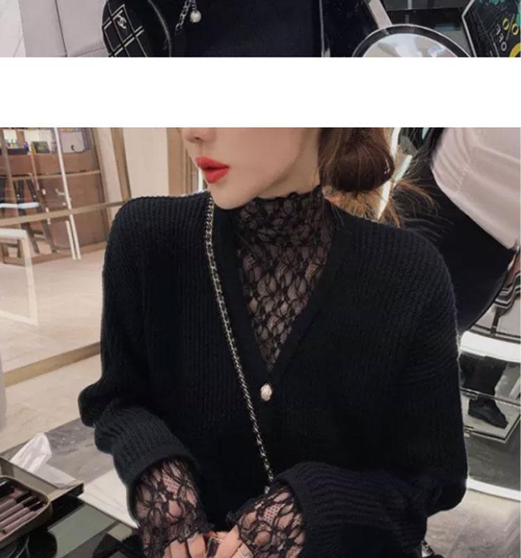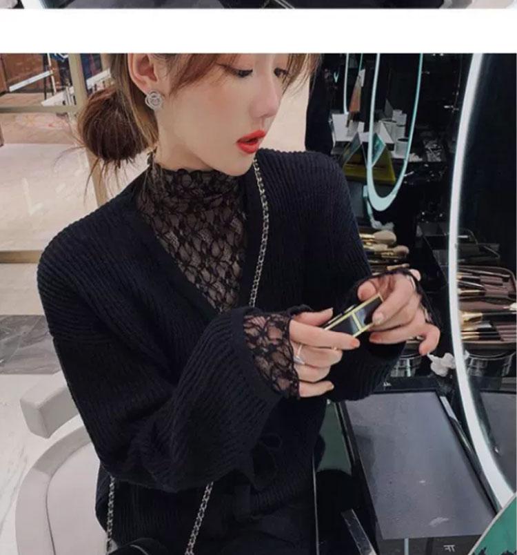 半高領蕾絲打底衫女秋冬2025新款配皮草內搭洋氣紗衣網紗薄紗上衣