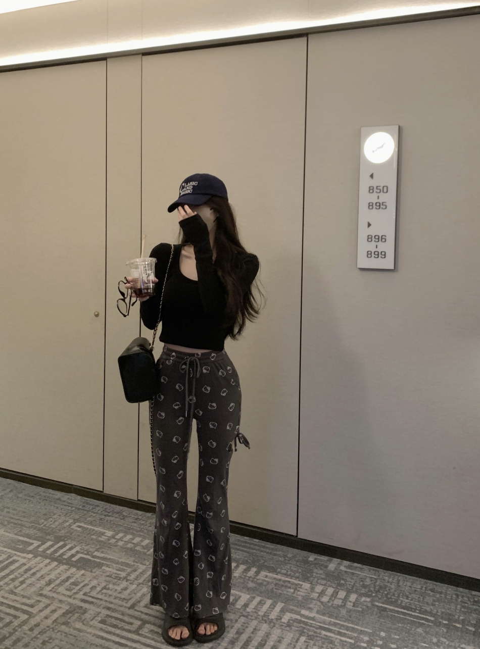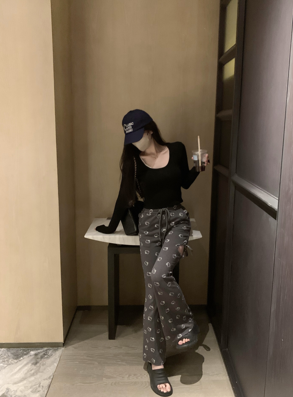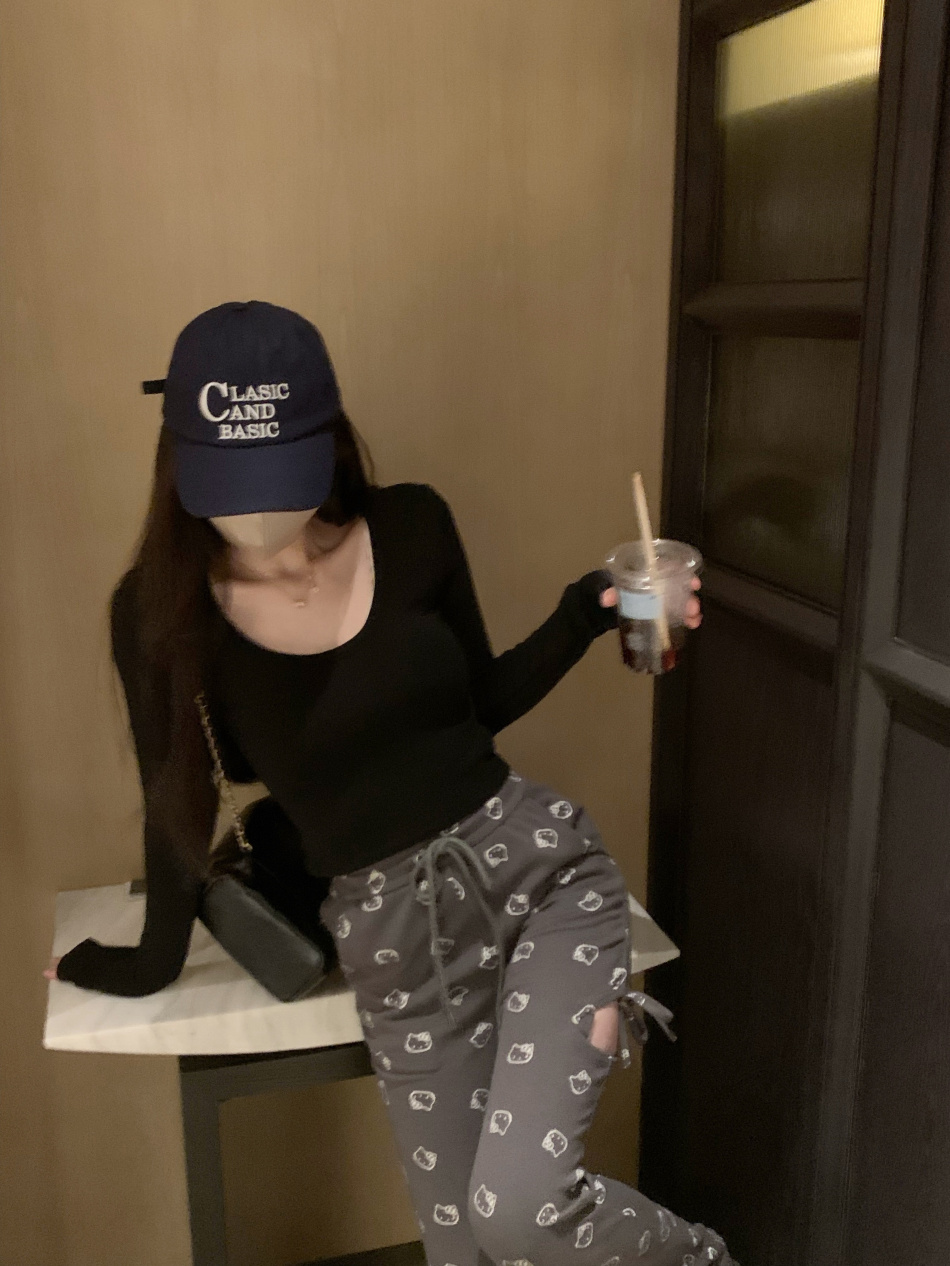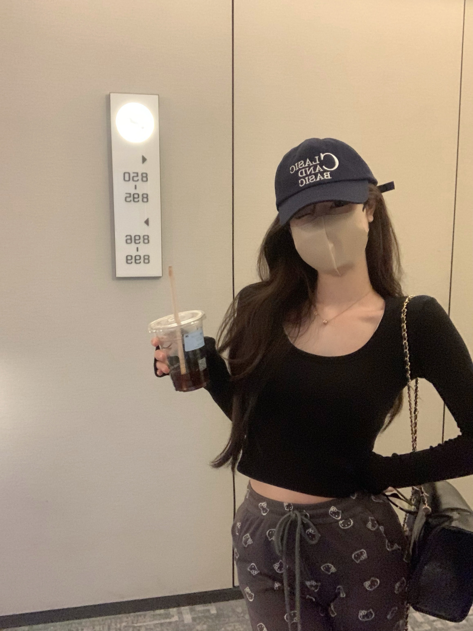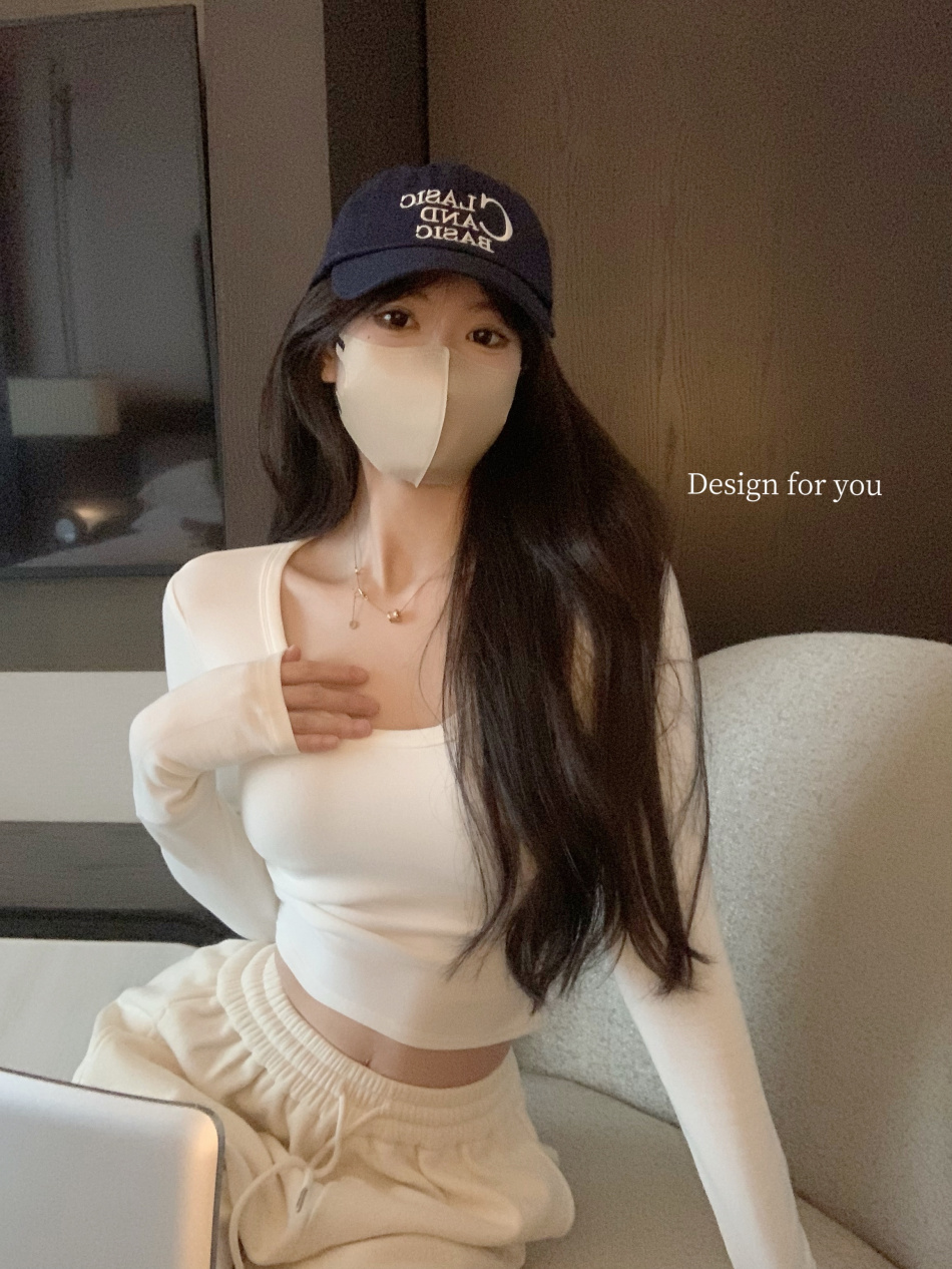 辣妹u領磨毛咖色打底衫女秋冬新款韓版修身性感薄絨長袖t恤女短款