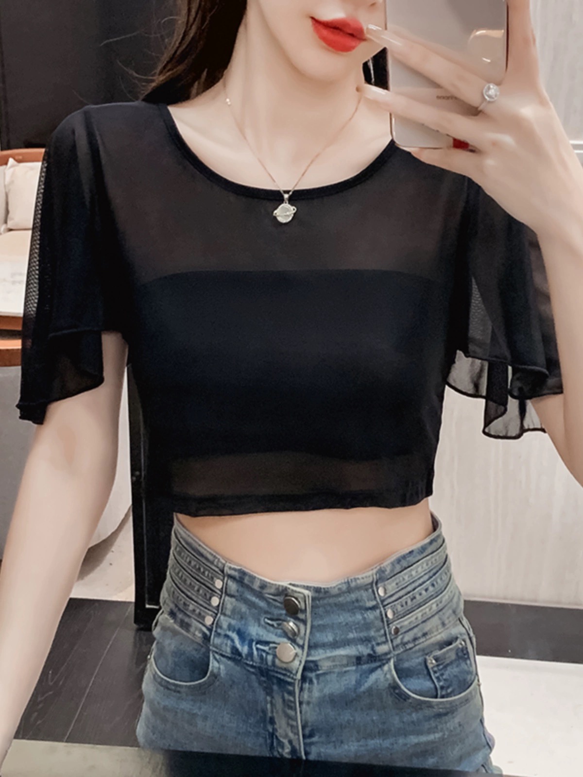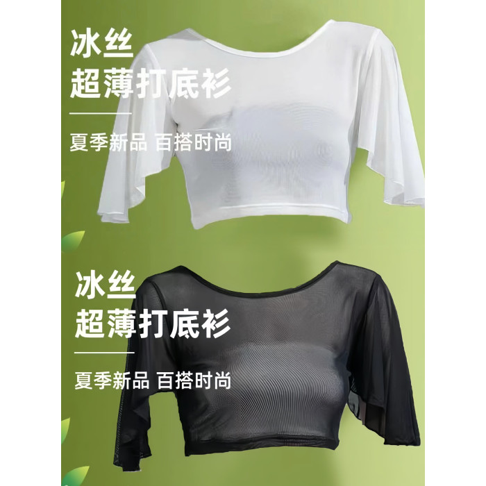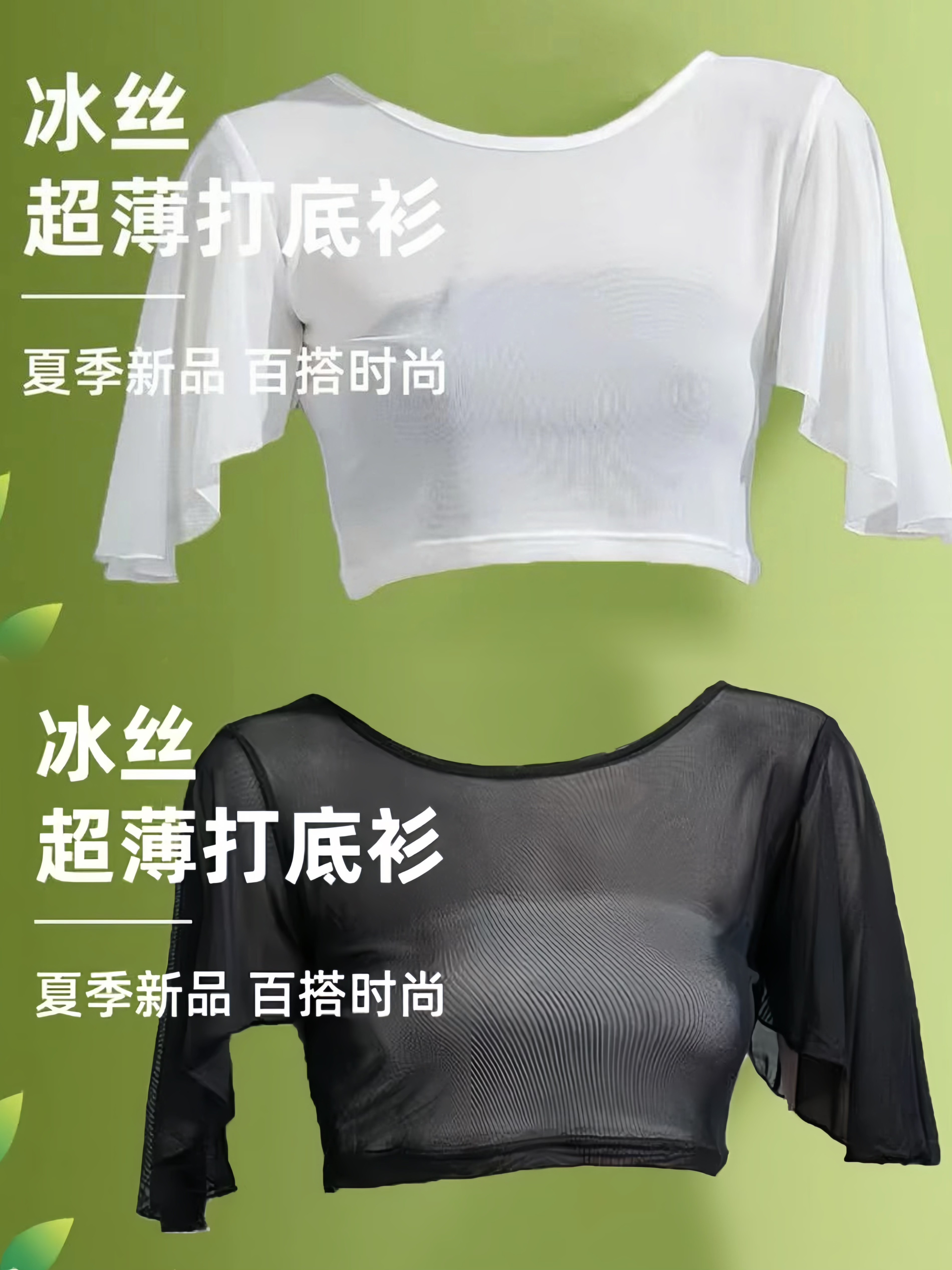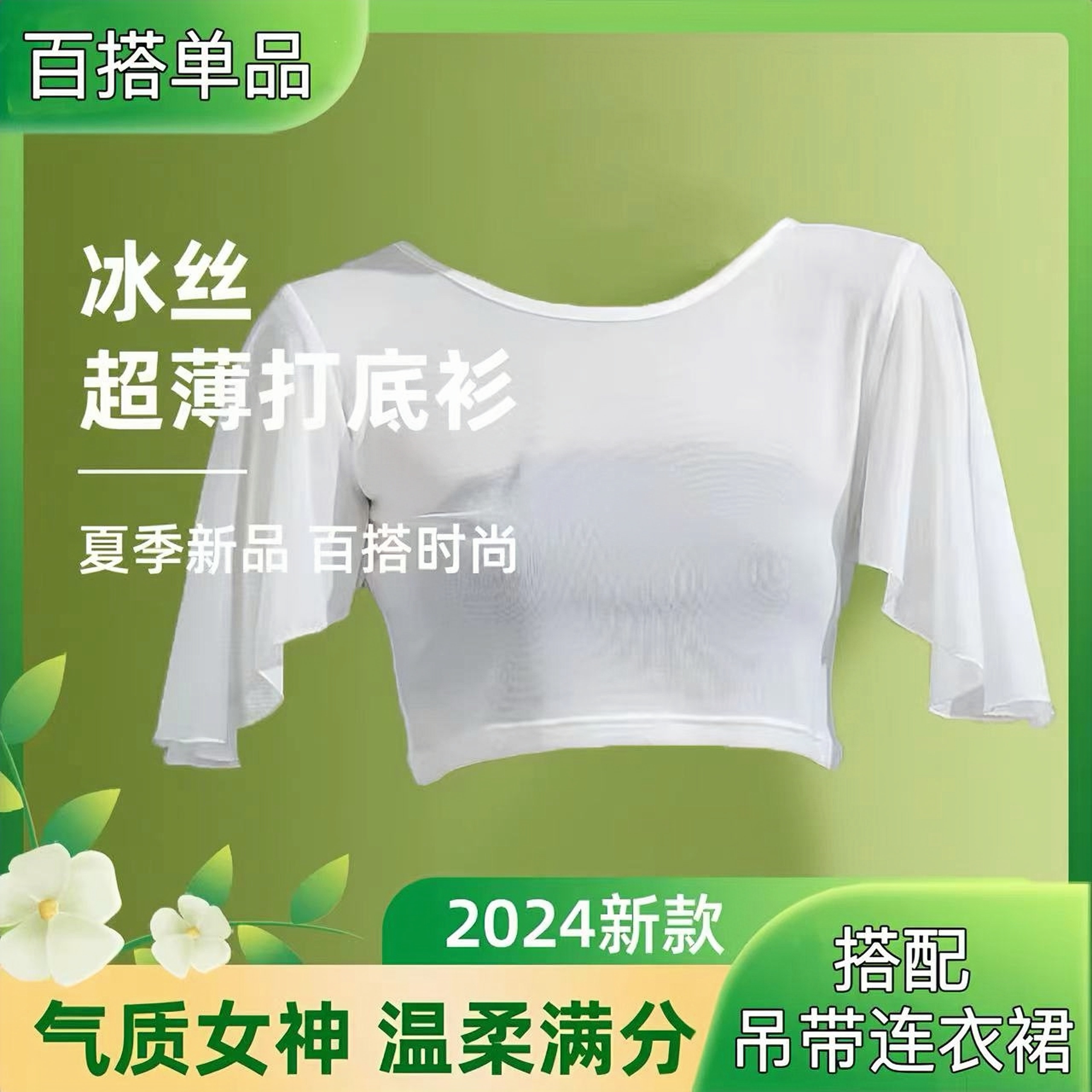 2025夏季新款打底短款披肩外穿內搭女搭吊帶裙遮手臂圓領短袖罩衫