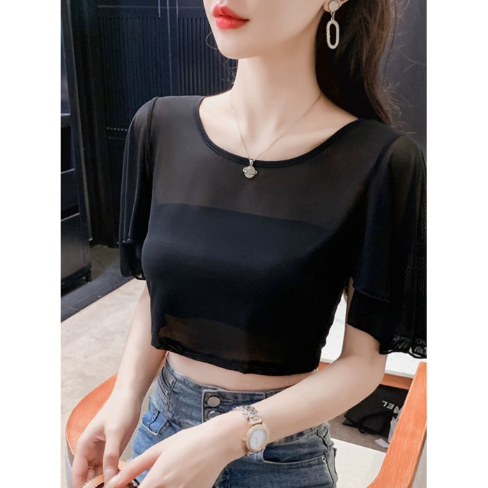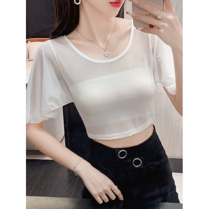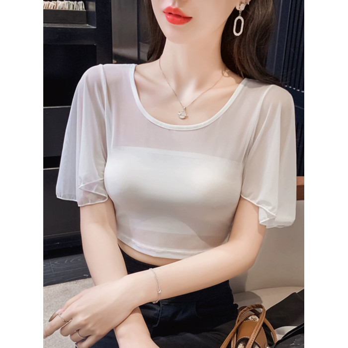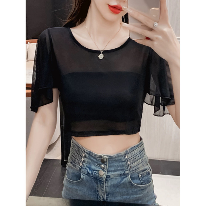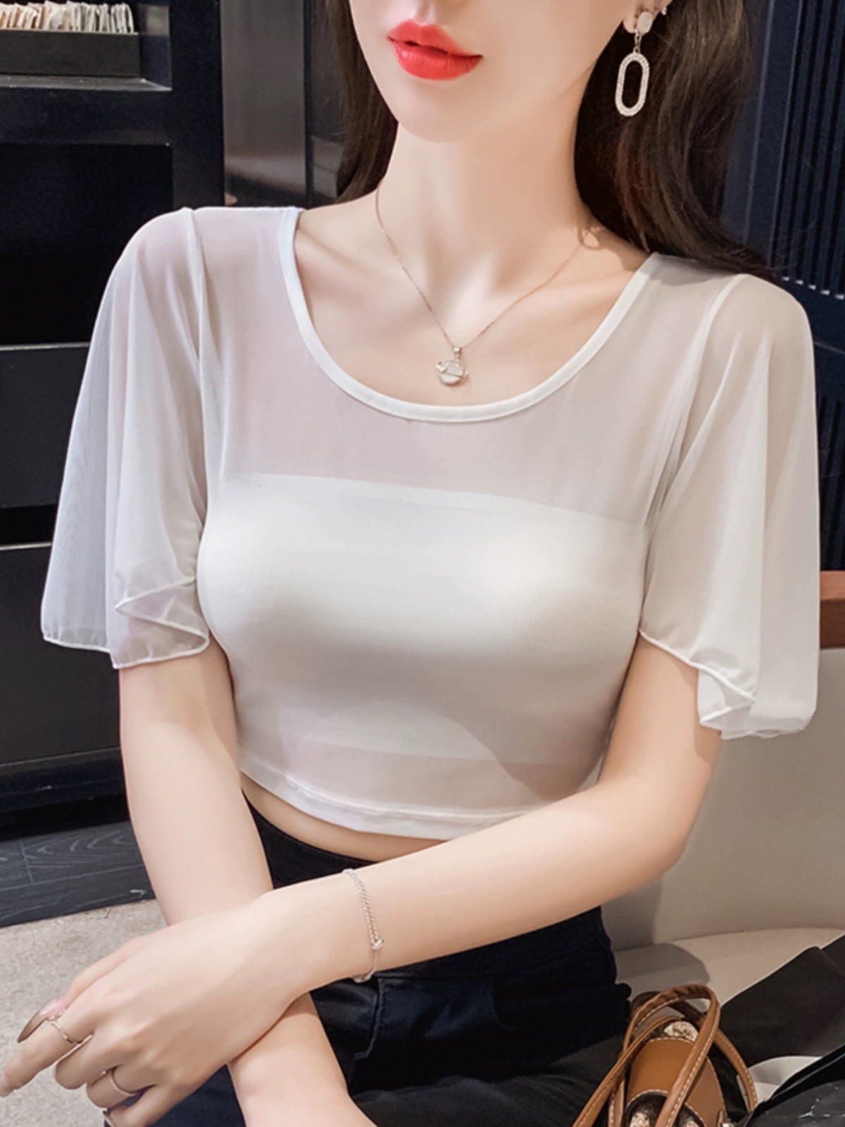 2025夏季新款打底短款披肩外穿內搭女搭吊帶裙遮手臂圓領短袖罩衫