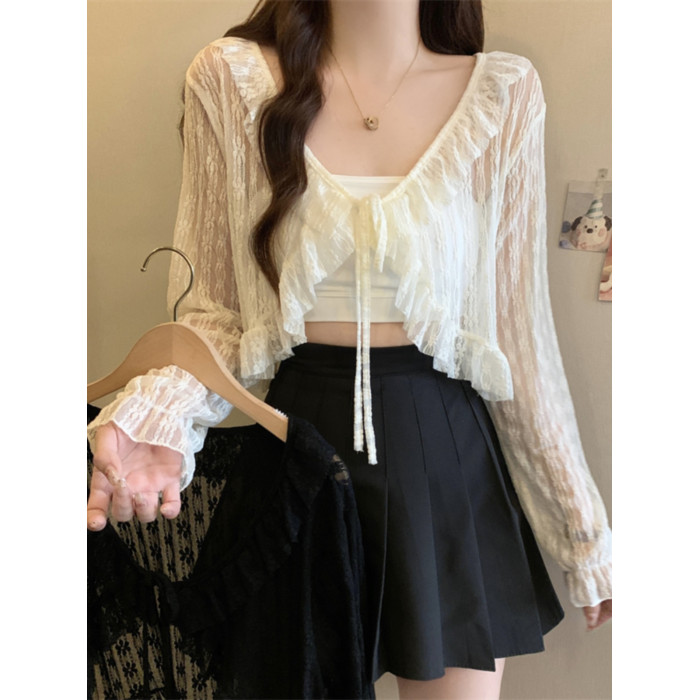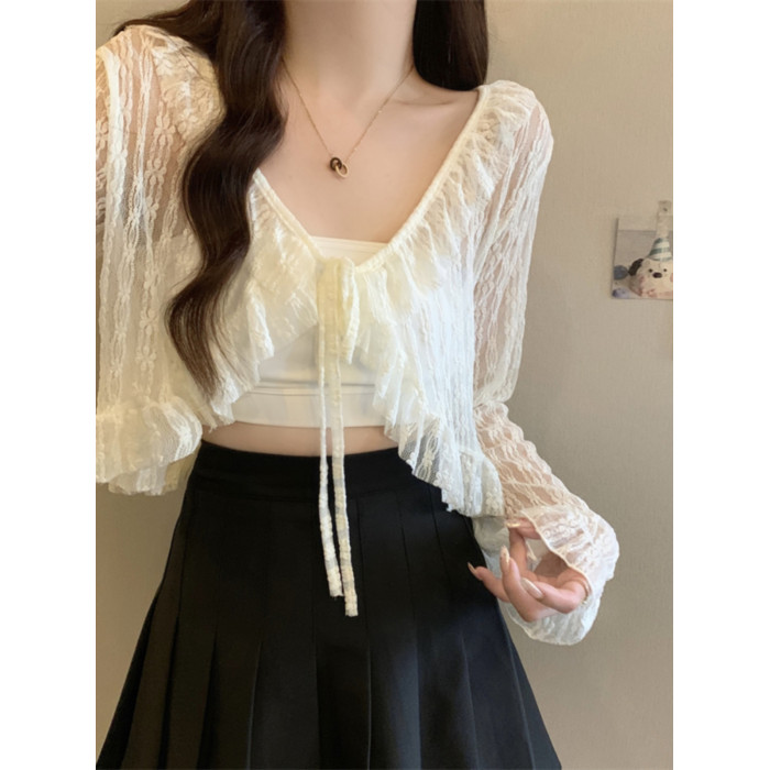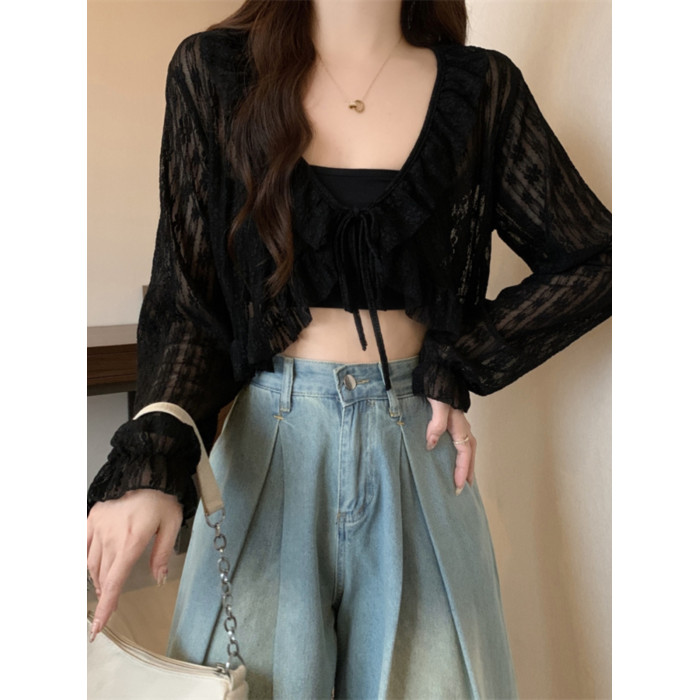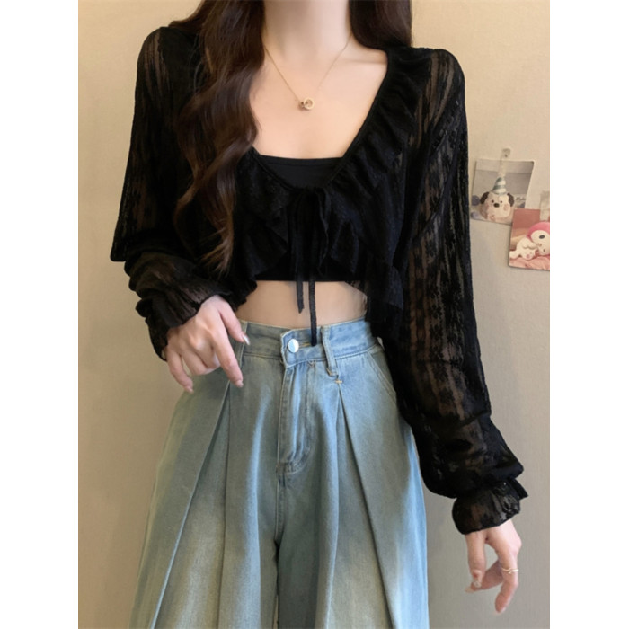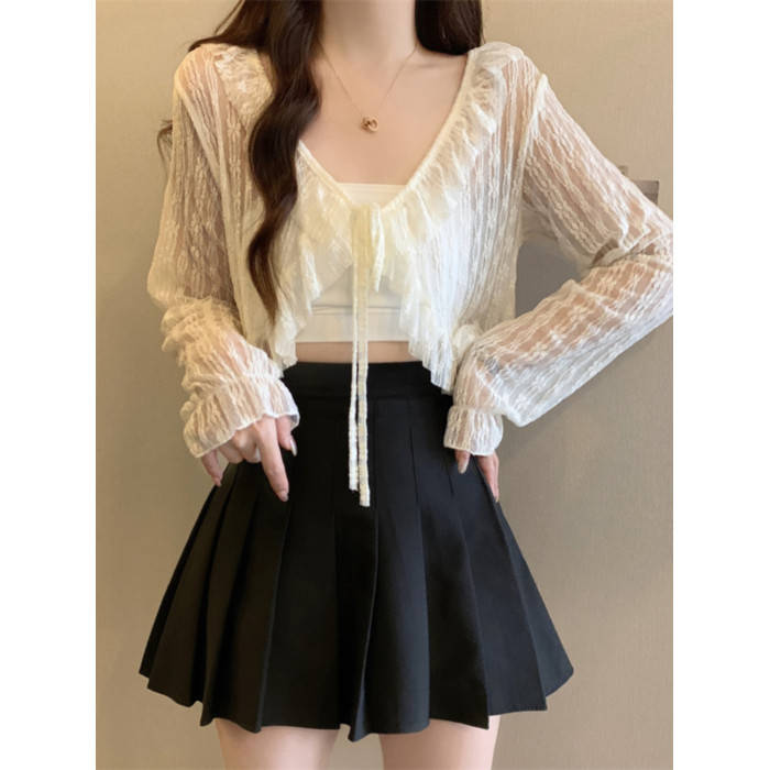 大碼長袖雪紡衫女夏季顯瘦百搭上衣胖MM小衆薄款外搭坎肩防曬襯衣