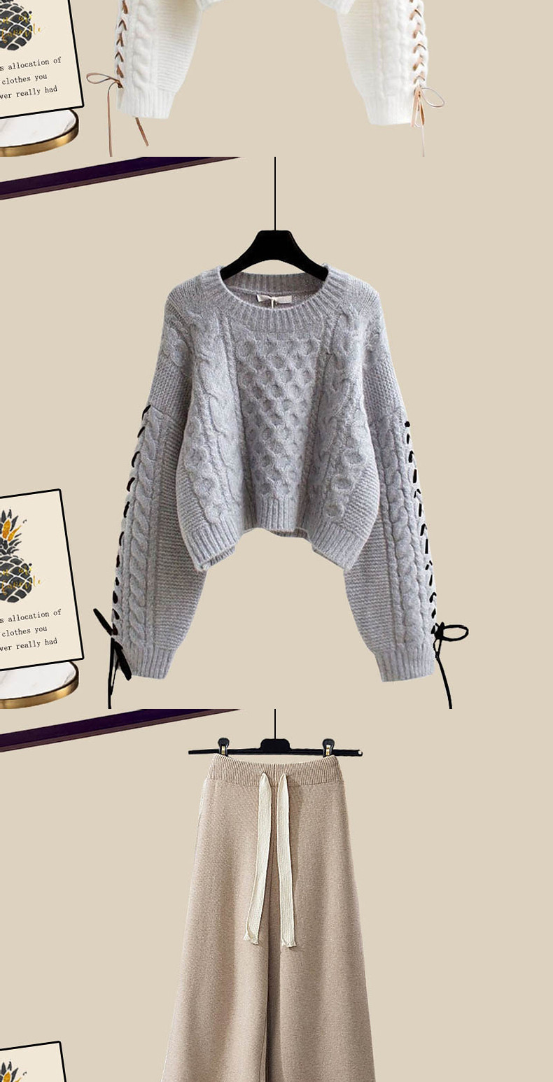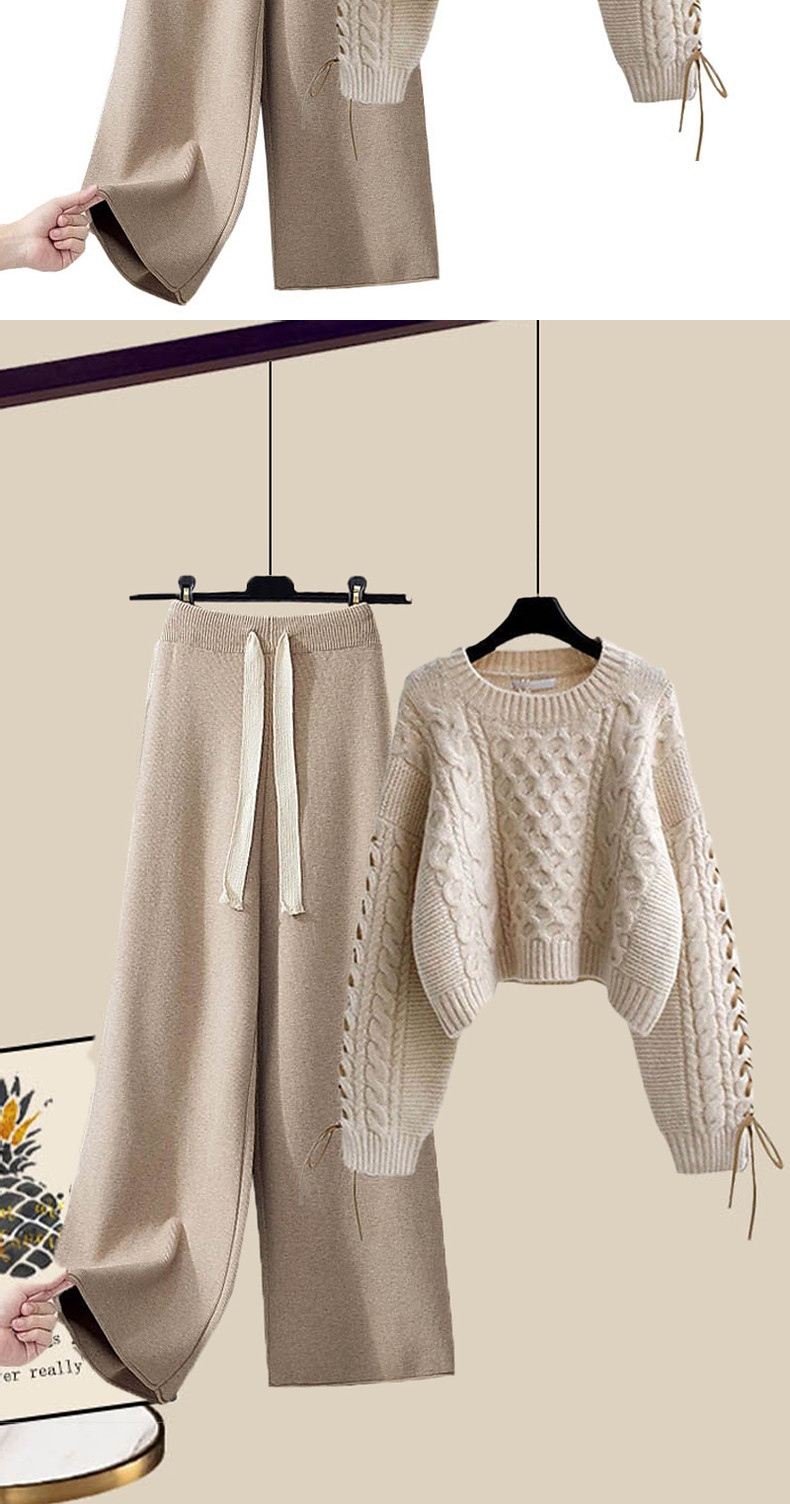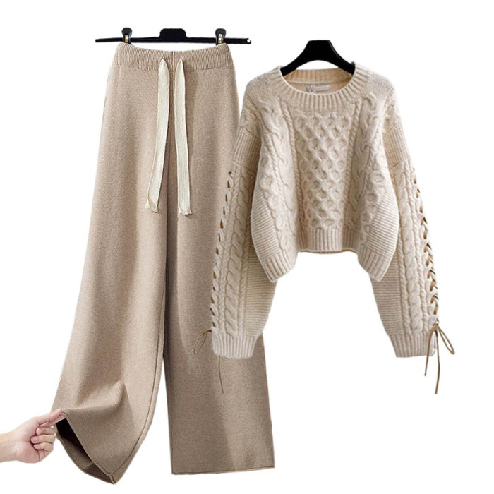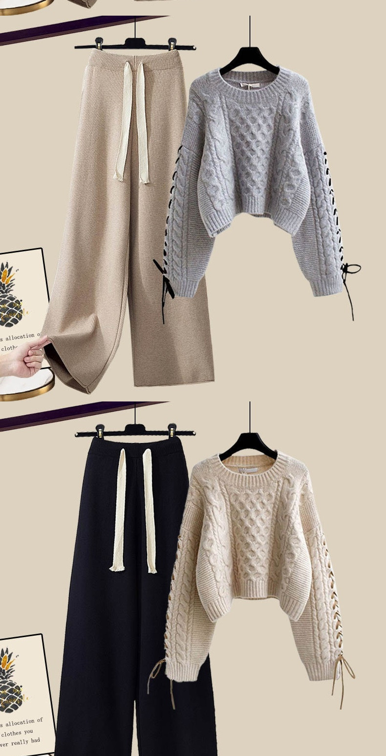 套裝秋冬女2025新款休閒濶腿褲毛衣茶系穿搭冬裝搭配高級感秋裝