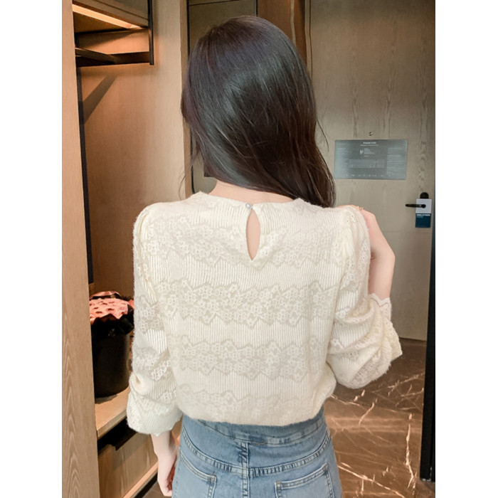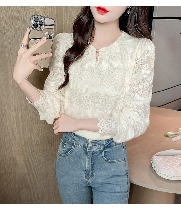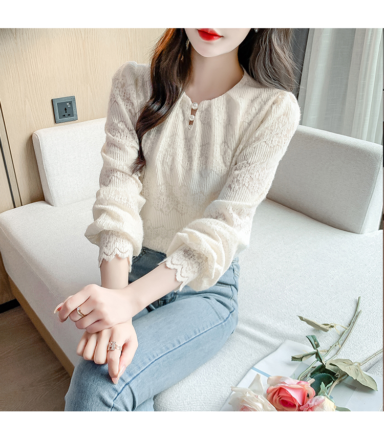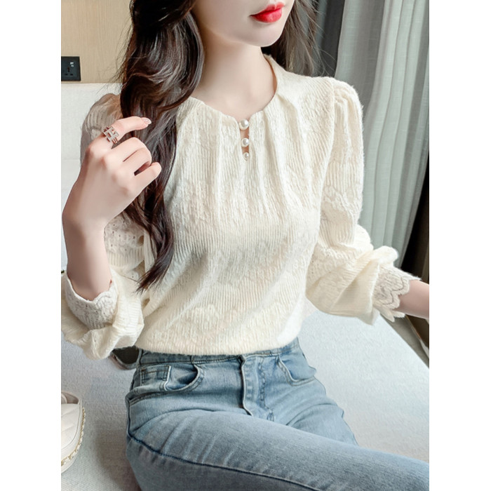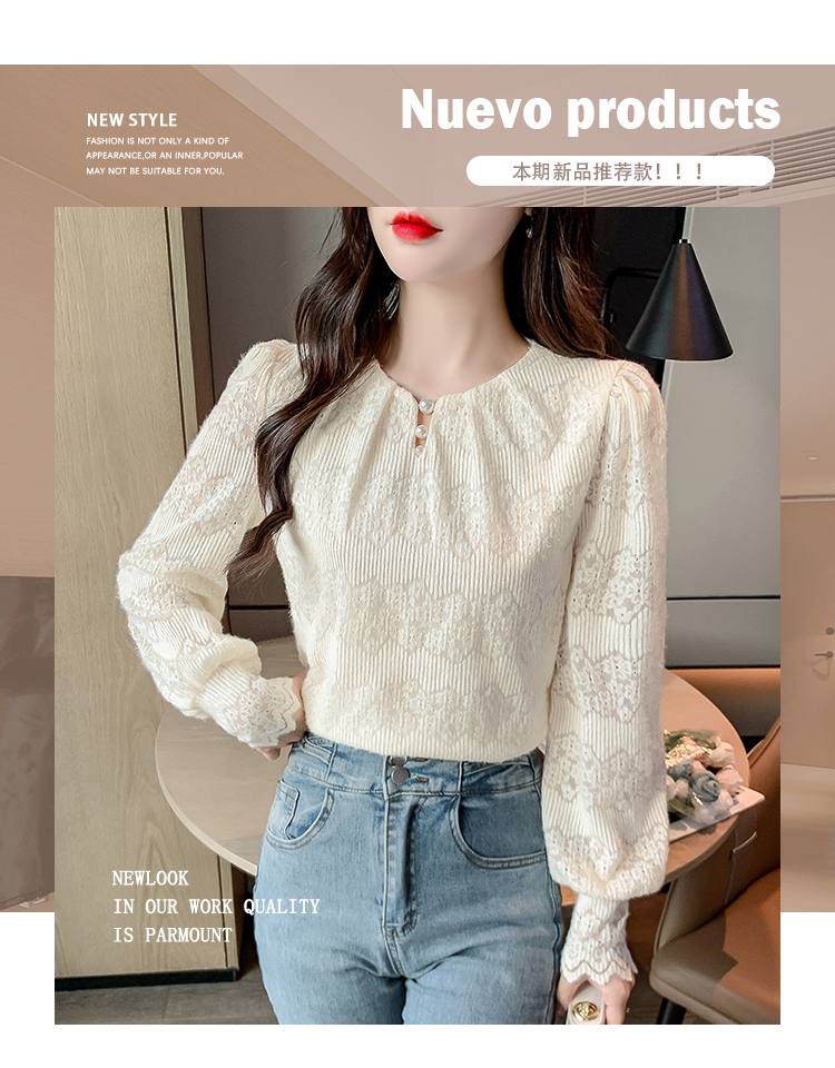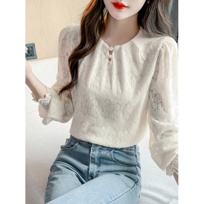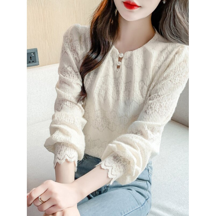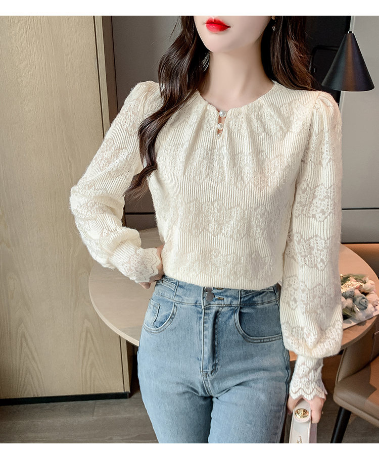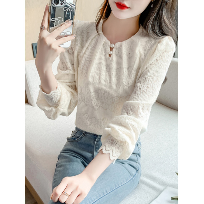 春秋新款別致漂亮蕾絲衫女長袖打底衫內搭外穿洋氣小衫高級感上衣