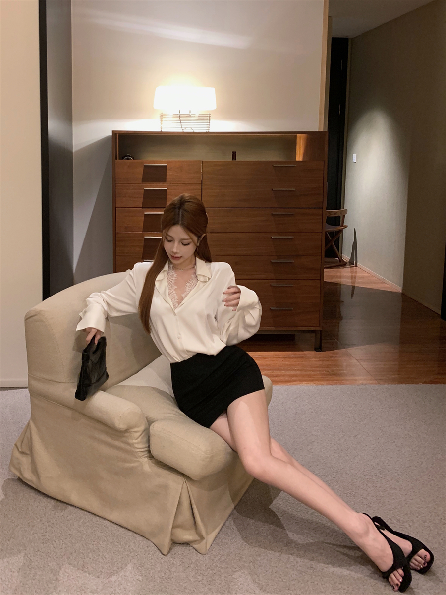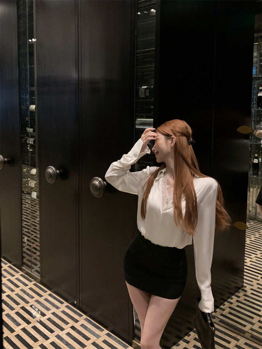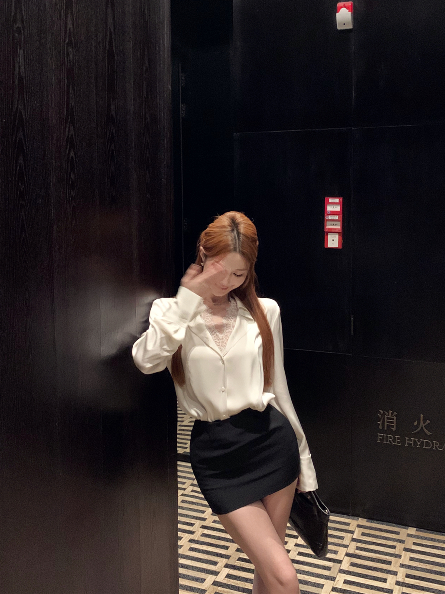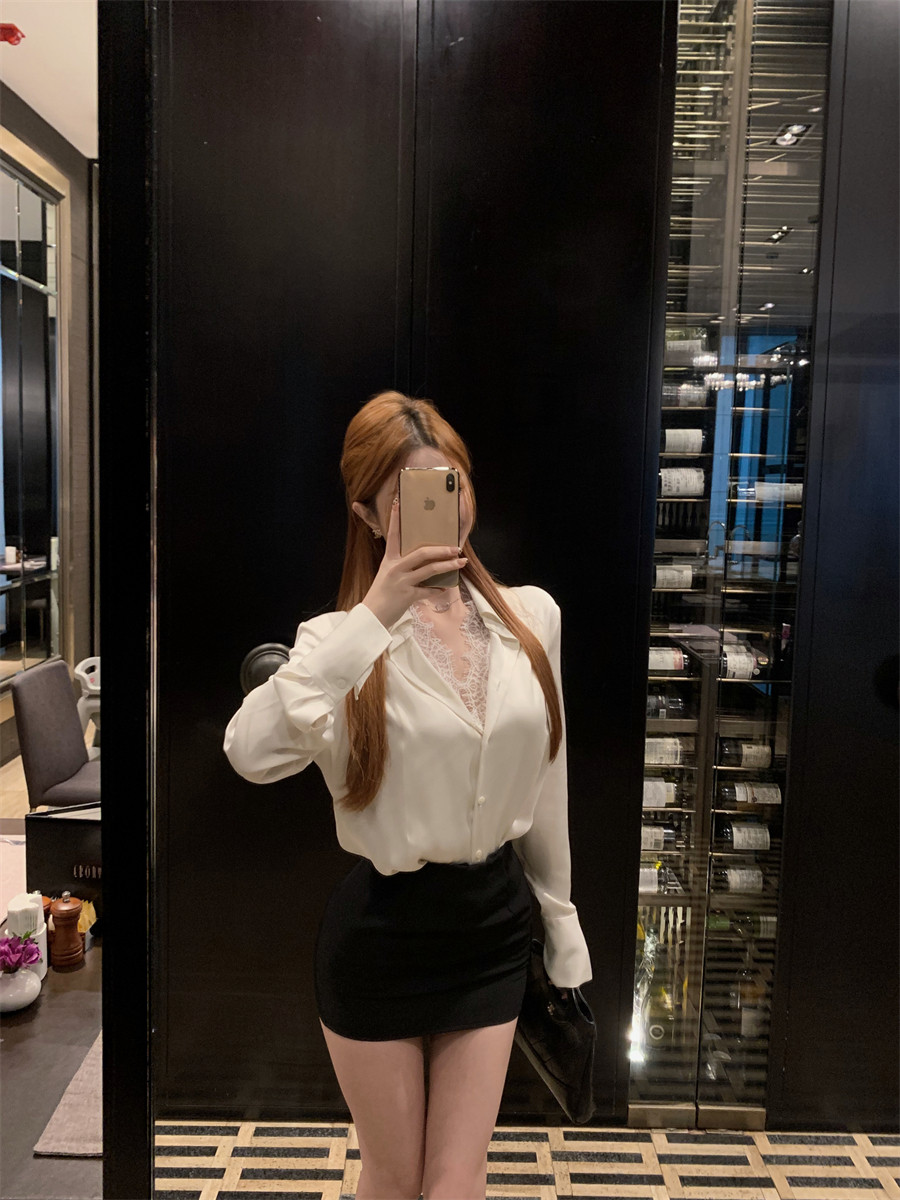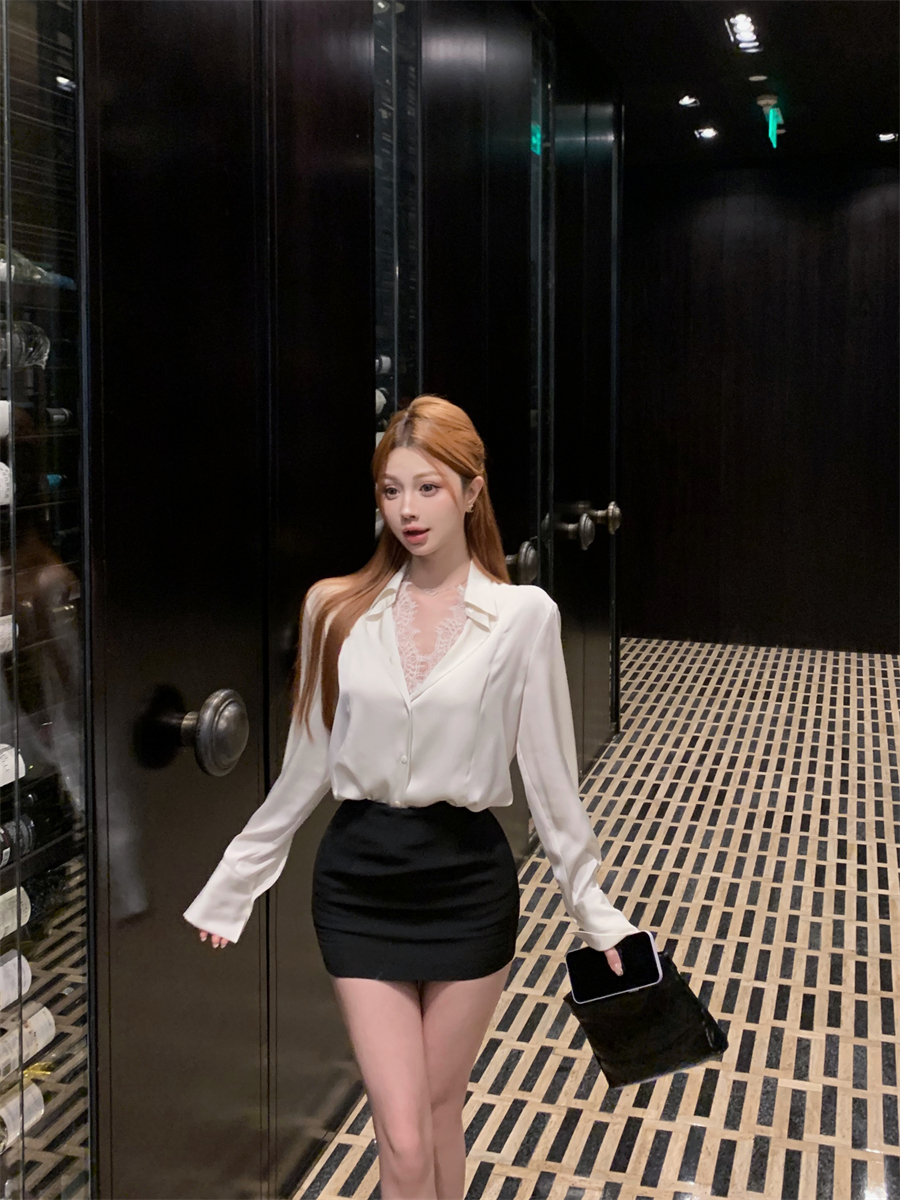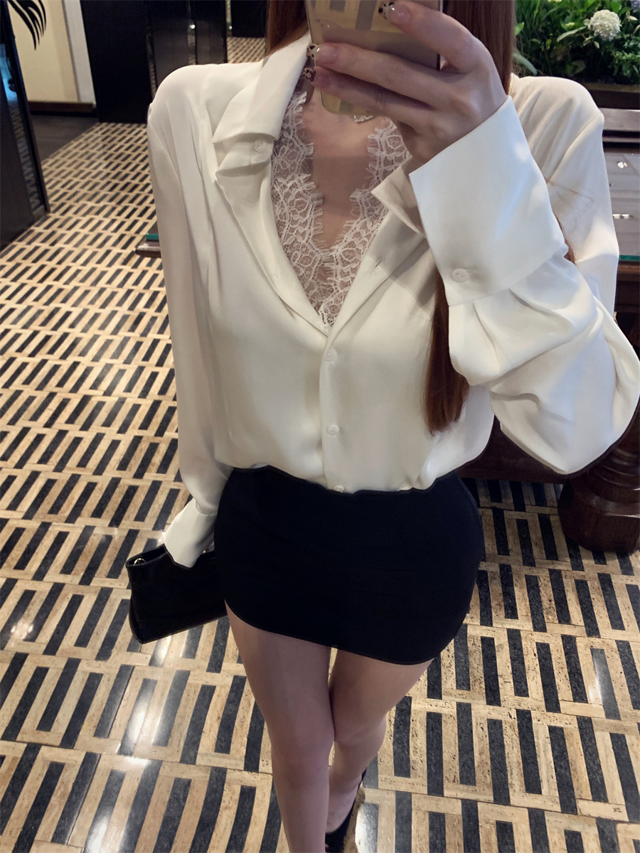 蕾絲假兩件白色襯衫女設計感小衆秋季獨特絕美上衣高級感緞面襯衣