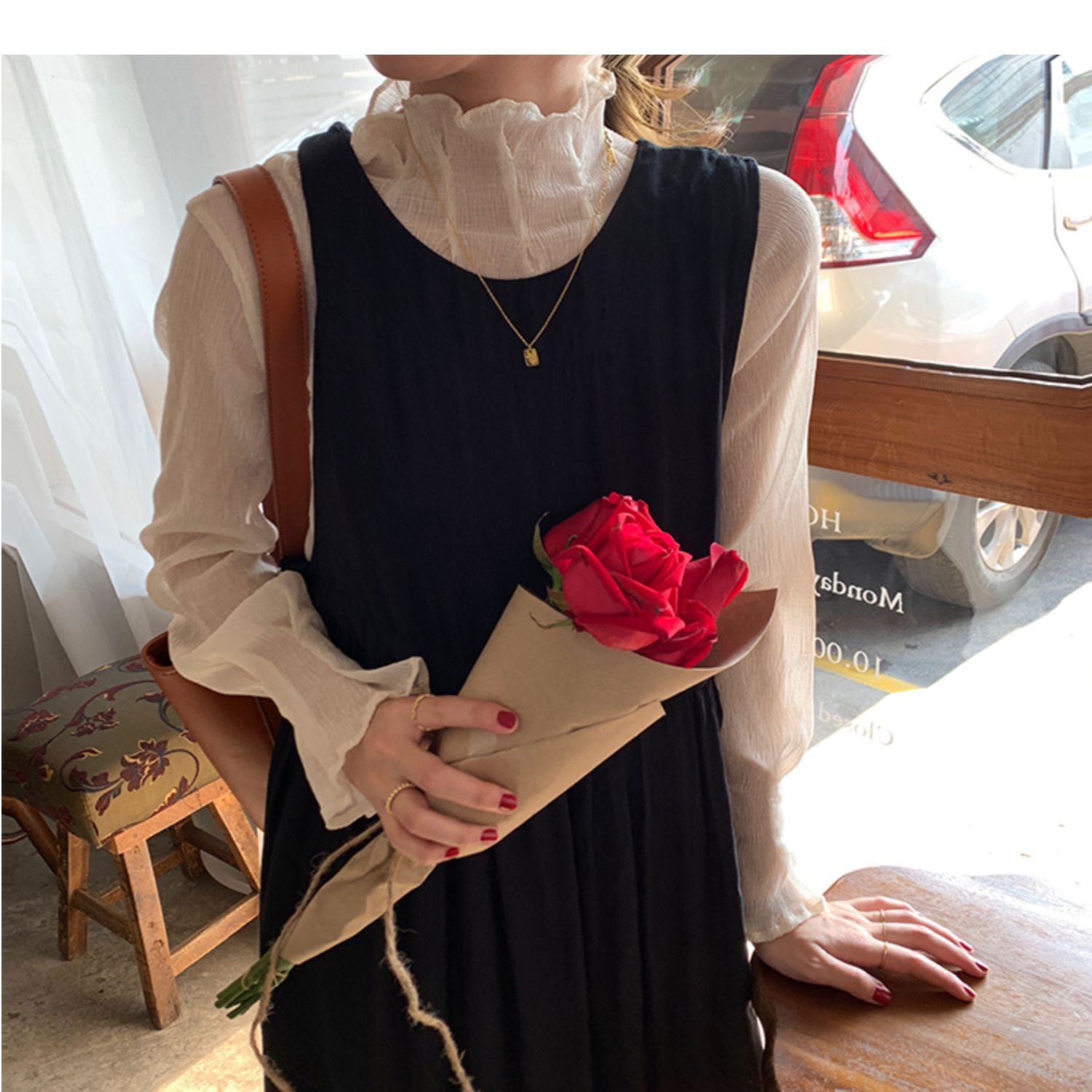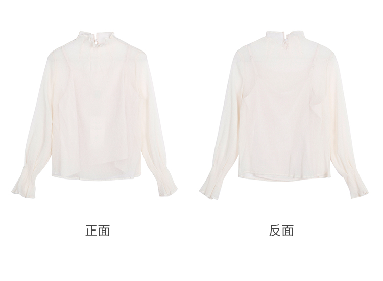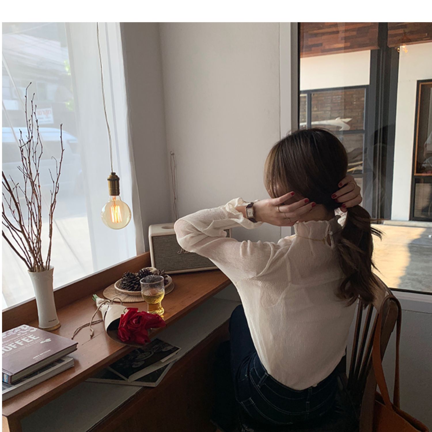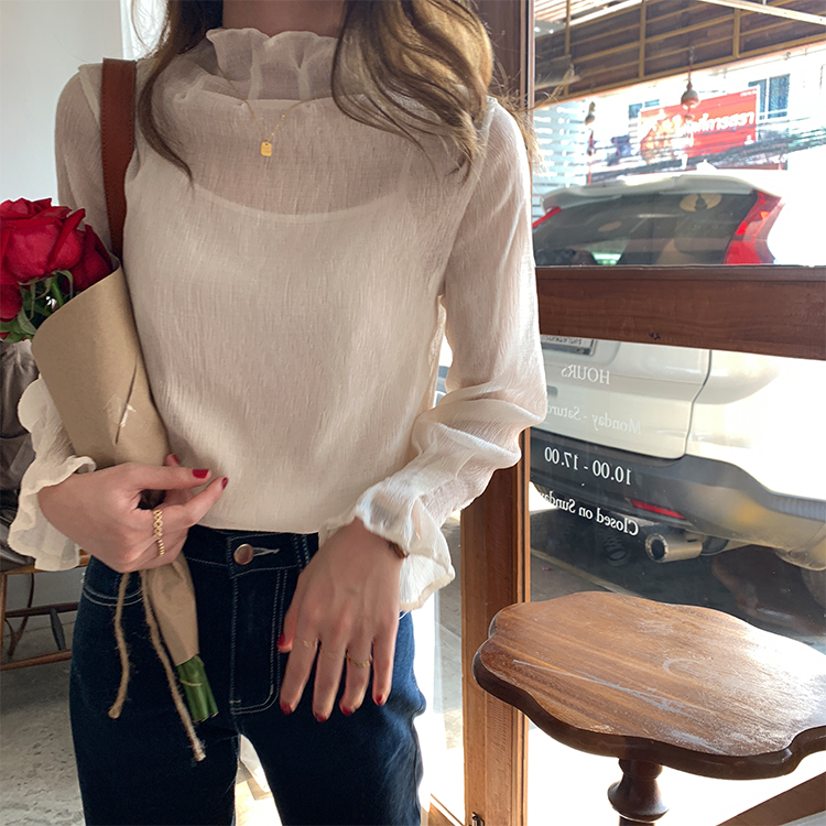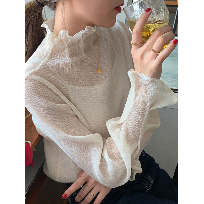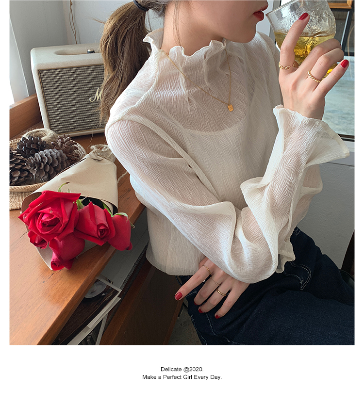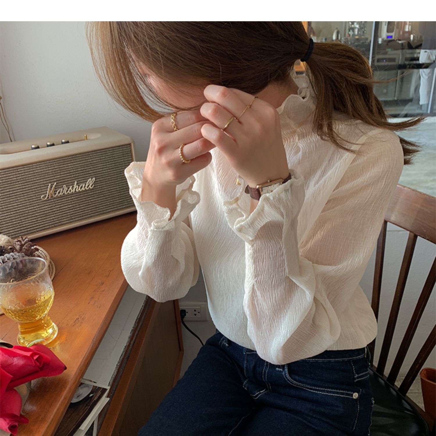 2025秋季新款韓版內搭上衣洋氣木耳邊高領百搭雪紡網紗打底衫女