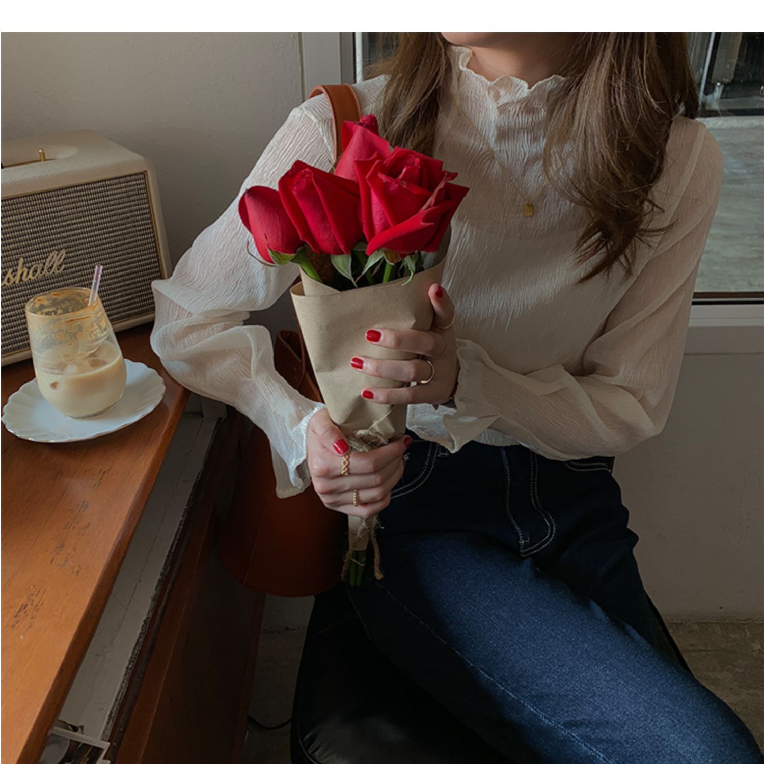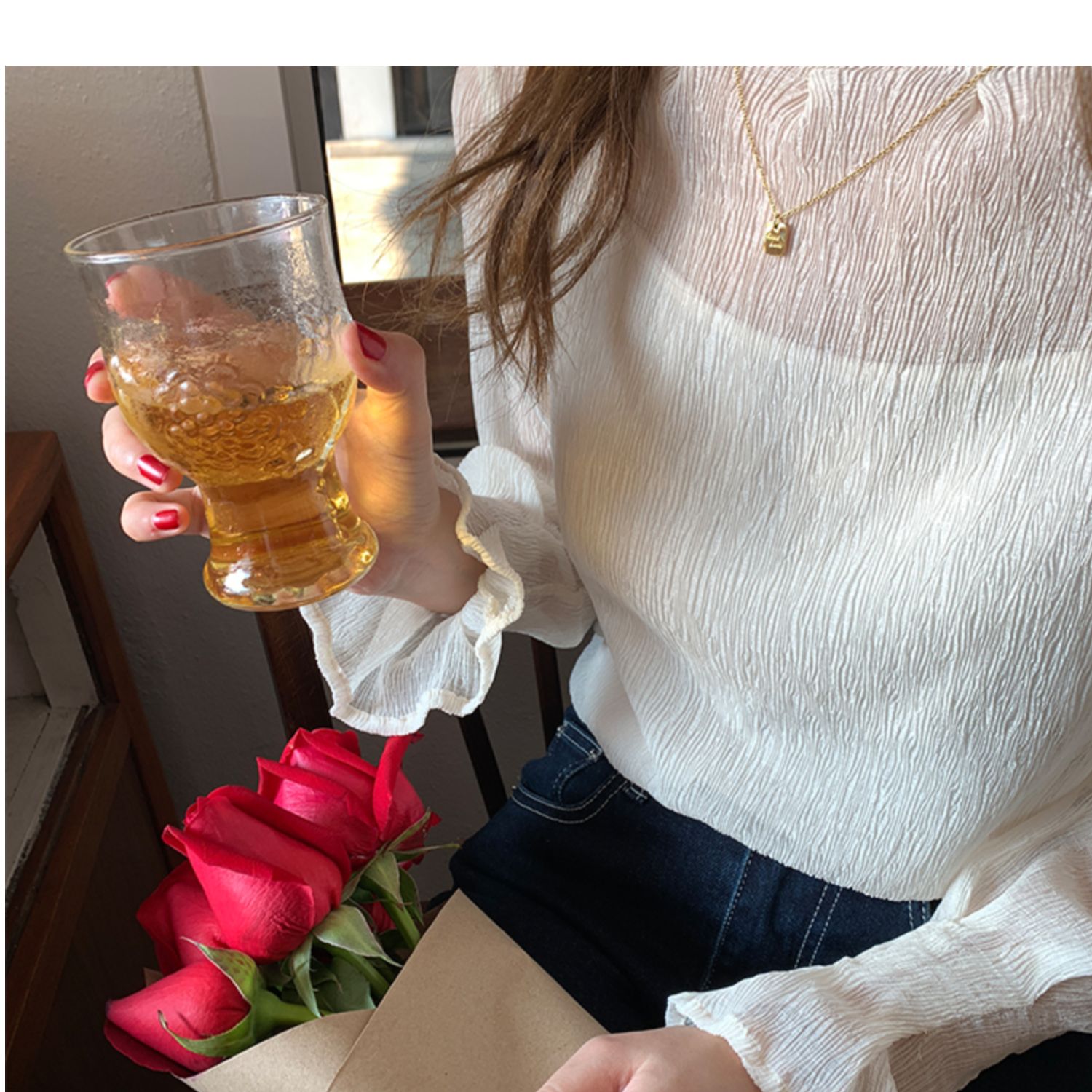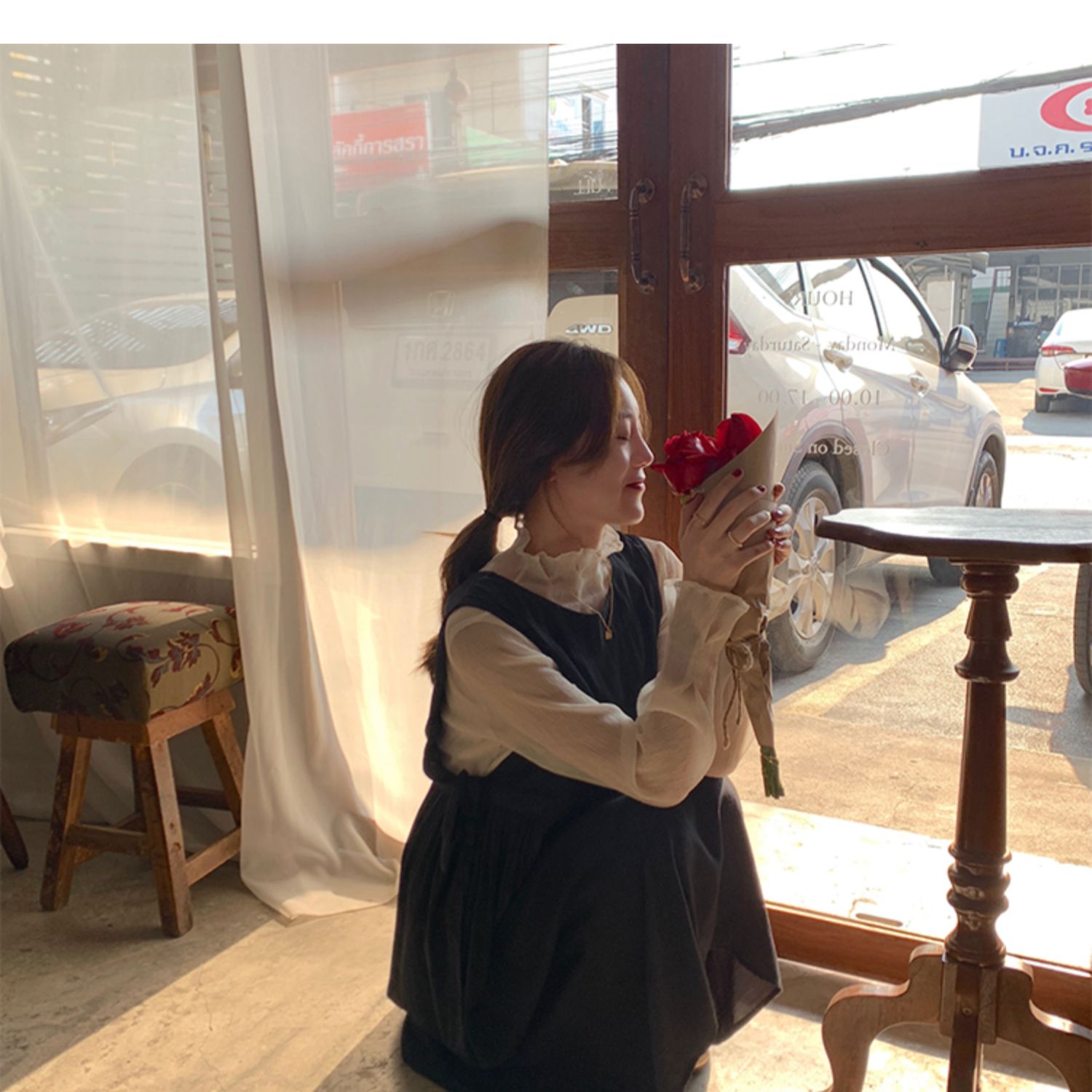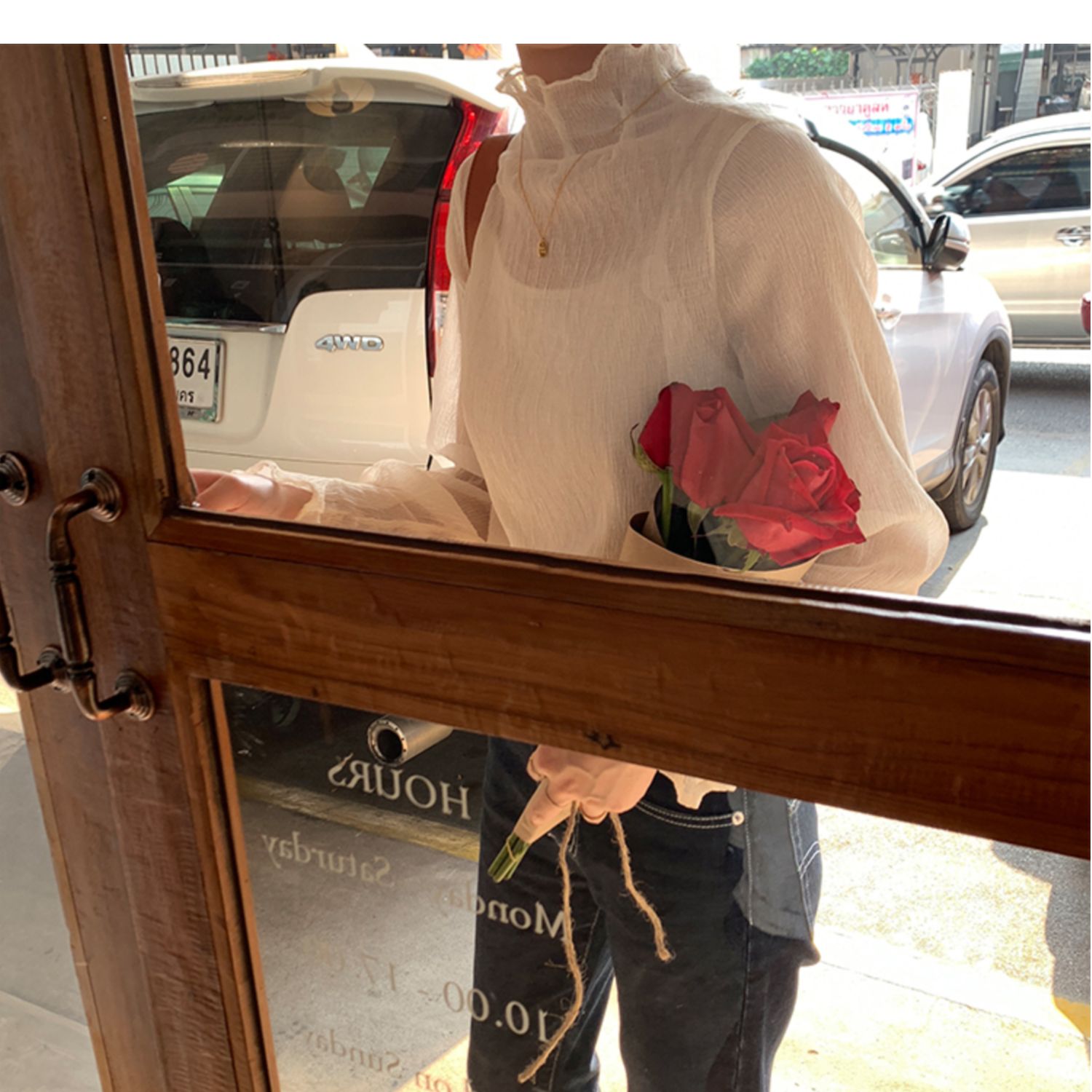 2025秋季新款韓版內搭上衣洋氣木耳邊高領百搭雪紡網紗打底衫女