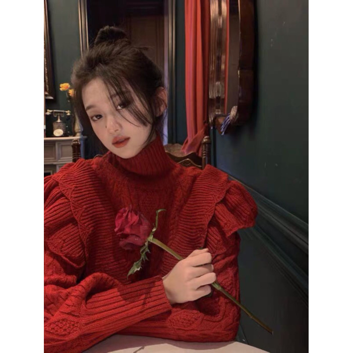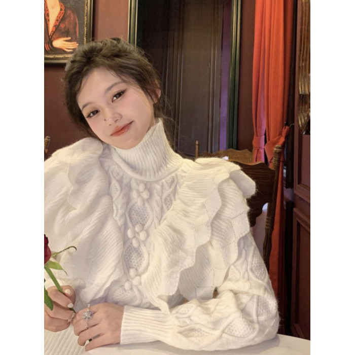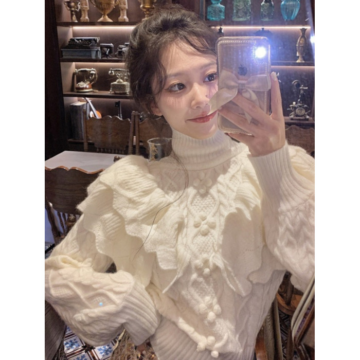 宮廷風加厚高領麻花毛衣女2025新款秋冬很仙洋氣別致外套上衣ins