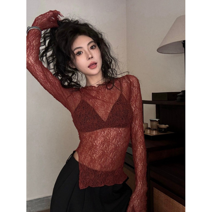 春裝女新款炸街減齡時尚高級套裝蕾絲衫曡加吊帶背心兩件套