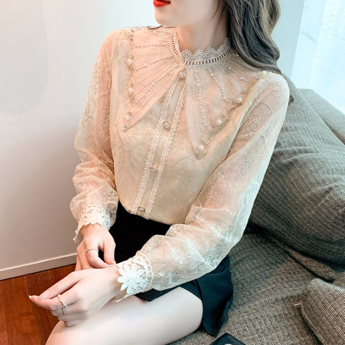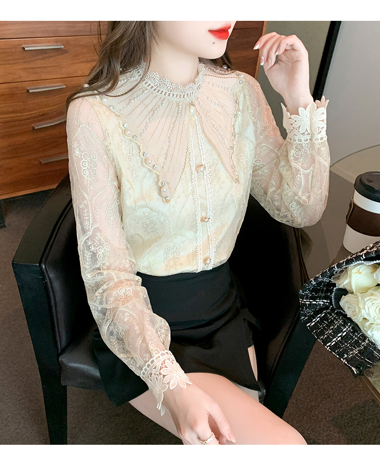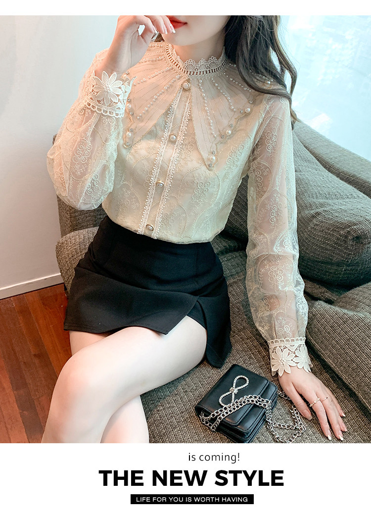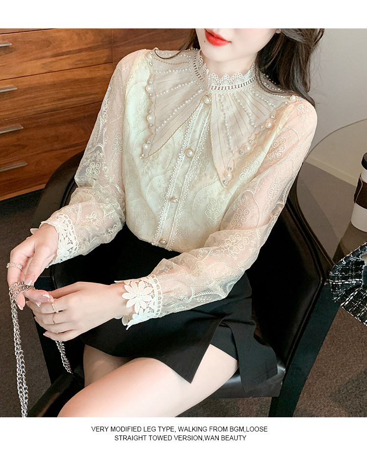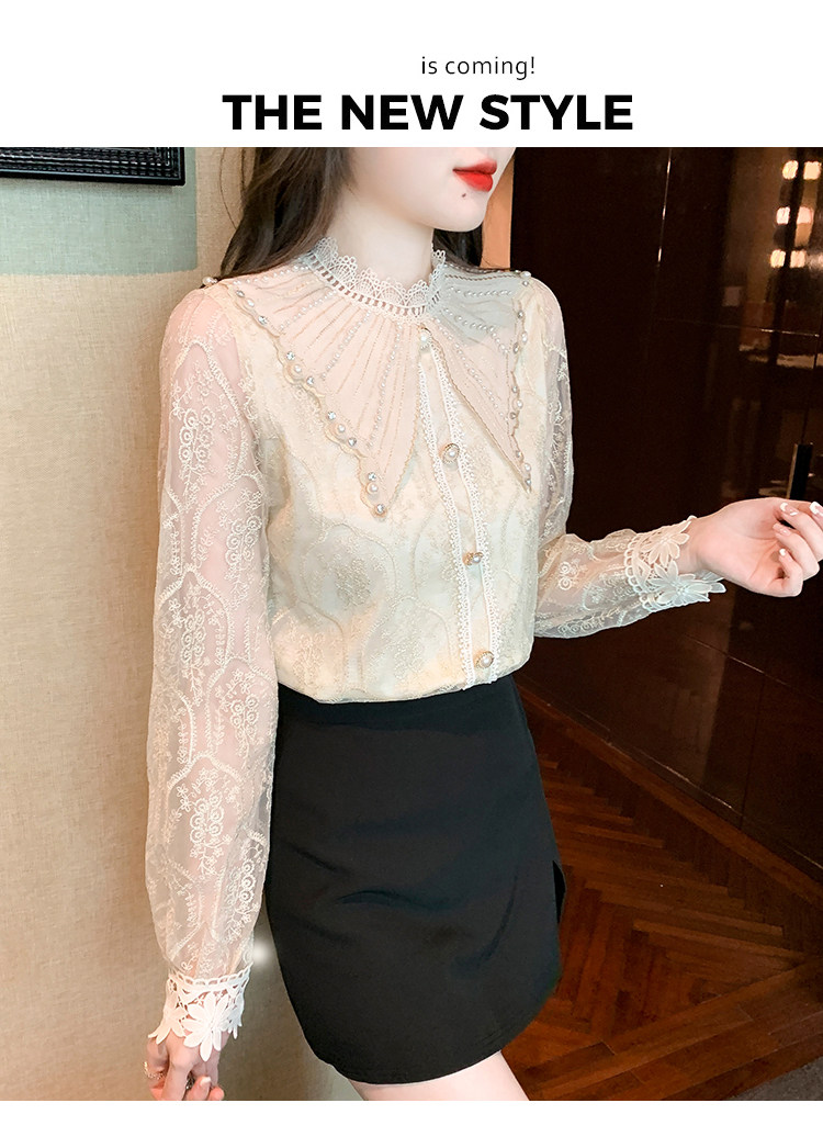 歐貨蕾絲襯衫女春秋冬裝2025年新款爆款小衫高檔時髦洋氣蕾絲上衣