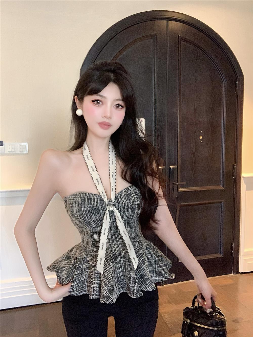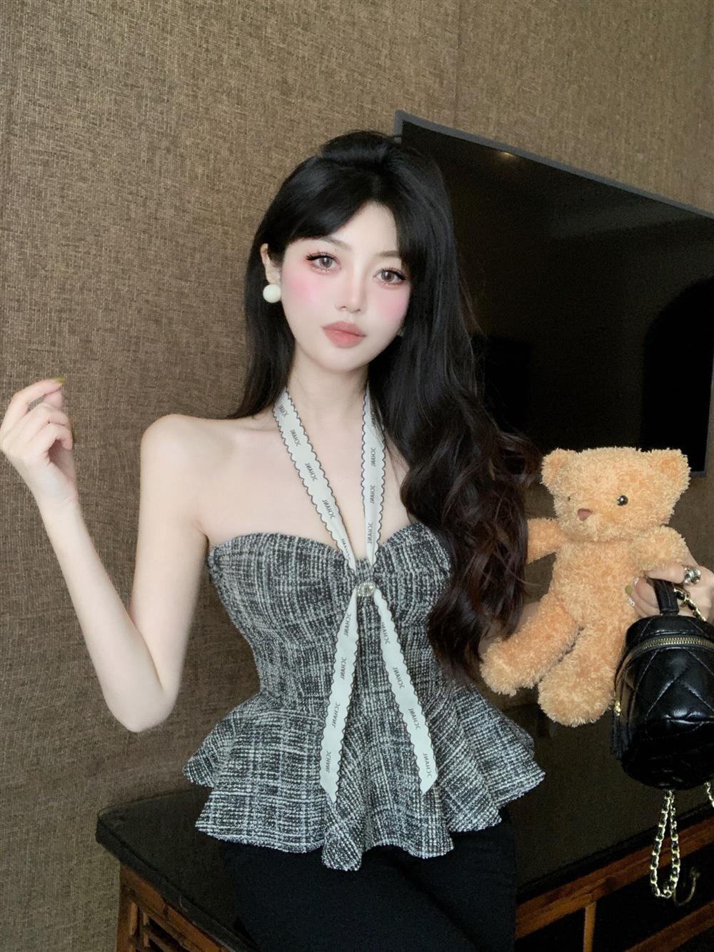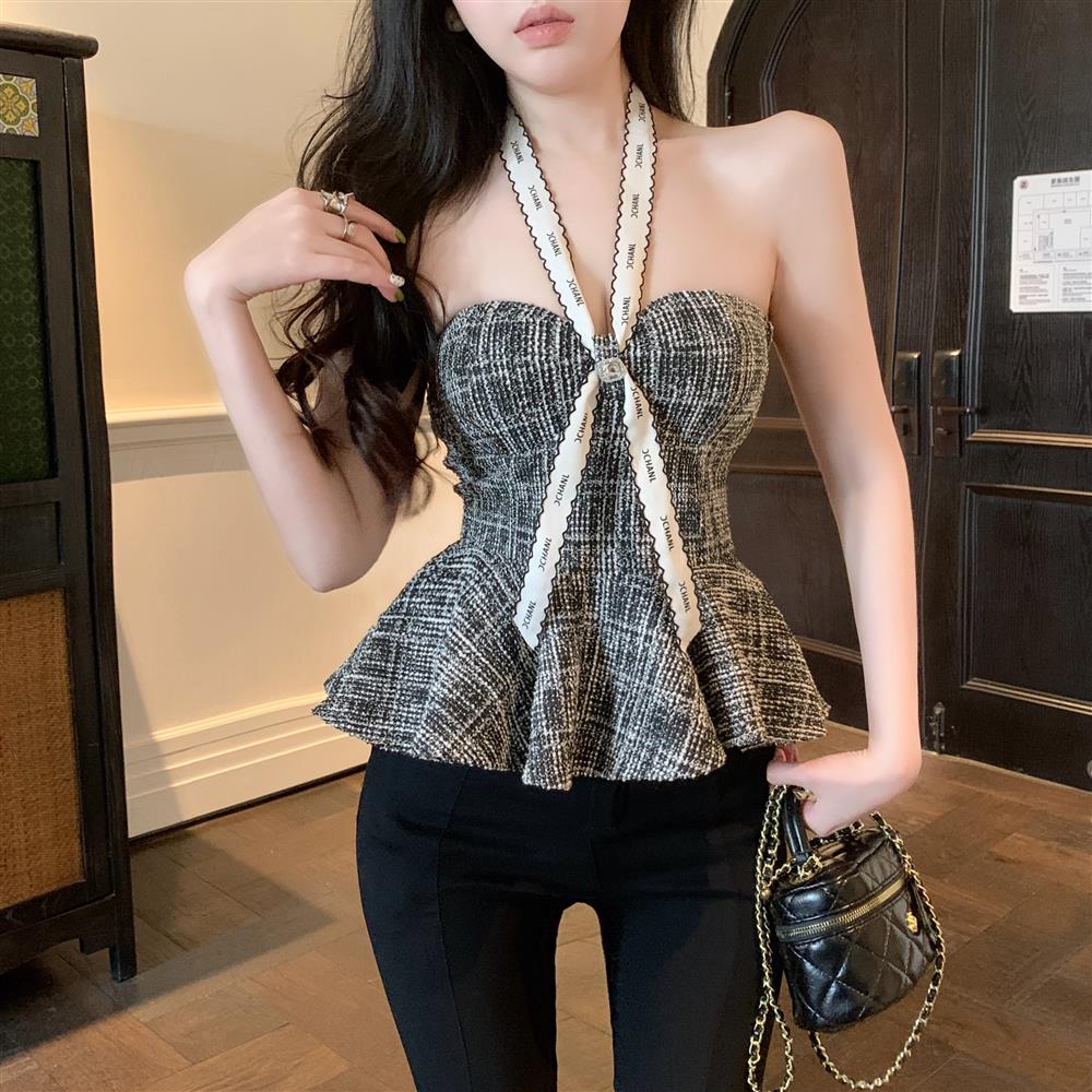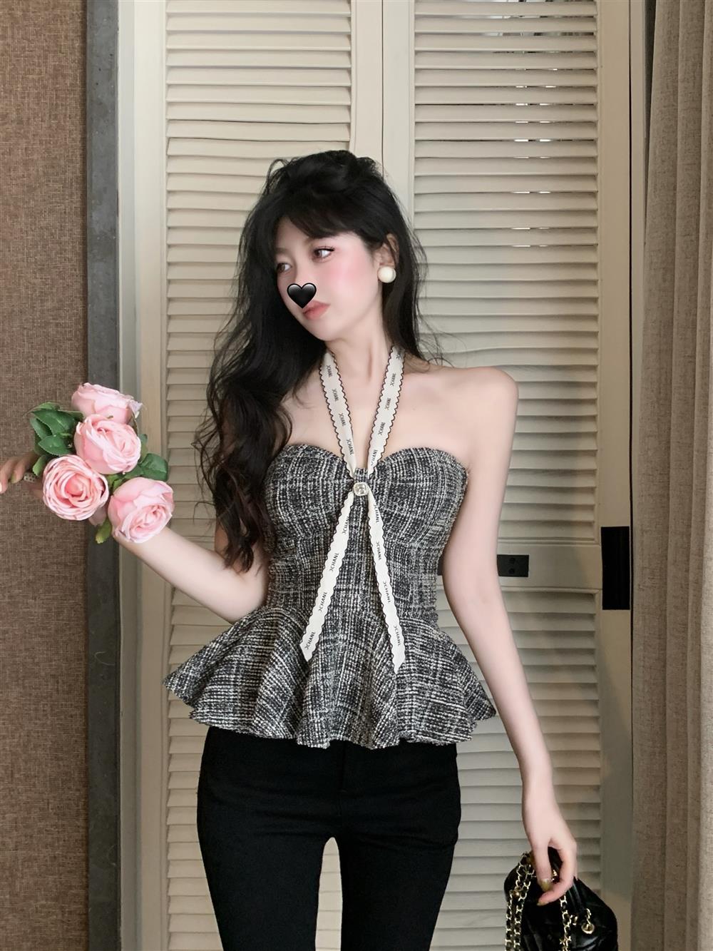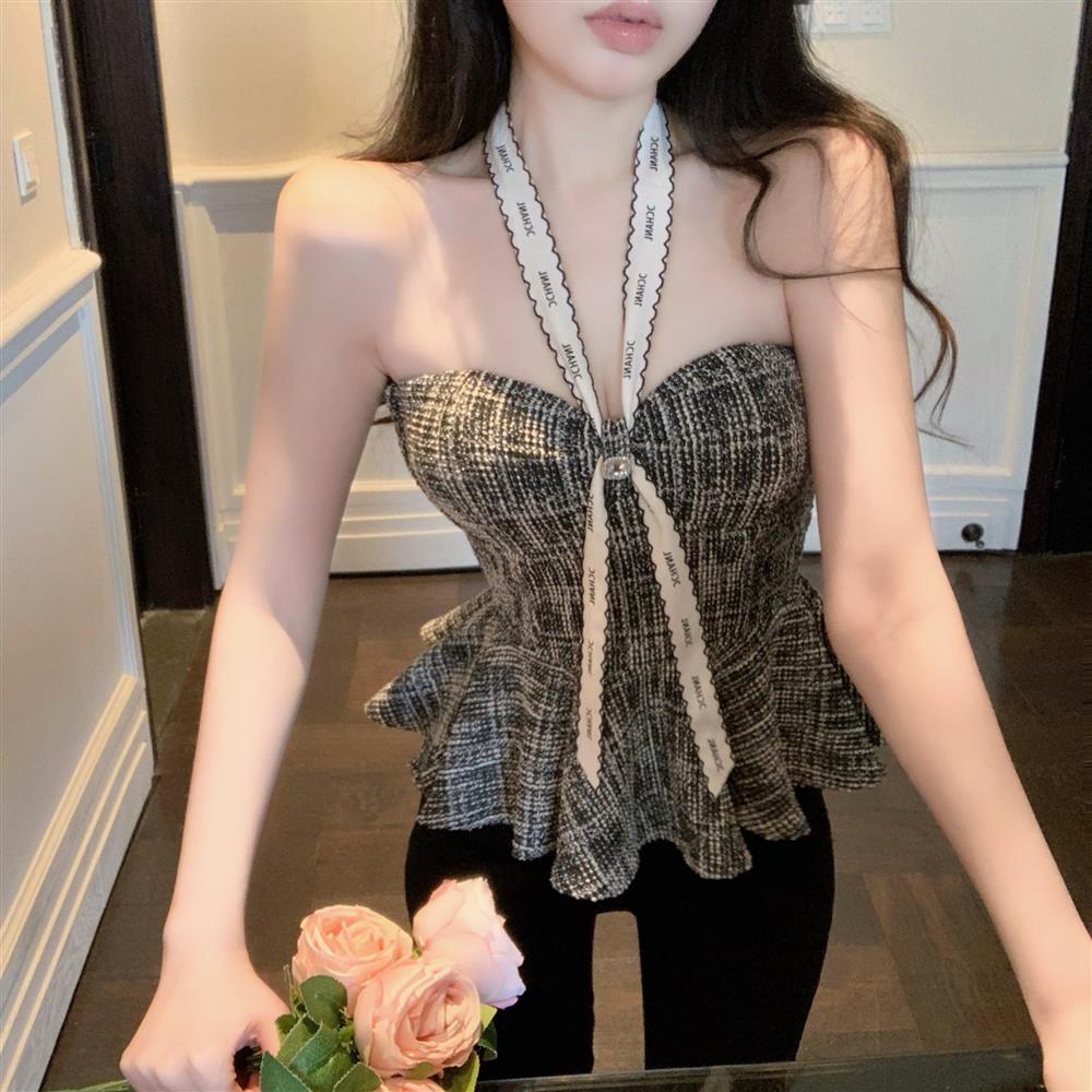 小香風掛脖吊帶背心女外穿夏季泰式純欲甜辣妹性感一字肩抹胸上衣